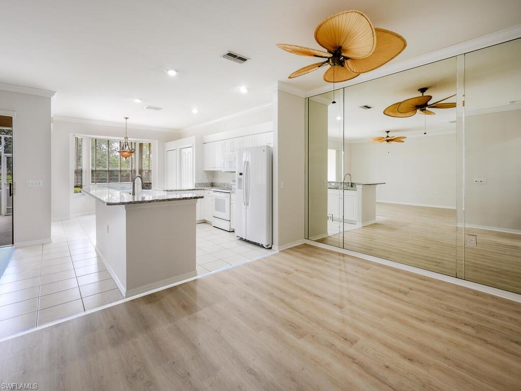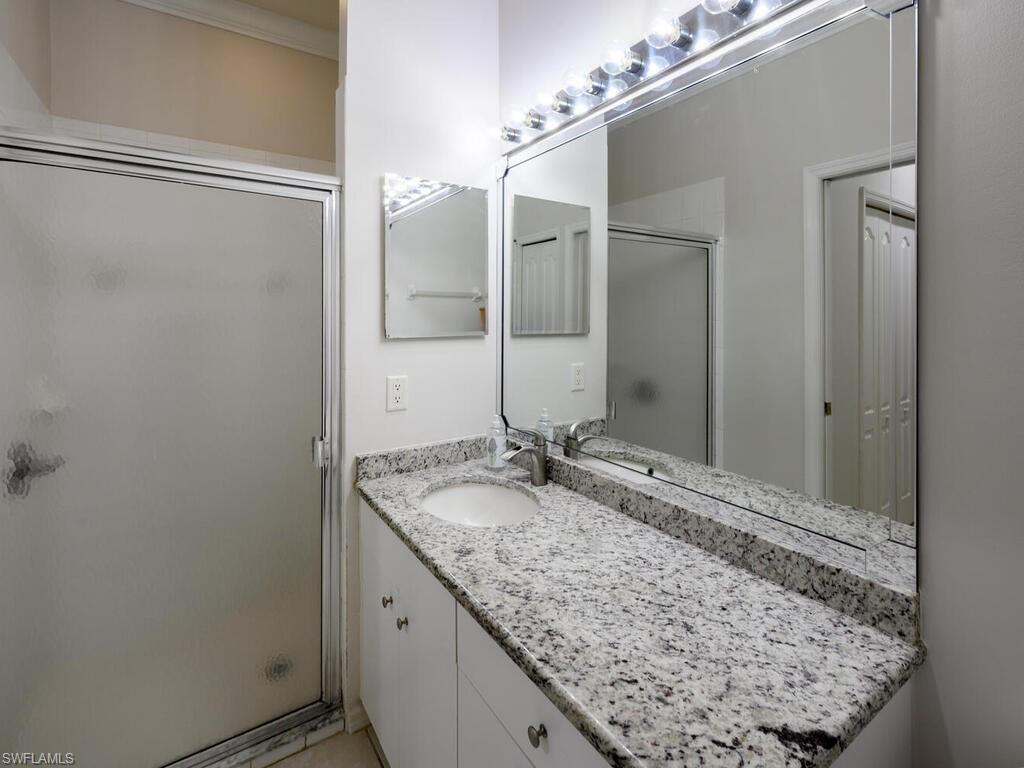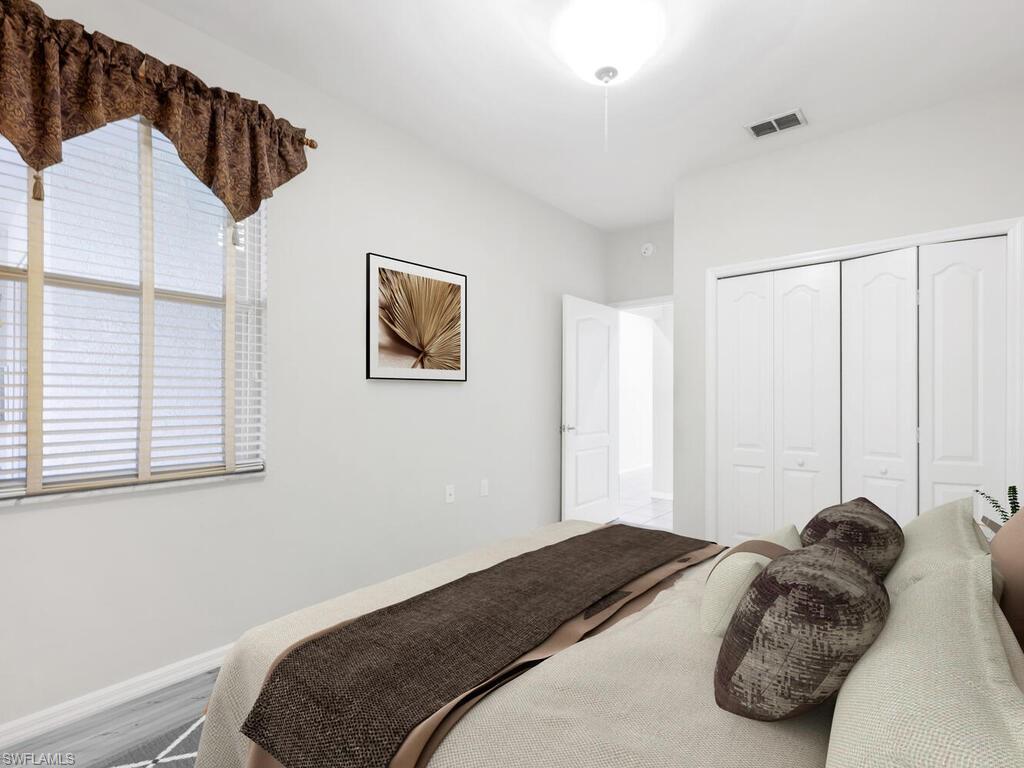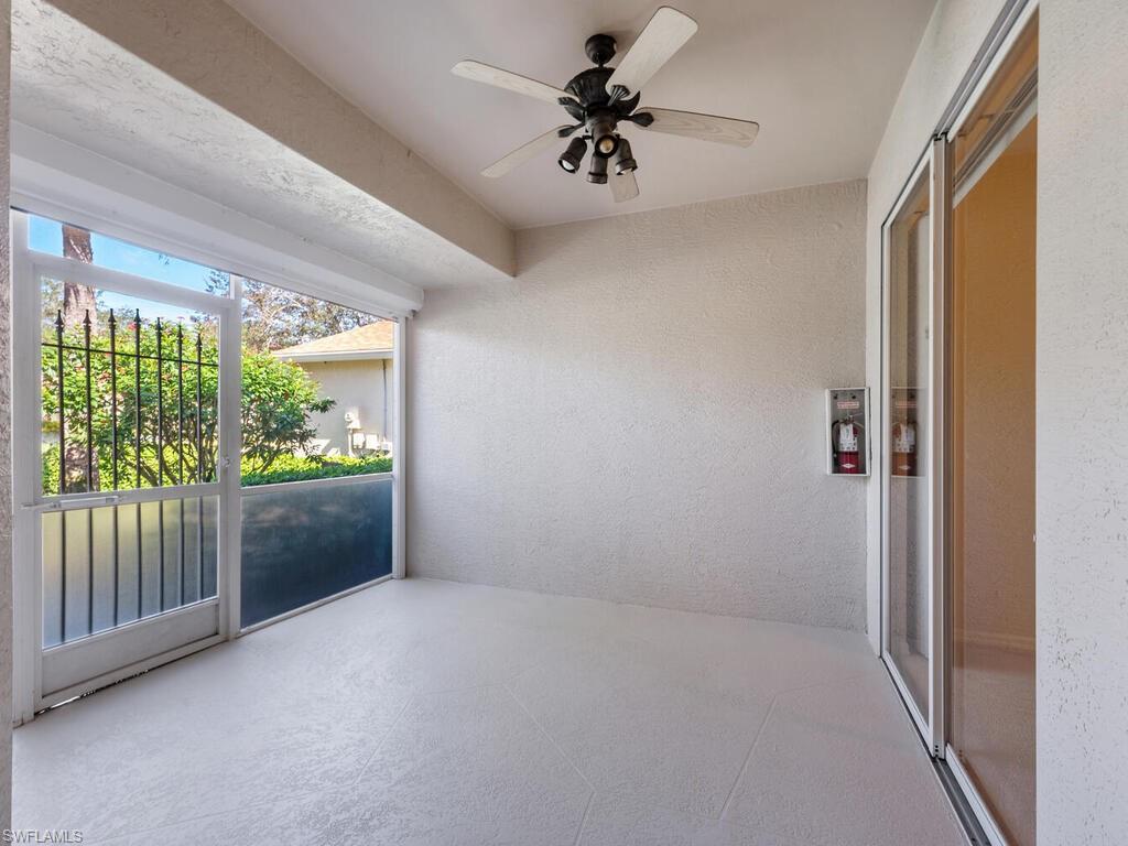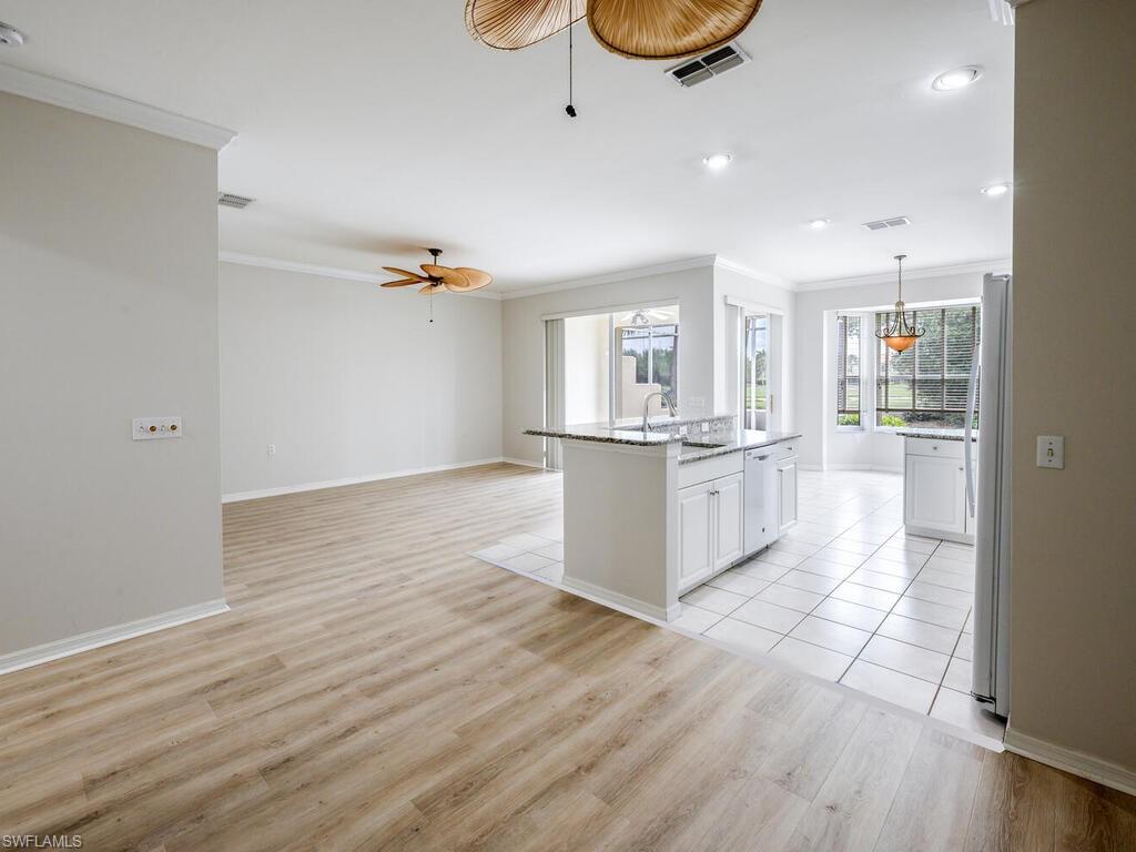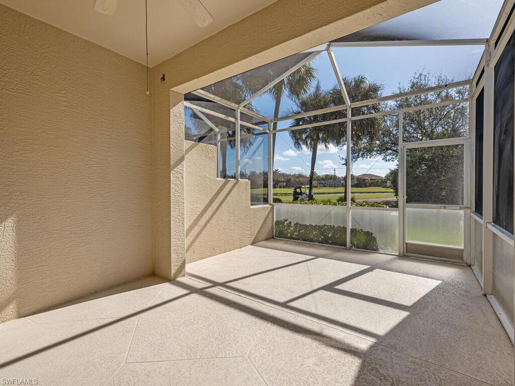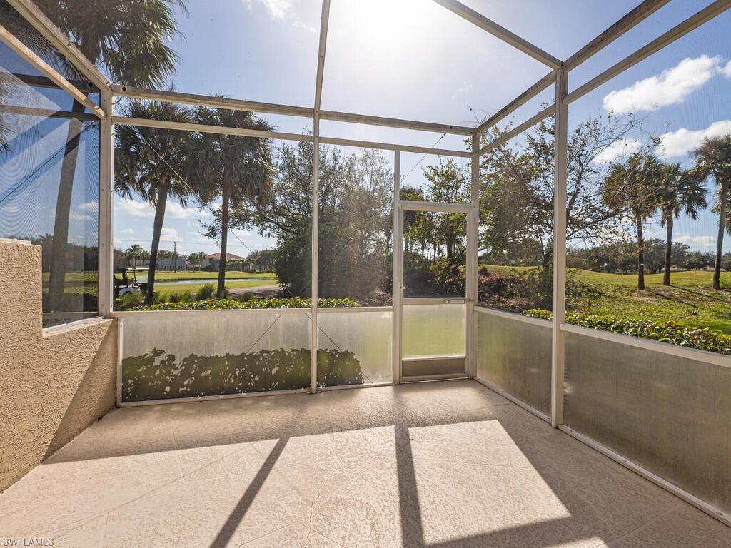 Beautiful Lake and Golf Course views!! This two-bedroom, two-bathroom attached villa with a one car garage offers ample living space. The lush landscaping surrounding the property creates an inviting and serene atmosphere. Upon entering, the spacious layout and abundant natural light create a warm and welcoming ambiance. The interior has just been freshly painted and new flooring has been installed. The open-concept design seamlessly transitions between the living areas, allowing for a comfortable and functional flow. The kitchen boasts abundant countertop space and newer appliances, providing ample room for meal preparation. The bright and airy feel extends throughout the home, tile and vinyl flooring adds a touch of elegance. The primary and secondary bedrooms offer generous square footage, ensuring comfort and privacy. Stepping outside, the property features two spacious outdoor areas with a patio, offering enough space for dining or relaxation. The landscaping includes lush greenery overlooking the 4th tee box of the golf course, creating a pleasant environment for outdoor enjoyment. Residents can also take advantage of the community's amenities, including a public golf course, tennis courts, a community pool, and a fitness room. Additional features include manual and electric/fabric shutters, crown molding, granite counter tops and a large storage closet. The scenic views of the lake and golf course add to the overall appeal of this inviting and well-appointed property. Arrowhead Golf Course is a public course nestled within the Heritage Greens community and offers a variety of optional memberships along with day play options. Enjoy the community amenities and social gatherings or just sit back and enjoy the beautiful Naples sunsets. Close to schools, shopping and dining. You won't be disappointed with all this community has to offer.