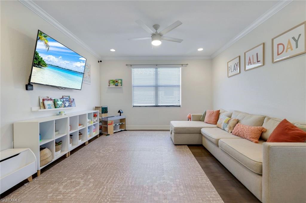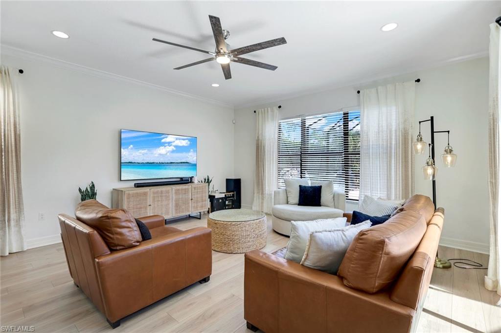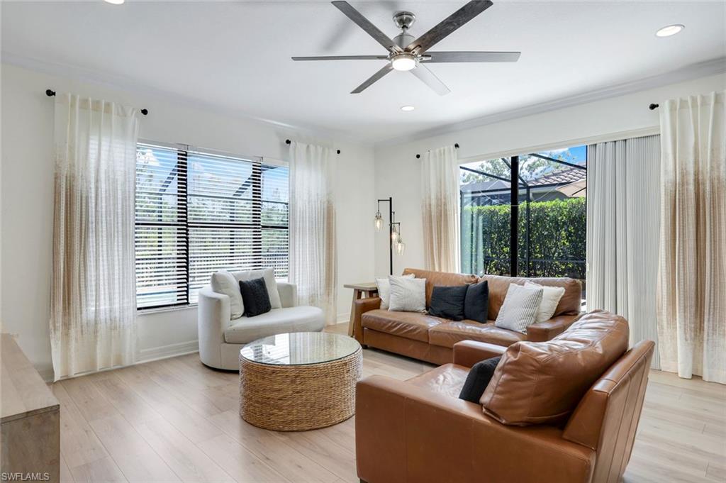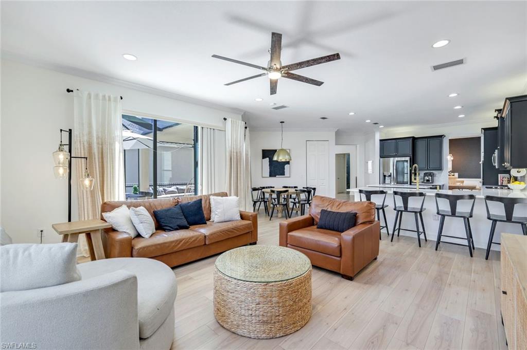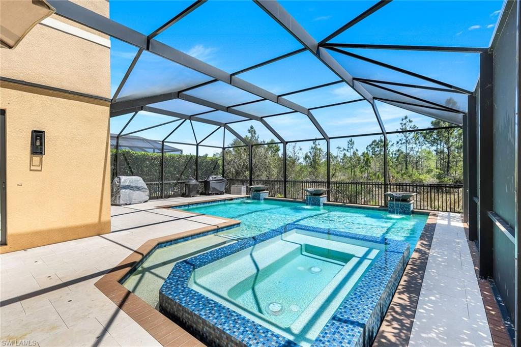 Welcome to this stunningly updated, highly sought-after Shiraz floor plan, offering 6 bedrooms, a loft, and 5 full baths! Step outside to your own private oasis, featuring a sparkling saltwater converted pool and spa, surrounded by elegant Mediterranean seashell pavers—perfect for entertaining or relaxing. Inside, the freshly refinished kitchen is a chef’s dream, with sleek modern hardware and brand new dishwasher and fridge with an ice-ball feature—ideal for crafting cocktails at the custom-built bar in the entertainment space. The expansive master suite offers a private retreat with a seating area, a grand en-suite bathroom and a screened in porch. This home boasts luxury vinyl plank flooring throughout the first floor and rich hardwood on the second floor. Other updates include ceiling fans and light fixtures, custom built-ins in the mudroom, and brand-new epoxy flooring in the garage. For added comfort, the upstairs AC has been upsized to ensure year-round climate control. This home is the perfect blend of style, functionality, and comfort, offering the ideal setting for both entertaining and family living.