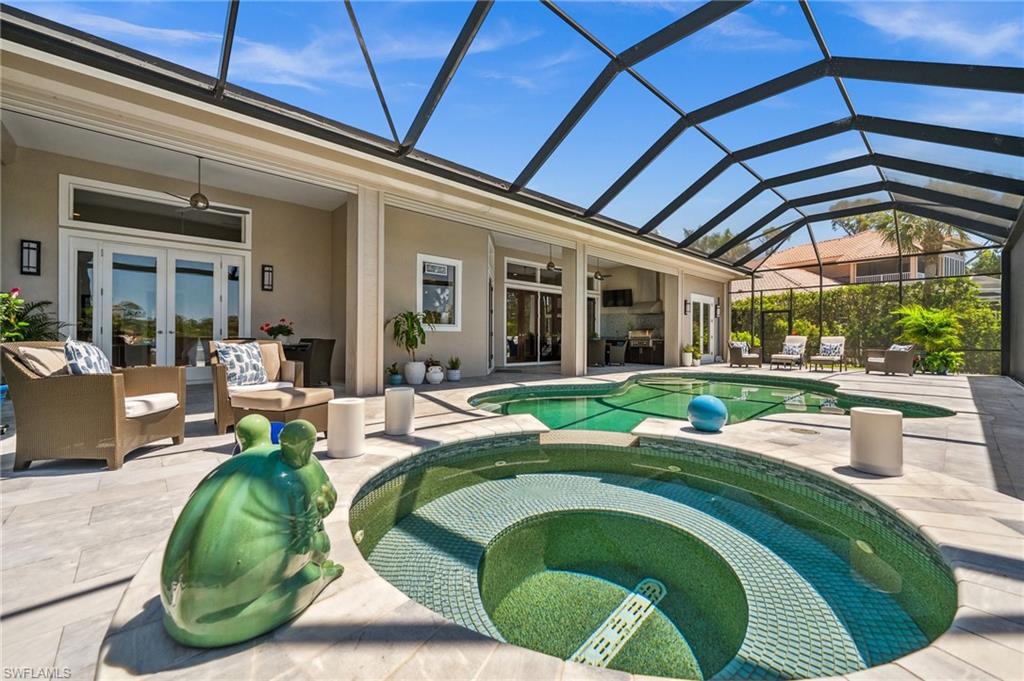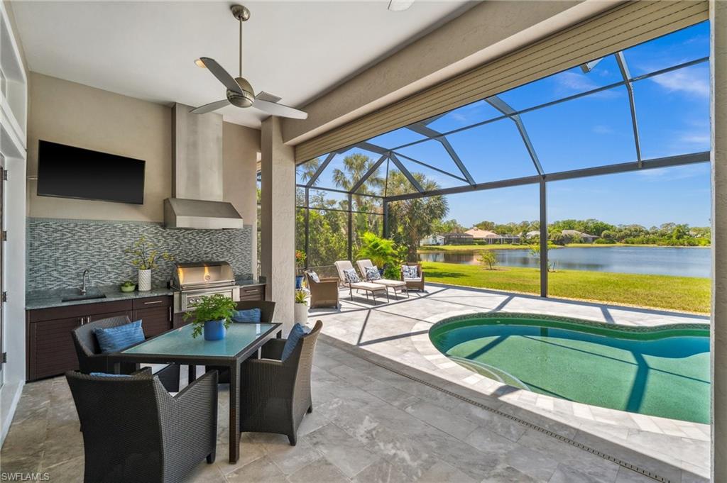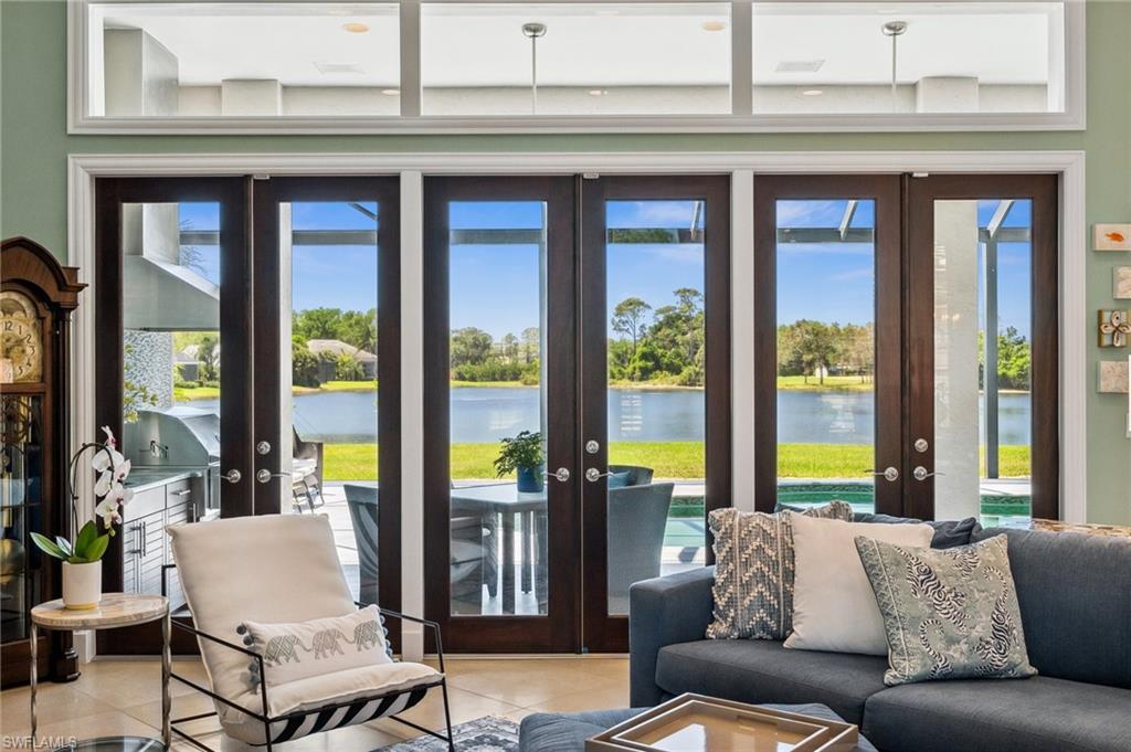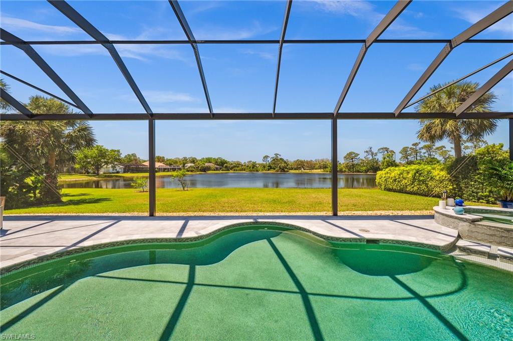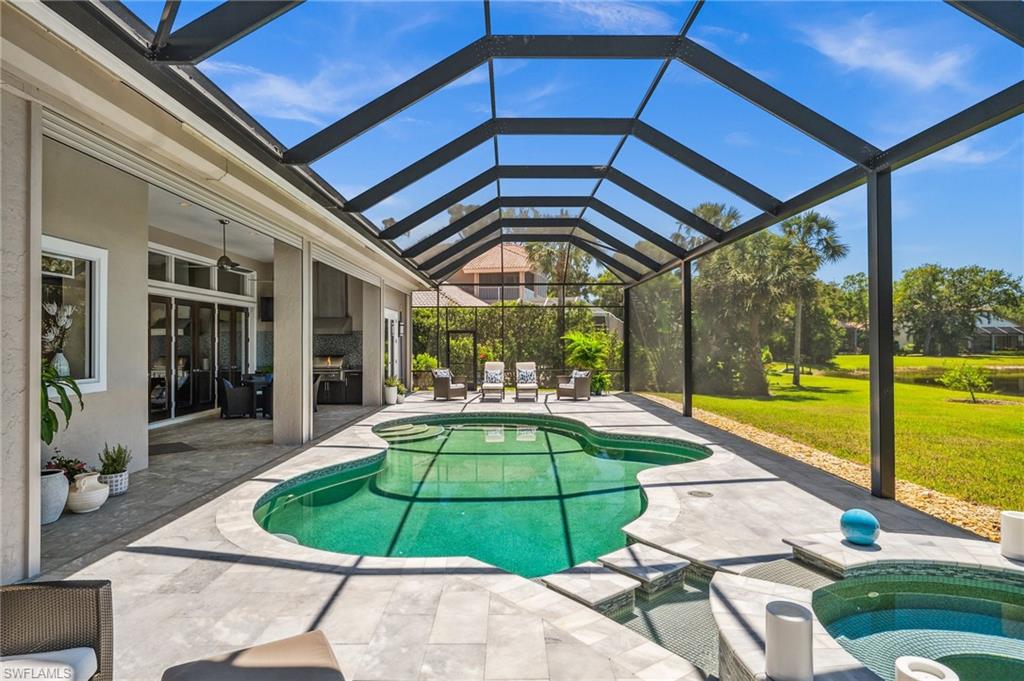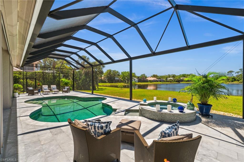 Virtual Tour Available | Welcome to 3911 Lakemont Drive, completely reimagined from the ground up and renovated to the highest standards indoors and out, an unparalleled Lakemont trophy home featuring one of the single most extraordinary waterfront settings throughout all of Pelican Landing. Prepare to be inspired by uninterrupted long lake views, finely curated finishes, and a full suite of dream-home worthy appliances all from this customized modern floor plan with enchanting lanai. Arriving at home, stylishly updated tropical landscaping invites a closer inspection before the welcoming front entry parts to reveal breathtaking lake and distant golf views through completely reconfigured and impeccably refinished open great room with dramatic ceilings. Open and directly connected to the great room, extravagant gourmet kitchen will please even the most discerning home chef. Featured kitchen updates include full custom cabinetry redesign, decorative tile work, jumbo island with curved laminated walnut breakfast bar, and appliances including gas-burning Wolf stove, discretely paneled Sub-Zero fridge, Sub-Zero wine cooler, and Bosch dishwasher. Primary suite, on one wing of the home, includes large glass doors overlooking private lanai with lake views, and a completely updated marble-tiled bathroom with frame-less shower and luxurious finishes, with walk-in closets fitted with quality built-ins. Opposite the primary suite on the other side of the great room is the guest wing with two separate bedrooms, each with its own completely updated bathroom—one a full bathroom with gorgeous tile work and frame-less shower, the other a sophisticated but carefree powder room. Outside, leathered-marble oversized pool deck showcases an outdoor kitchen, multiple covered seating areas, and all refinished saltwater, solar-heated pool and spa with waterfall. Lanai cage with superscreen features a picture frame design that virtually disappears in the view. Additional featured improvements include: IMPACT WINDOWS and garage, generator, 250-gallon buried propane, tank-less hot water heater, ROOF (2014), and high-impact roll-down shutters on lanai. See full improvement list. Pelican Landing residents enjoy world-class amenities, including a 34-acre private island beach club, gulf access sailing, kayaking, and boat ramp, 12 Har-Tru tennis courts, pickleball, bocce, and a trainer-attended fitness center. Convenient walk or ride location provides for a short trip to the community center, grocery store, pharmacy, and numerous casual and fine dining options without even venturing on to any major roads. Additionally, optional memberships are available at The Nest Golf Club, featuring 36 holes of championship golf and a newly renovated clubhouse. Waitlists due to high demand at The Nest may apply. Come experience the superior design, craftsmanship, attention to detail, and all else that makes this one of the finest homes to hit the open market in Pelican Landing. Schedule today!