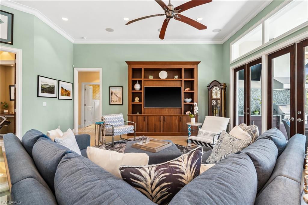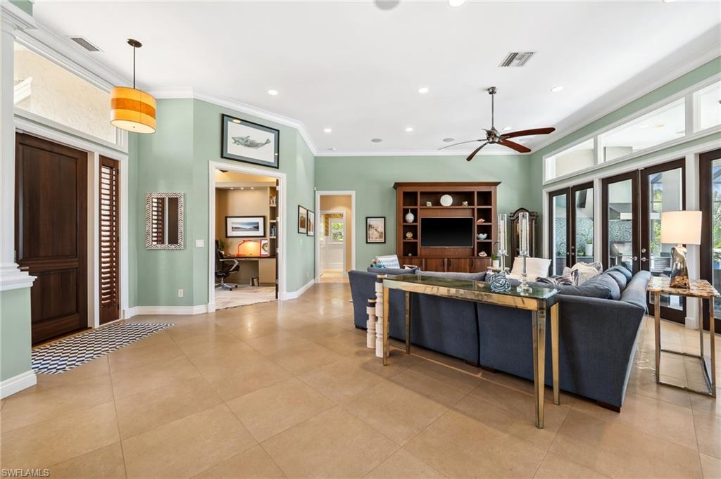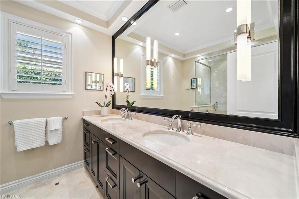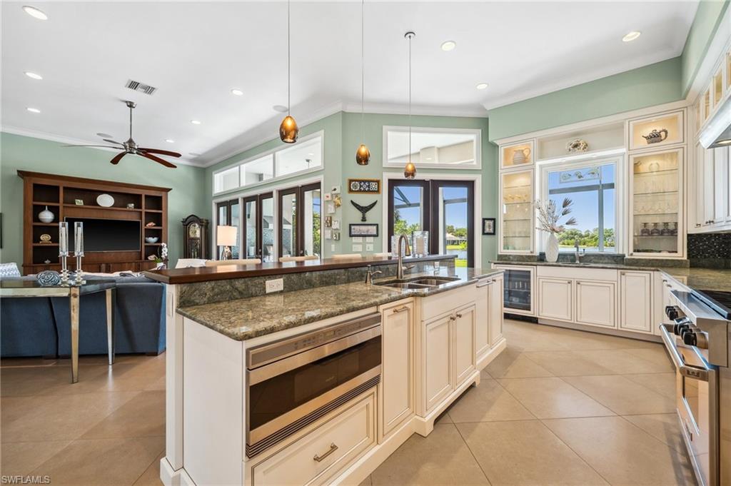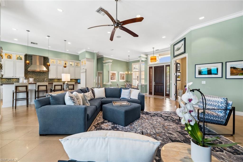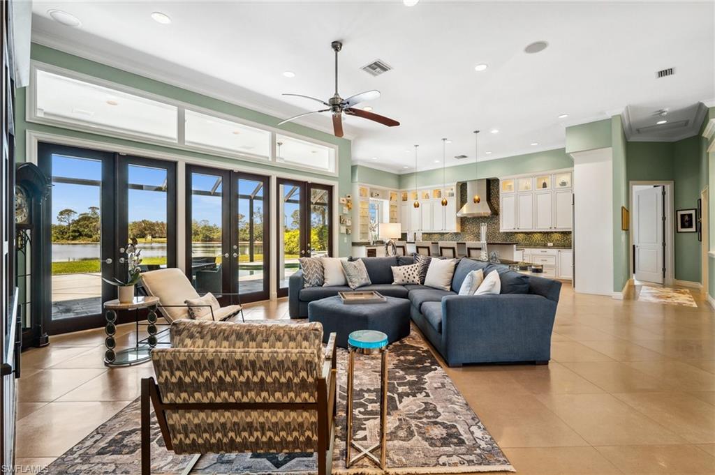 Virtual Tour Available | Welcome to 3911 Lakemont Drive, completely reimagined from the ground up and renovated to the highest standards indoors and out, an unparalleled Lakemont trophy home featuring one of the single most extraordinary waterfront settings throughout all of Pelican Landing. Prepare to be inspired by uninterrupted long lake views, finely curated finishes, and a full suite of dream-home worthy appliances all from this customized modern floor plan with enchanting lanai. Arriving at home, stylishly updated tropical landscaping invites a closer inspection before the welcoming front entry parts to reveal breathtaking lake and distant golf views through completely reconfigured and impeccably refinished open great room with dramatic ceilings. Open and directly connected to the great room, extravagant gourmet kitchen will please even the most discerning home chef. Featured kitchen updates include full custom cabinetry redesign, decorative tile work, jumbo island with curved laminated walnut breakfast bar, and appliances including gas-burning Wolf stove, discretely paneled Sub-Zero fridge, Sub-Zero wine cooler, and Bosch dishwasher. Primary suite, on one wing of the home, includes large glass doors overlooking private lanai with lake views, and a completely updated marble-tiled bathroom with frame-less shower and luxurious finishes, with walk-in closets fitted with quality built-ins. Opposite the primary suite on the other side of the great room is the guest wing with two separate bedrooms, each with its own completely updated bathroom—one a full bathroom with gorgeous tile work and frame-less shower, the other a sophisticated but carefree powder room. Outside, leathered-marble oversized pool deck showcases an outdoor kitchen, multiple covered seating areas, and all refinished saltwater, solar-heated pool and spa with waterfall. Lanai cage with superscreen features a picture frame design that virtually disappears in the view. Additional featured improvements include: IMPACT WINDOWS and garage, generator, 250-gallon buried propane, tank-less hot water heater, ROOF (2014), and high-impact roll-down shutters on lanai. See full improvement list. Pelican Landing residents enjoy world-class amenities, including a 34-acre private island beach club, gulf access sailing, kayaking, and boat ramp, 12 Har-Tru tennis courts, pickleball, bocce, and a trainer-attended fitness center. Convenient walk or ride location provides for a short trip to the community center, grocery store, pharmacy, and numerous casual and fine dining options without even venturing on to any major roads. Additionally, optional memberships are available at The Nest Golf Club, featuring 36 holes of championship golf and a newly renovated clubhouse. Waitlists due to high demand at The Nest may apply. Come experience the superior design, craftsmanship, attention to detail, and all else that makes this one of the finest homes to hit the open market in Pelican Landing. Schedule today!