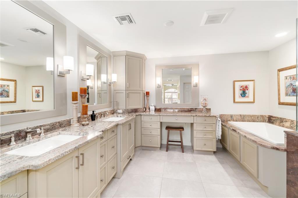 Beautifully updated condo with spectacular golf course & lake views in North Naples’ coveted “Audubon Golf & Country Club!” All the prime amenities offered in Audubon are only steps away, including an 18-hole championship golf course, tennis, pickleball, Bayside boardwalk, brand-new spectacular poolside club & café. Relax and unwind on your expansive screened-in lanai with breathtaking panoramic golf course views. This stunning residence features an open floor plan, three spacious bedrooms, a versatile den, and 3.5 bathrooms. A private two-car garage, complete with golf cart storage, adds to the convenience. Inside, you'll find light, wide plank, wood flooring, tray ceilings, and a chef's kitchen with crisp white cabinetry, exquisite granite countertops, and a breakfast bar for casual dining. Adjacent to the kitchen, a charming eat-in area offers a beverage bar with a built-in wine cooler, perfect for entertaining. The expansive primary suite boasts stunning golf course views, private access to the lanai, and a spa-like en-suite bathroom with dual vanities, a large frameless glass shower, and a separate soaking tub. Audubon Golf & Country Club is ideally located just five minutes from the vibrant Mercato shopping center and the pristine beaches of Southwest Florida, all within a gated, and guarded community.