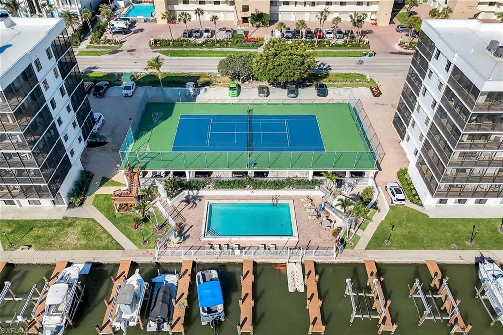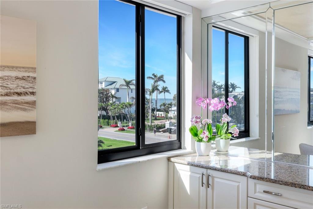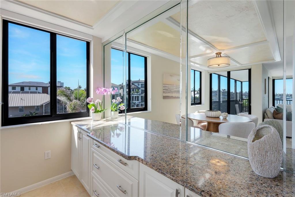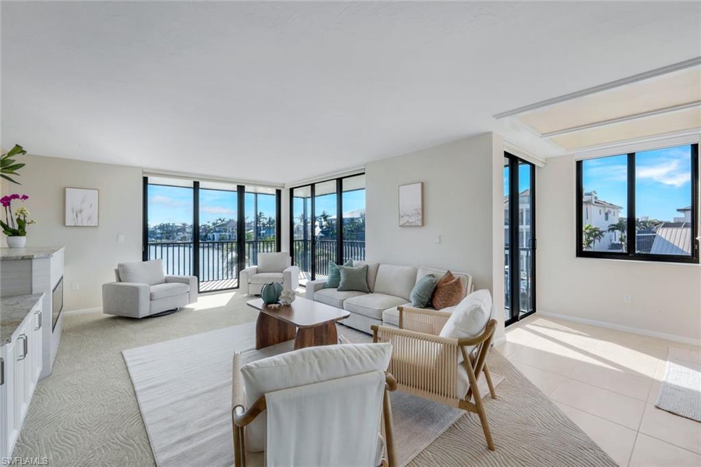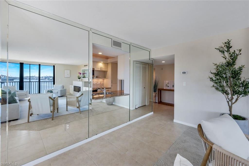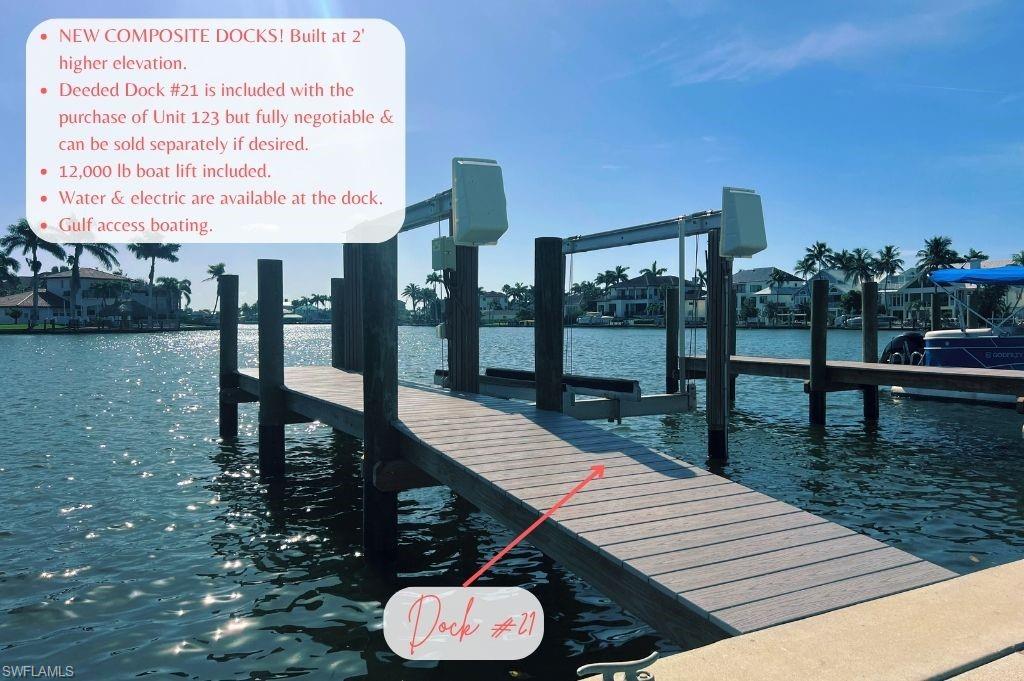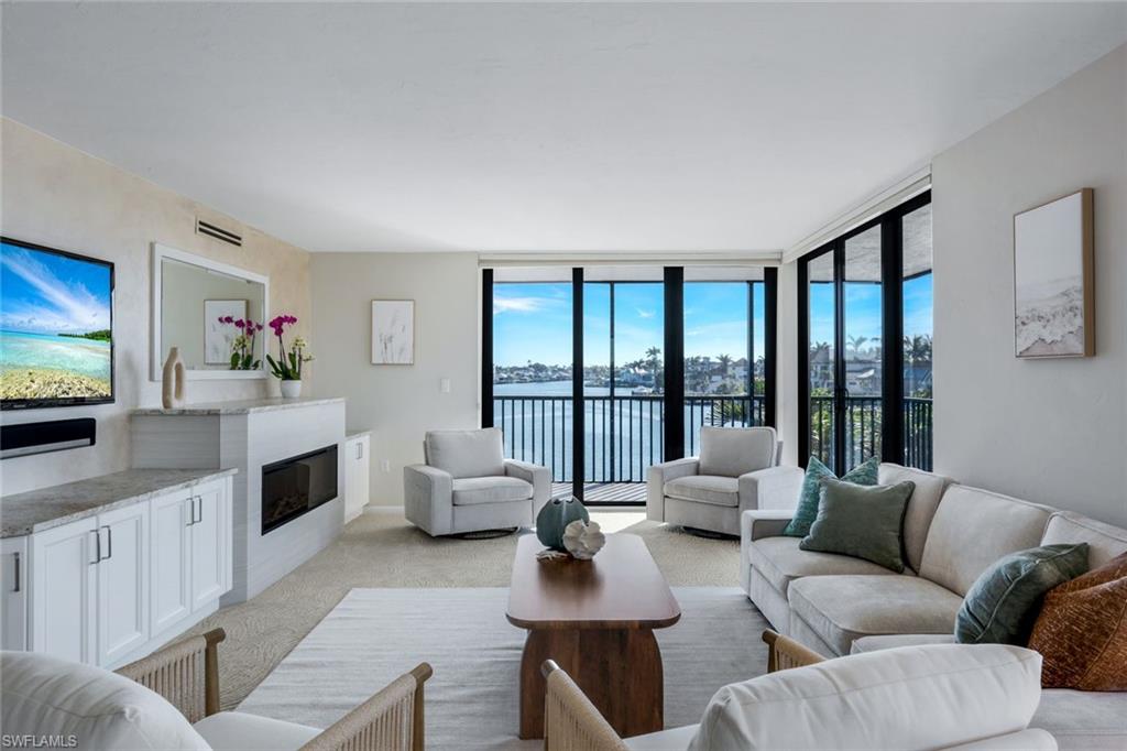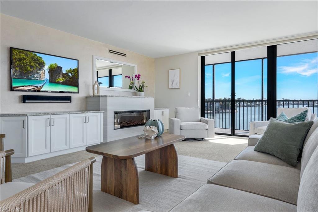 LUXURY DEAL ALERT! Waterfront Condo + Bayside Boat Slip w/Lift + 2 Covered Parking Spaces + Private Beach Access BUNDLED with purchase......Vanderbilt Bay #123 is a rare and highly sought-after end-unit offering the best of both worlds: breathtaking GULF and BAY views from every angle. Spanning the full front-to-back footprint, this expansive two-bedroom, two-bathroom condo is a masterpiece of light and luxury. Indulge in a lifestyle without compromise — this residence includes a brand new ASSIGNED BOAT SLIP with 12,000 lb lift, 2 - COVERED PARKING SPACES, PRIVATE BEACH ACCESS, and two additional storage units. Two spacious, L-shaped lanais flood the home with natural light and invite you to savor coastal serenity throughout the day — from sunrise over the Bay, where dolphins and boats glide by, to golden sunsets across the Gulf. Offered furnished with brand-new pieces, 2 - Murphy beds, custom built-ins, a sleek LED fireplace, TVs, 2025 A/C compressor, 2023 water heater, 2 storage araes and beautifully renovated bathrooms. For your peace of mind, the home features full hurricane protection with IMPACT RATED sliders and windows throughout. Vanderbilt Bay amenities include tennis, pickleball, saltwater pool, grill area, private beach access, marina slips, secure lobby access and an on-site manager. Location is everything — stroll the pristine shoreline to world-class waterfront dining at LaPlaya, The Ritz-Carlton, or The Turtle Club. Nearby Waterside Shops offer high-end shopping, while Mercato is a full service shopping, dining, and entertainment complex just minutes away. Vanderbilt Bay is structurally up to date and had a brand-new roof installed in 2024 along with new elevator pistons in 2025. This condo unit had no storm damage from Hurricanes. The guest bedroom provides flexibility with custom home office cabinetry that includes a desk, filing cabinet, and 2- twin Murphy beds. Don’t settle for just the beach or the bay — own both. Your Naples waterfront sanctuary awaits. WATCH VIRTUAL TOUR VIDEO!