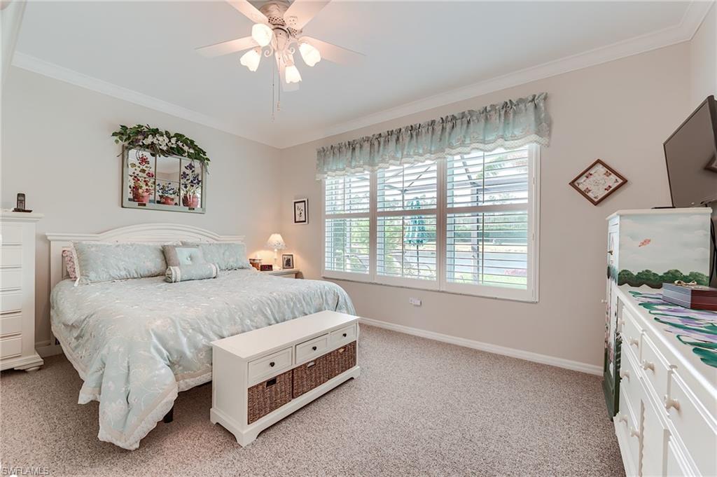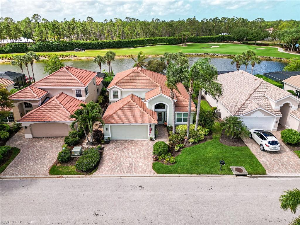 Spectacular Lake and Golf course views from this stunning Laurel Model home located in Spring Run at the Brooks. This great room design home has been beautifully upgraded with quartz counters in the kitchen, electric shutter and sun awning on lanai, whole home generator with 2 large propane tanks. The popular Laurel Model has primary suite downstairs and another guest suite with full bathroom downstairs as well. Upstairs there are two more guest bedrooms and full guest bath. This is one of the nicest homes you will find in Spring Run with a breathtaking view with enough distance from the golf course to still provide privacy. NO WAIT LIST! There is nothing for you to do but move in and enjoy your home and the spring run lifestyle. Spring Run is a bundled golf community; two memberships are included in the purchase of the property. You only pay cart fees to golf! Newly expanded & remodeled club house offers fine dining, indoor & outdoor dining & bars, resort style pool & spa, lighted tennis & bocce courts, pro shop, fitness room & library. Memberships are available to the private beach club on Bonita Beach, state-of-the-art fitness center & spa, & the Rookery restaurant. Spring Run is an active, friendly & financially stable community offering a wide variety of amenities and social activities. Just 20 minutes to the SWFL International Airport & Beaches!! A short walk or bike ride to the Coconut Pointe Mall for shopping, entertainment & restaurants. See this one today!!!