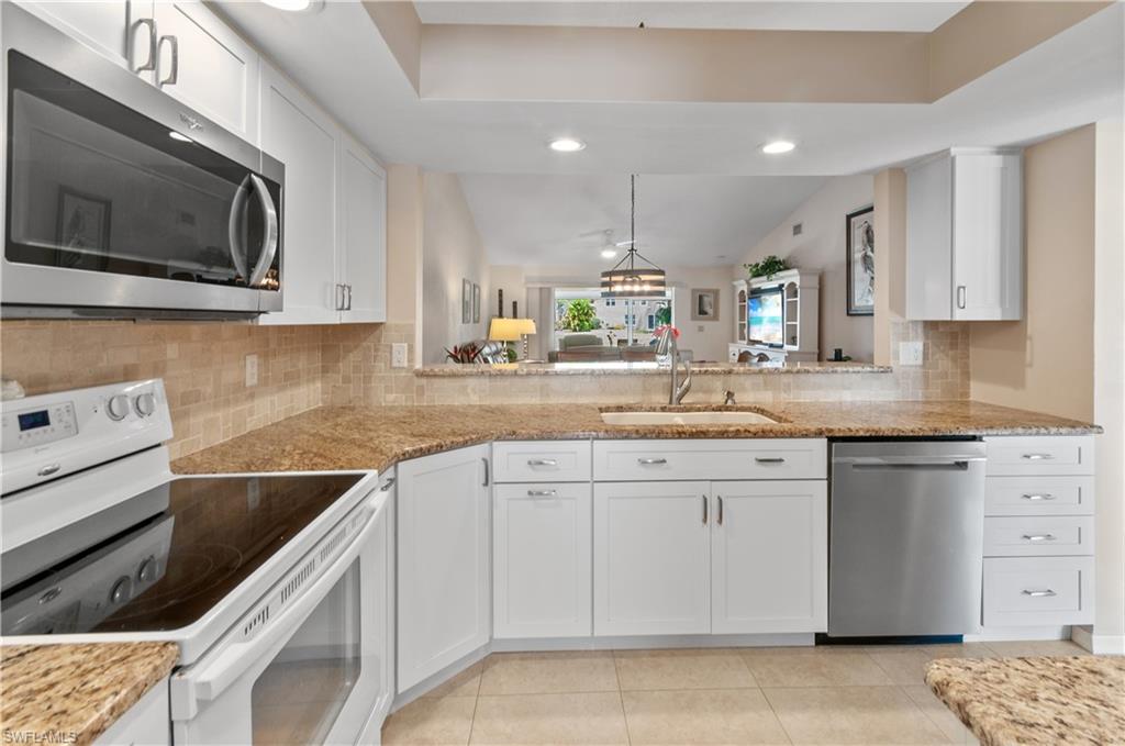 Rarely Available Aruba Model Villa, with Stunning Lake Views – Turnkey & Move-In Ready! Discover the charm of this highly sought-after 2-bedroom, 2-bath villa, featuring an attached garage and picturesque views of Bass Lake. This rarely available Aruba floorplan offers the convenience of single level living with vaulted ceilings and modern upgrades, creating a serene and stylish retreat. Step inside to find tasteful, recently updated furnishings and a thoughtfully designed layout. The kitchen boasts granite countertops and newer stainless-steel appliances, while laminate and tile flooring flow throughout the home. Plantation shutters add an elegant touch to the windows, enhancing both privacy and charm. Enjoy seamless indoor-outdoor living with an enclosed lanai, featuring sliding glass windows and screens, perfect for taking in the tranquil lake views. A paved double driveway leads to the attached garage, which includes a garage screen and automatic door opener for added convenience. Located in the vibrant community of Breckenridge, this home offers an active lifestyle with an impressive range of amenities, including: 18-hole par 3 golf course Five swimming pools Eight tennis courts Three pickleball courts Six shuffleboard courts Three bocce courts The newly renovated clubhouse features an exercise room, business office, library, catering kitchen, and a spacious community room for social events. Additionally, a storage lot for trailers, RVs, and boats is available on a first-come basis for an additional fee. Perfectly situated minutes from shopping, dining, Southwest Florida International Airport, and the breathtaking Gulf Coast beaches, this home offers the best of resort-style living in a welcoming community. Don’t miss this rare opportunity—schedule your showing today!