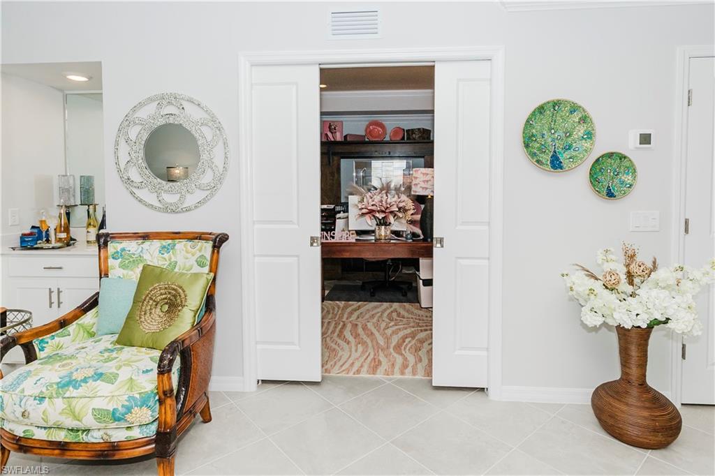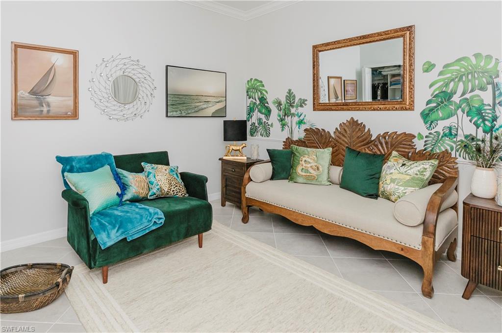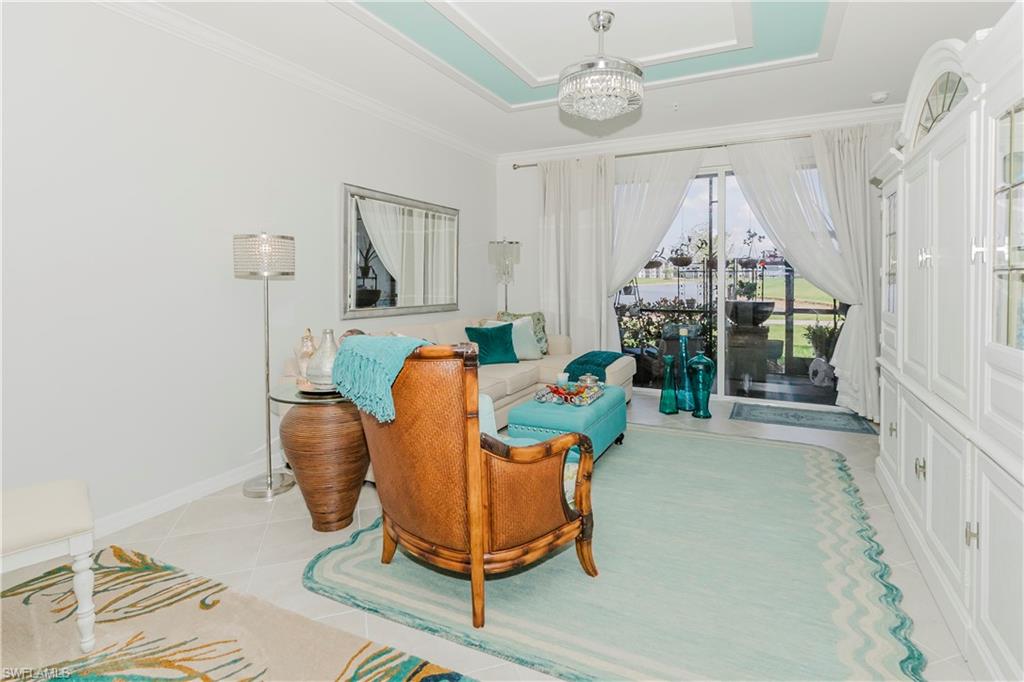 Experience luxury, comfort, and resort-style elegance with this beautifully furnished Bromelia II Veranda Floor Plan, complete with a golf membership. Ideally located in The Verandas at The National Golf & Country Club in Ave Maria, this stunning residence offers two bedrooms, two bathrooms, an office/den, a spacious patio, a lanai, and a detached one-car garage—perfectly designed for a discerning buyer seeking both style and convenience. Step inside to discover an impeccably designed interior featuring an open-concept kitchen and great room with a large island, ideal for entertaining or everyday living. The eat-in kitchen includes upgraded pull-out cabinet shelving, while the spacious living and dining area boasts a built-in bar, perfect for hosting guests. Thoughtful upgrades set this home apart, including custom window treatments, elegant ceiling fans, stylish light fixtures, designer-chosen paint, crown molding, a coffered living room ceiling, decorative paneling, upgraded closets, and dimmable light switches throughout. Two oversized screened lanais—one in the front and one in the back—offer breathtaking sunset views over the 18-hole championship golf course and serene water features, creating the perfect setting for peaceful mornings and relaxing evenings. The owner’s suite is a private retreat, featuring two upgraded walk-in closets and a spa-like bath, while the second bedroom also includes an upgraded walk-in closet. Living at The National Golf & Country Club means access to world-class amenities, including an 18-hole championship golf course, a zero-entry resort pool with lap lanes, three satellite pools, a poolside bar and grill, a state-of-the-art fitness center with a 24/7 sauna, and a day spa offering massages, facials, and nail salon services. Sports enthusiasts will appreciate the Har-Tru tennis courts, pickleball, and bocce ball courts, while the nearly completed clubhouse will provide an elegant setting for fine dining and social gatherings. Beyond the gates, Ave Maria offers parks, a water park, local dining, shopping, and a lively town center filled with entertainment and events. The owner is motivated to sell, offering this stunning home at a reduced price. This is more than just a home—it’s your gateway to luxury, relaxation, and an exceptional Florida lifestyle. Schedule your private showing today.