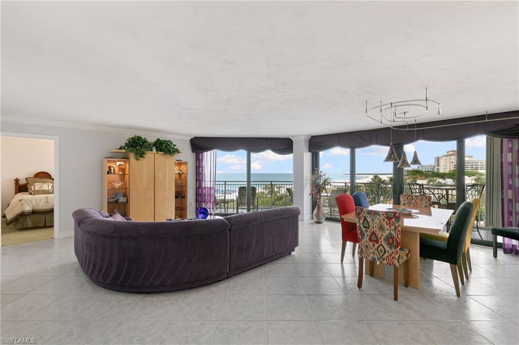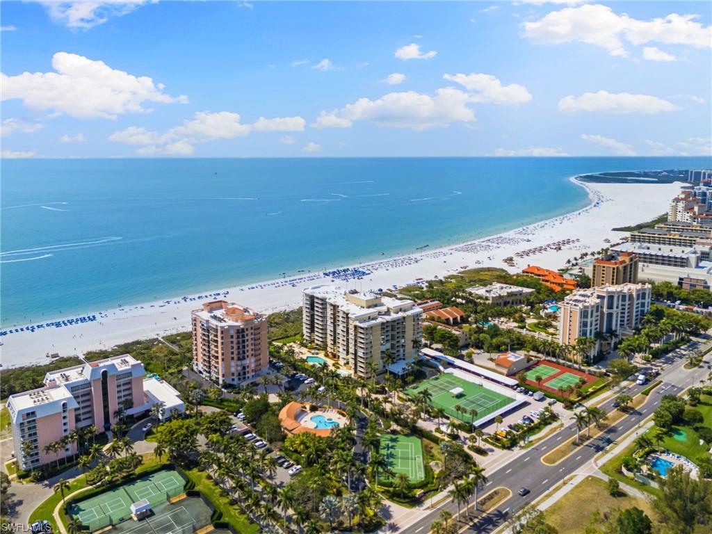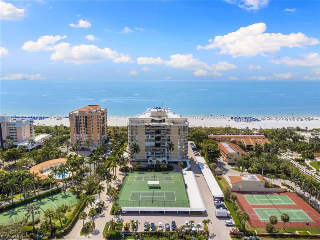 Step into paradise with this beautifully updated beachfront condo boasting unobstructed Gulf views from a stunning wrap-around balcony. Located in one of Marco Island’s most desirable condos, this residence offers sweeping views of the entire Crescent Beach. Inside, the spacious layout features volume ceilings, tile floors, and stylish accordion shutters, creating a light and airy feel throughout. The kitchen is equipped with updated appliances and ample space for entertaining. Two guest rooms provide comfort and privacy for family and friends, while the convenience of an in-unit washer and dryer ensures easy living. Accordion shutters on the balcony offer peace of mind while you're away. For direct beach access, a newly constructed boardwalk leads you to the pristine sands of Crescent Beach. After a day in the sun, cool off in the community pool and spa, or challenge friends to a match on the tennis courts. Whether you’re soaking in the city lights at night or enjoying the Gulf breeze by day, this condo offers the ultimate Marco Island lifestyle. Call now to schedule your next showing!