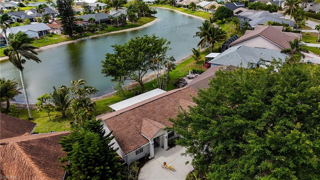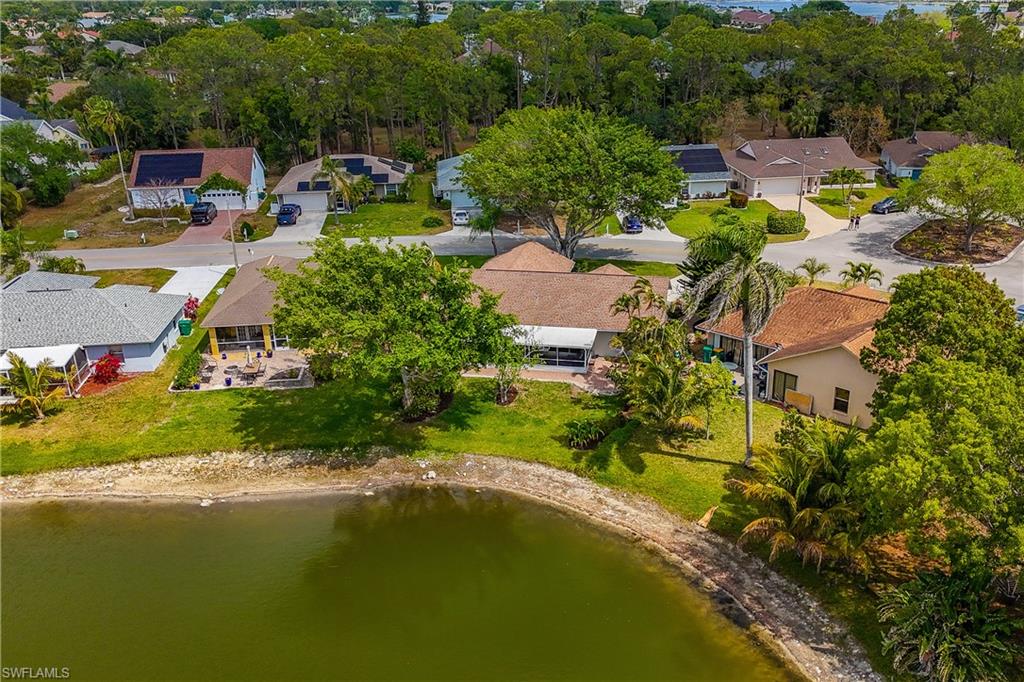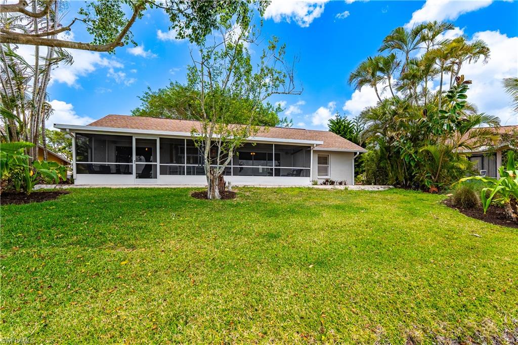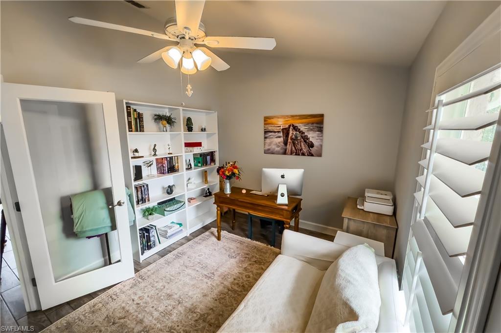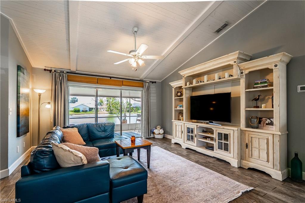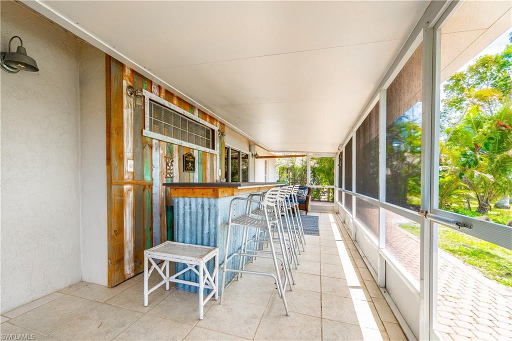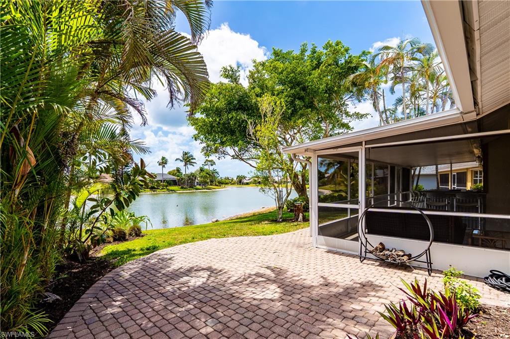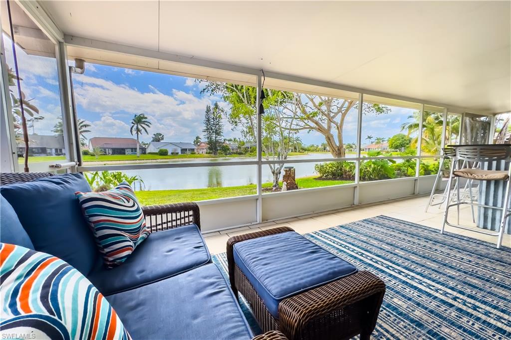 Prepare to fall in love with this delightful two bedroom plus den home that features an inviting open floor plan, vaulted ceilings, and a serene lake view from almost every room, creating a bright, airy atmosphere you’ll adore. When it comes to entertaining, this home really shines. The expansive kitchen is open to the living room and offers white cabinets, butcher block countertops, wood beams, a massive island, and a large dining area, making it the perfect place to entertain friends and family. Step outside to your screened lanai that is complete with a custom, built-in bar with plenty of seating that is ideal for those summer get-togethers. Or, choose to move further outside to the paver patio to enjoy those beautiful Florida sunsets over your lake. You’ll find charming details throughout the home, from the shiplap ceiling and wall details to cute hand painted cabinets, shelves, and closet doors, making it truly one-of-a-kind! And don’t forget…all tile flooring throughout (no carpet)! The primary bedroom has privacy from the rest of the home and has a large sliding door with access to the screened lanai while the primary bathroom offers a huge walk-in glass tiled shower, dual sinks, and a walk-in closet. On the opposite side of the home, you will find the guest bedroom, guest bathroom, and the office/den with glass double doors that is perfect for work or relaxation. Queens Park offers low HOA fees (only $337/year) and is located minutes from downtown Naples, the Bayshore area, multiple beaches, and tons of shopping/dining. Don’t miss your chance to make this peaceful cottage all your own…schedule a tour and start dreaming of all the wonderful memories waiting for you!