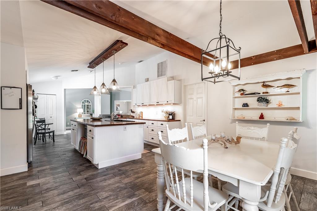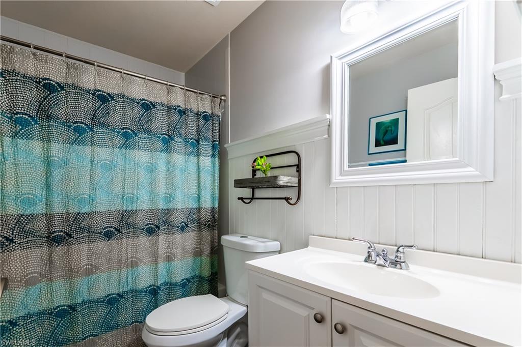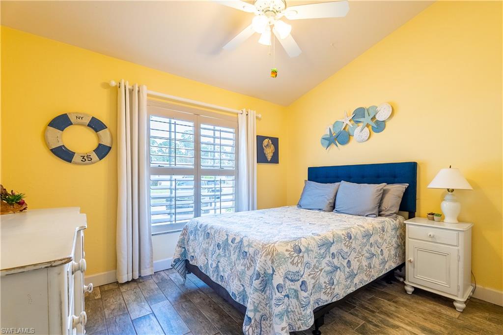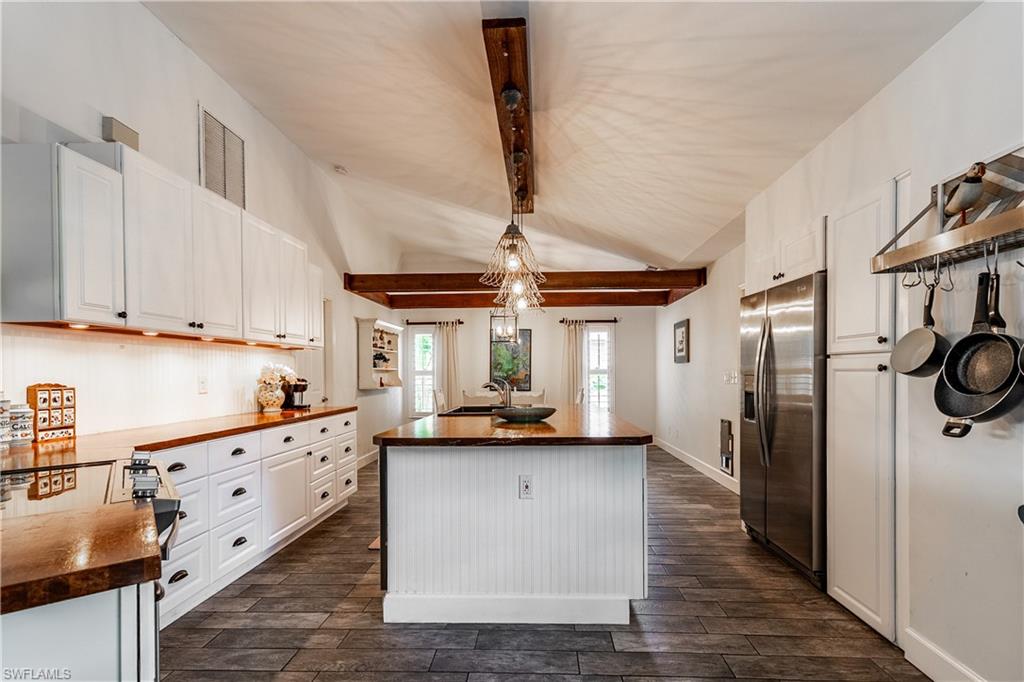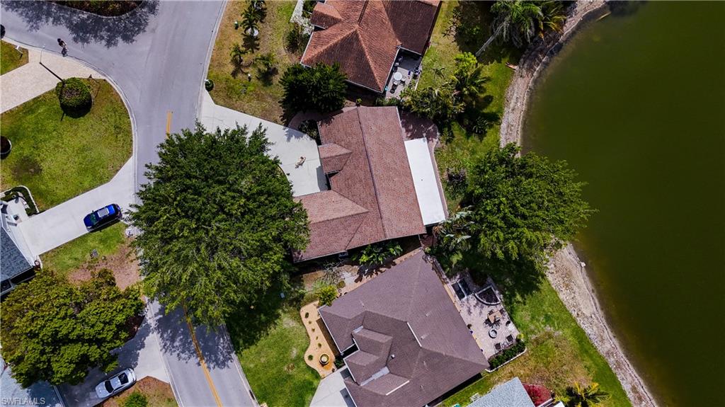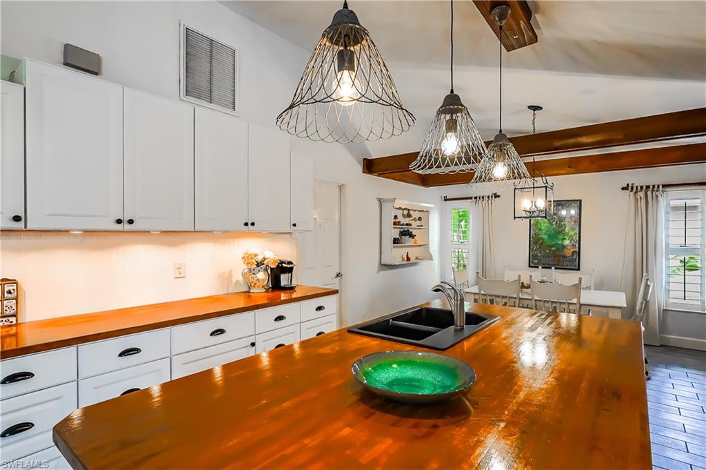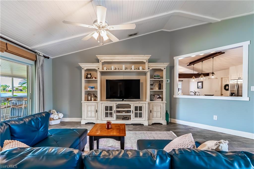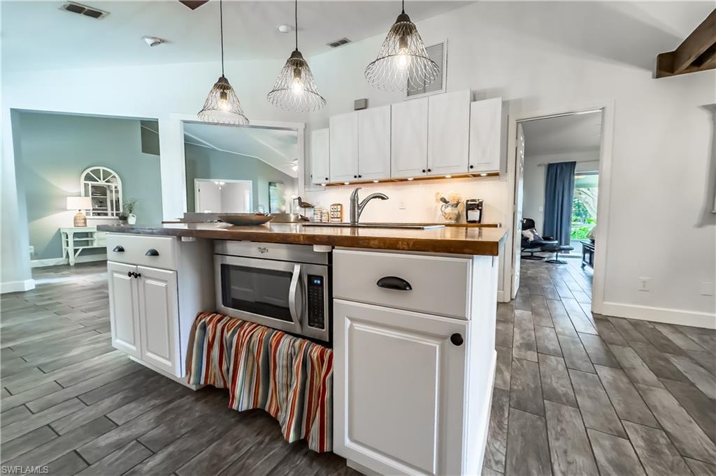 Prepare to fall in love with this delightful two bedroom plus den home that features an inviting open floor plan, vaulted ceilings, and a serene lake view from almost every room, creating a bright, airy atmosphere you’ll adore. When it comes to entertaining, this home really shines. The expansive kitchen is open to the living room and offers white cabinets, butcher block countertops, wood beams, a massive island, and a large dining area, making it the perfect place to entertain friends and family. Step outside to your screened lanai that is complete with a custom, built-in bar with plenty of seating that is ideal for those summer get-togethers. Or, choose to move further outside to the paver patio to enjoy those beautiful Florida sunsets over your lake. You’ll find charming details throughout the home, from the shiplap ceiling and wall details to cute hand painted cabinets, shelves, and closet doors, making it truly one-of-a-kind! And don’t forget…all tile flooring throughout (no carpet)! The primary bedroom has privacy from the rest of the home and has a large sliding door with access to the screened lanai while the primary bathroom offers a huge walk-in glass tiled shower, dual sinks, and a walk-in closet. On the opposite side of the home, you will find the guest bedroom, guest bathroom, and the office/den with glass double doors that is perfect for work or relaxation. Queens Park offers low HOA fees (only $337/year) and is located minutes from downtown Naples, the Bayshore area, multiple beaches, and tons of shopping/dining. Don’t miss your chance to make this peaceful cottage all your own…schedule a tour and start dreaming of all the wonderful memories waiting for you!