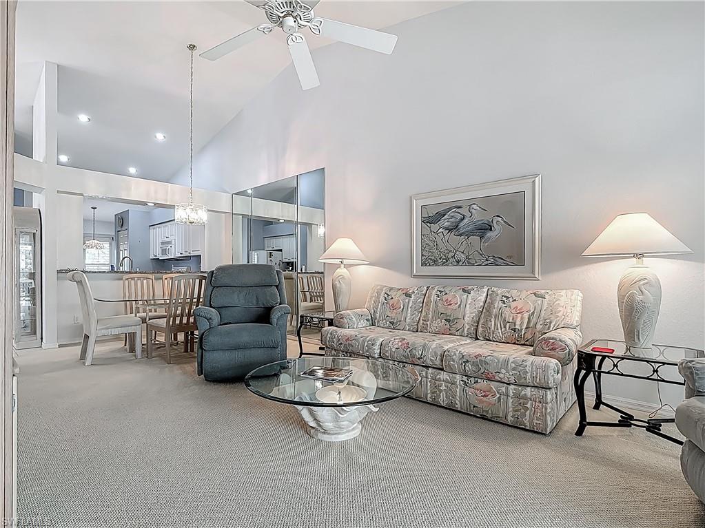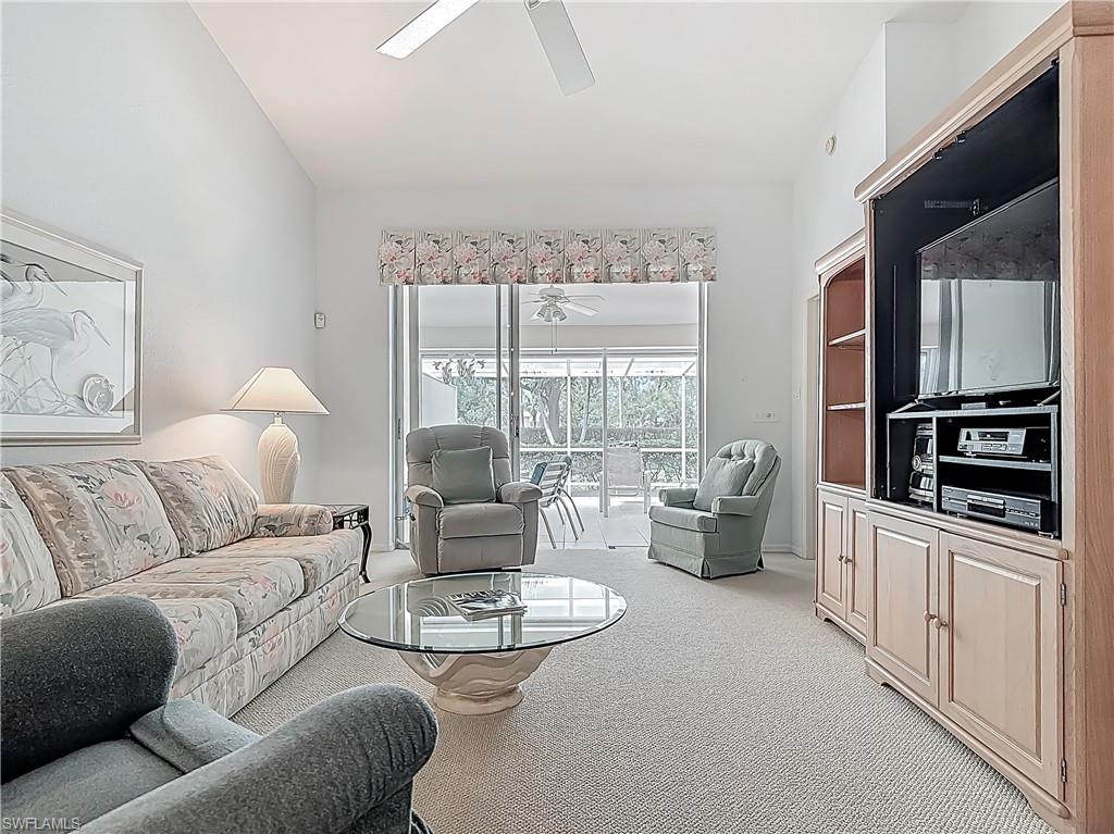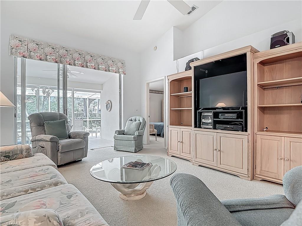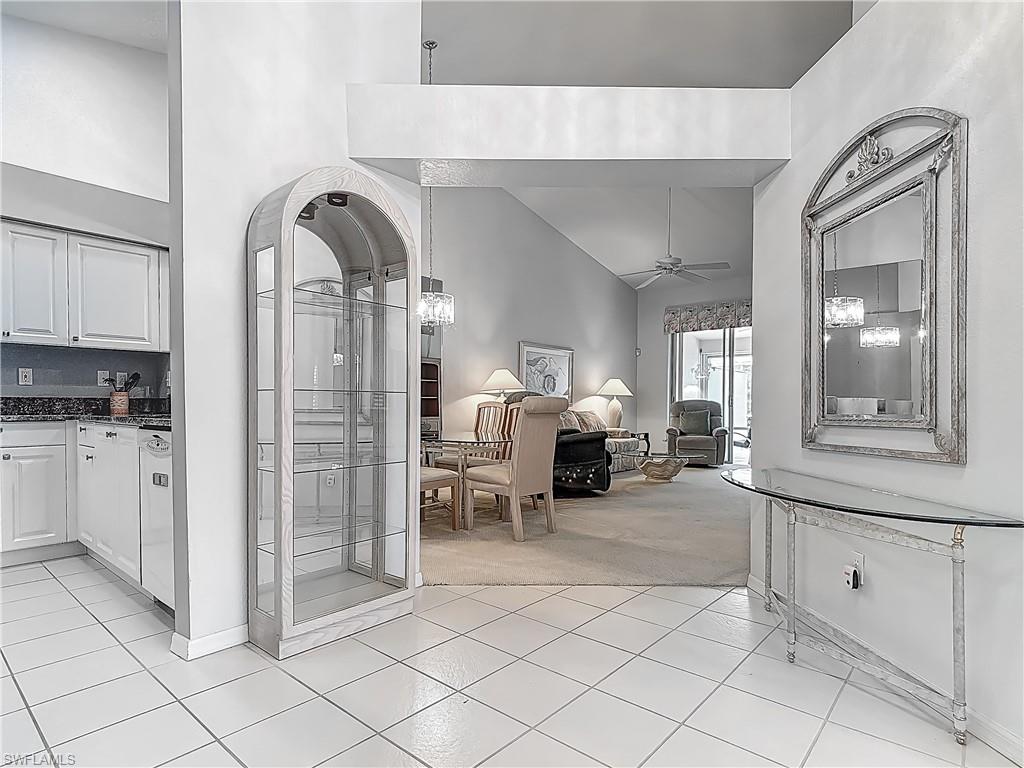Great opportunity to own a spacious villa in a rarely available and highly desirable subdivision within the Crown Pointe community. Great location across from swimming pool and clubhouse. This villa features an open floor plan with vaulted ceilings and large great room with plenty of space for a dining table. The eat-in kitchen has a pantry, beautiful granite countertops and breakfast bar. Bedrooms are bright and cheery with an oversized master with a large walk in closet. The master bath has dual sinks and large walk-in shower. The laundry room is conveniently located between the kitchen and garage and has a newer washing machine. Two car garage with an extended driveway for additional parking. Brand new water heater 2025. The AC was replaced in 2022. Electric hurricane shutters with remotes cover all the windows and the lanai slider shutter is operated by a wall switch. A new front storm door was also recently added with a pull down shades. Reasonable fees for this subdivision include cable/wifi, lawn/land maintenance, pool/rec facilities, exterior pest control and reserves for exterior painting and ROOFS. Located in the desirable "X" flood zone which is outside of the Special Flood Hazard Area with no flood insurance typically required by lenders. Amenities also include pickleball, tennis courts and an exercise room. You can also enjoy the nearby Rich King Greenway, a beautiful and safe three mile trail for biking and walking. Crown Pointe is located less than 5 miles to the beautiful sunny beaches of Naples as well as downtown Fifth Avenue shops and restaurants.