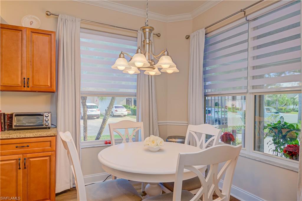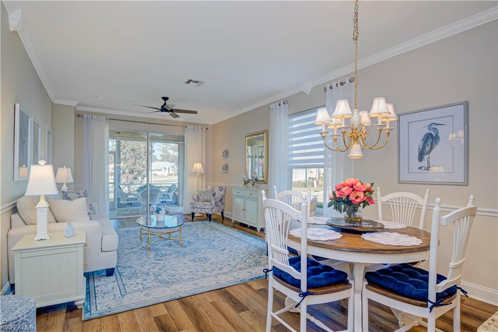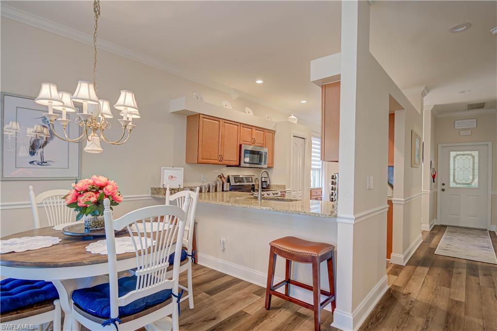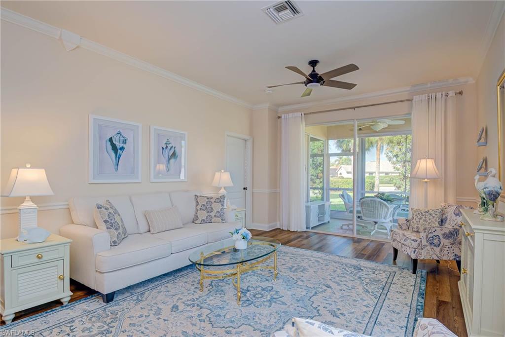RARE FIND - Luxury at its finest! Everything you've hoped for in your SW Florida dream home can be found in this elegantly appointed Duplex-style Villa. Pristine and doused in natural light, this enchanting home offers comfort in high style. Every inch of decorative space has been thoughtfully chosen from the luxury plush vinyl flooring to the graceful white cornices adorning designer fashion window treatments. Kitchen has luscious new warm-tone cabinetry, additional built-in cupboard space, granite countertops, stainless steel appliances, beautiful light-filled windows dripping with carefully chosen fine draperies and beautifully carved cornices. Light and delicate tones seep into every corner of pristine living space from your moment of entry to the updated bathrooms, New kitchen, New bathrooms, New A/C, hurricane shutters throughout, den and 2-car garage. Enjoy the view of the 4th hole from your screened lanai. All this set in the much sought-after Villages at Country Creek where you can enjoy an 18-hole bundled golf course, men's and women's golf leagues, tennis and bocce leagues, 5 pools, spa, and fitness center. Enjoy Sunday brunch at the clubhouse or lunch and a refreshing beverage on our New outdoor patio! A vibrant full-service restaurant and clubhouse celebrate all of your favorite holidays and activities including numerous volunteer groups, book clubs, knitting circles and card clubs. Location is perfect nestled between Naples and Ft. Myers and is minutes from RSW airport, post office, library, casual and fine dining, Coconut Point and Miramar Outlets and, of course, the beautiful beaches of Southwest Florida. This home is a true gem...and it is furnished!
