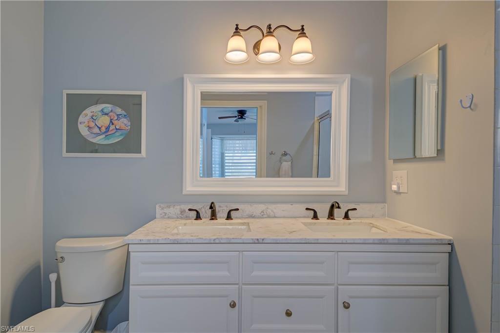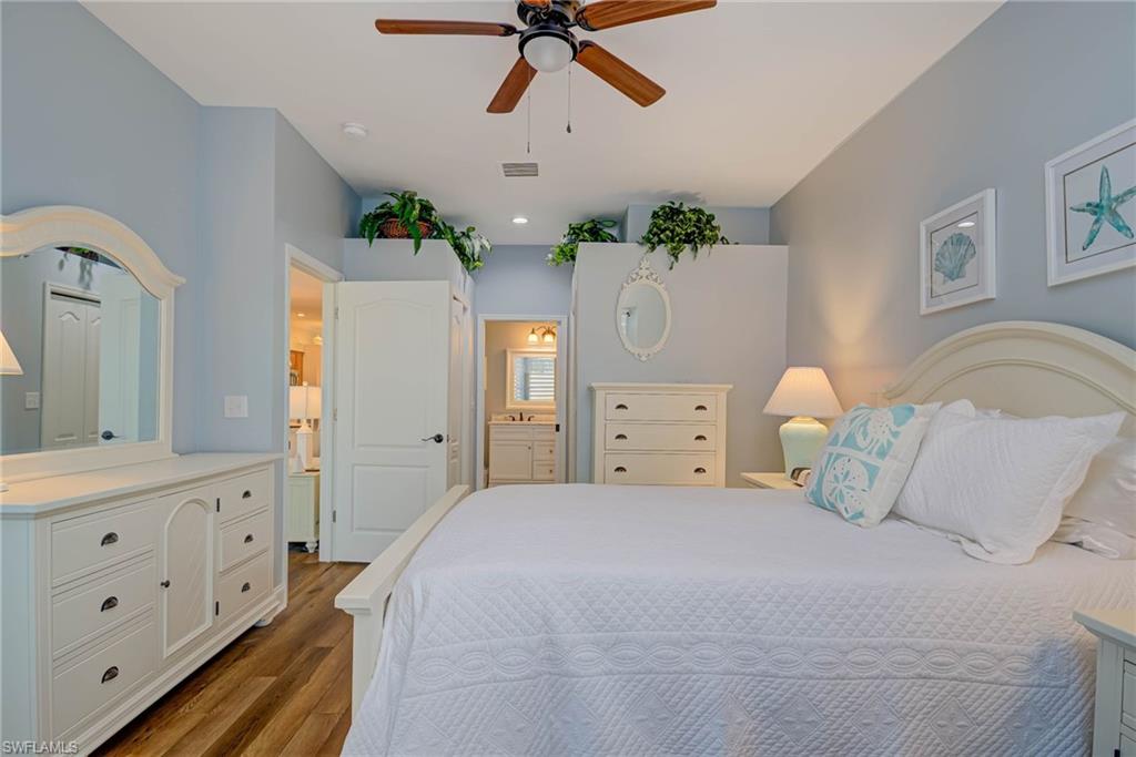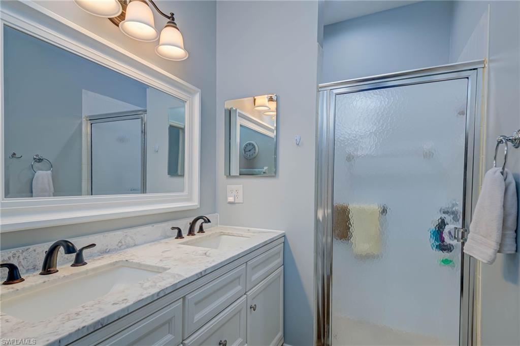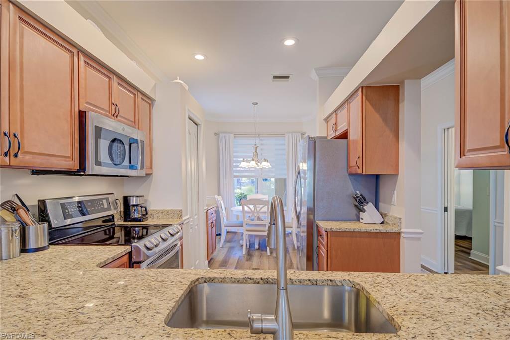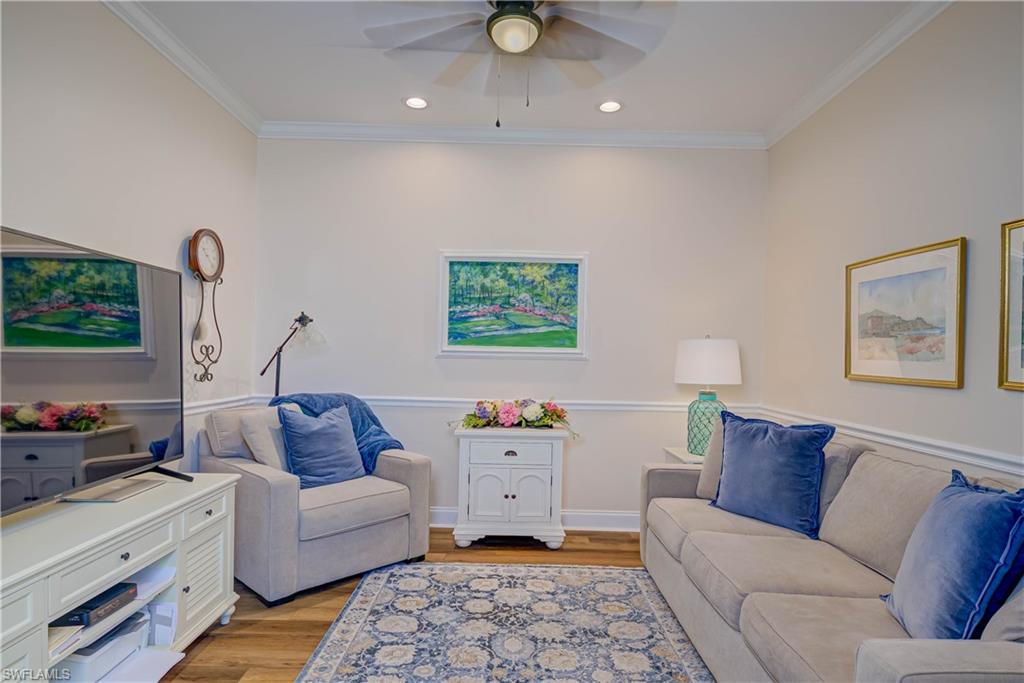 RARE FIND - Luxury at its finest! Everything you've hoped for in your SW Florida dream home can be found in this elegantly appointed Duplex-style Villa. Pristine and doused in natural light, this enchanting home offers comfort in high style. Every inch of decorative space has been thoughtfully chosen from the luxury plush vinyl flooring to the graceful white cornices adorning designer fashion window treatments. Kitchen has luscious new warm-tone cabinetry, additional built-in cupboard space, granite countertops, stainless steel appliances, beautiful light-filled windows dripping with carefully chosen fine draperies and beautifully carved cornices. Light and delicate tones seep into every corner of pristine living space from your moment of entry to the updated bathrooms, New kitchen, New bathrooms, New A/C, hurricane shutters throughout, den and 2-car garage. Enjoy the view of the 4th hole from your screened lanai. All this set in the much sought-after Villages at Country Creek where you can enjoy an 18-hole bundled golf course, men's and women's golf leagues, tennis and bocce leagues, 5 pools, spa, and fitness center. Enjoy Sunday brunch at the clubhouse or lunch and a refreshing beverage on our New outdoor patio! A vibrant full-service restaurant and clubhouse celebrate all of your favorite holidays and activities including numerous volunteer groups, book clubs, knitting circles and card clubs. Location is perfect nestled between Naples and Ft. Myers and is minutes from RSW airport, post office, library, casual and fine dining, Coconut Point and Miramar Outlets and, of course, the beautiful beaches of Southwest Florida. This home is a true gem...and it is furnished!