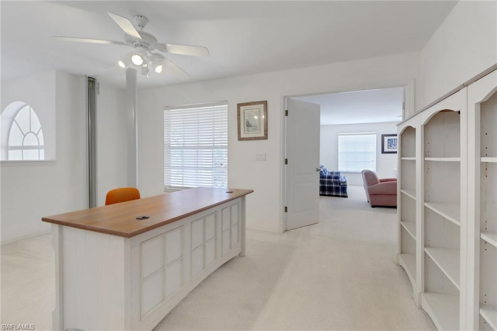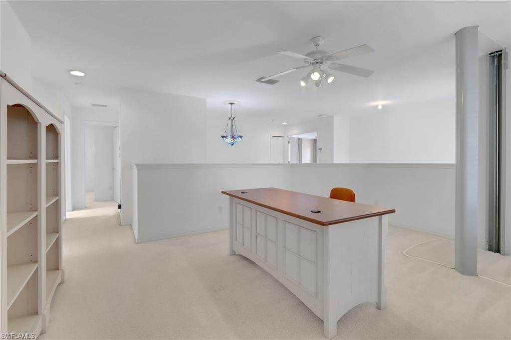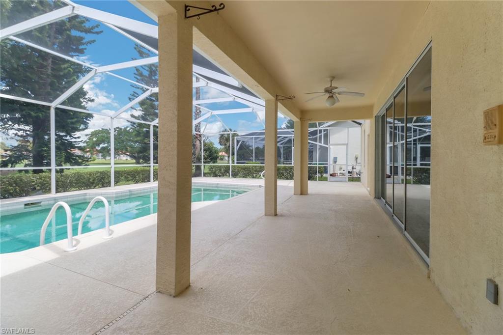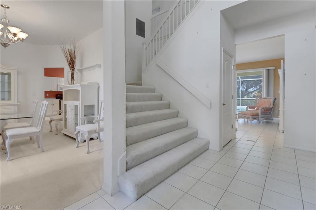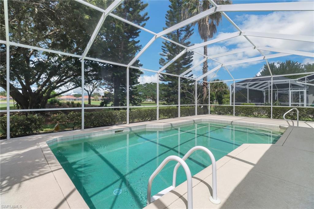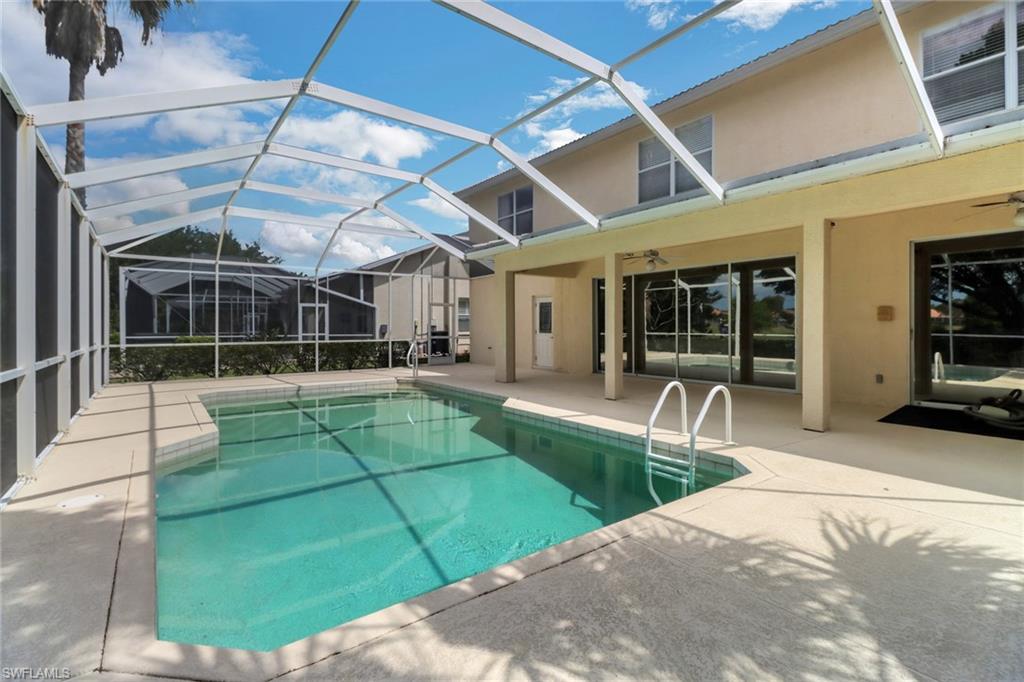 Price Improvement! New tile roof and pool heater install scheduled for November 2025. Discover an exceptional opportunity to own a spacious residence in Heritage Greens, offering golf course views without the membership fees. Perfectly positioned in North Naples, this home combines spectacular lake and fairway vistas of the Arrowhead Golf Course, a public course, with a convenient location close to shopping, dining, and amenities at Logan’s Landing and Founder’s Square. Offered AS IS and priced below its 2025 appraised value, this property is ready for a fresh vision. Whether you are looking to renovate, reimagine, or invest, the solid construction and versatile floor plan provide a strong foundation. Step outside to one of the home’s highlights: a private pool and screened lanai overlooking a shimmering lake and the rolling greens of the course beyond. It is an inviting setting for relaxing, entertaining, or simply enjoying the view. Mature landscaping frames the property, enhancing both curb appeal and privacy. Inside, the Colonnade floor plan offers generous living space with thoughtful design features, including a dual staircase accessible from both the kitchen and the two-story foyer. The layout includes four bedrooms and three full bathrooms, a great room, living room, den, loft, and bonus room, plus ample storage throughout the home. Recent updates include a 2018 AC replacement and the installation of a clear cylindrical residential lift for easy access between floors. While cosmetic updates are needed, the home’s size, flow, and potential invite customization to fit a variety of lifestyles. Heritage Greens has lower HOA fees and also offers excellent flexibility for owners who may wish to generate income, with the ability to rent the property up to 12 times per year with a 30-day minimum lease. Do not miss the chance to transform this property into your Naples retreat or next investment. With its prime location, scenic views, and value pricing, this home is an opportunity worth exploring. All offers are welcome.
