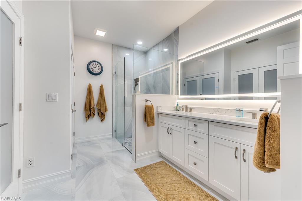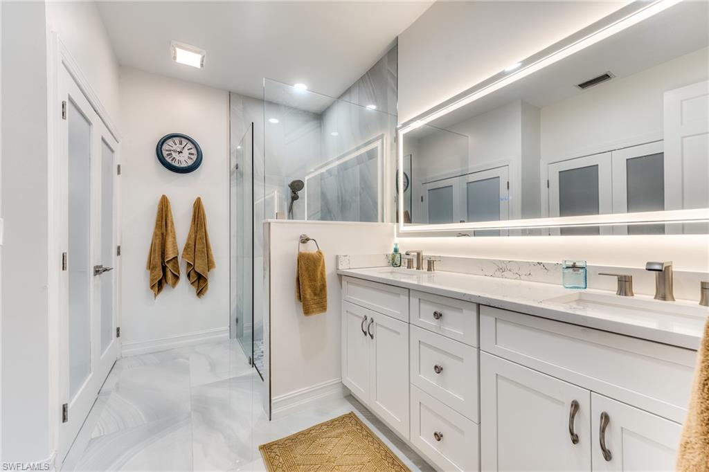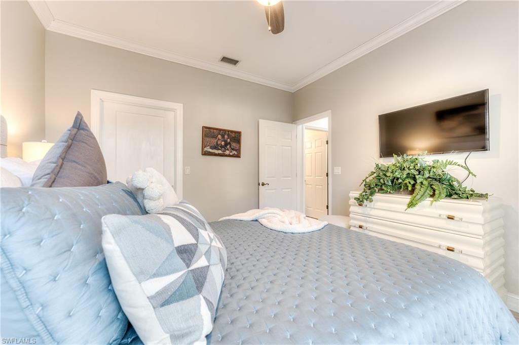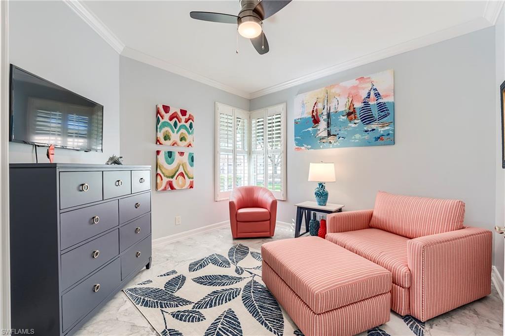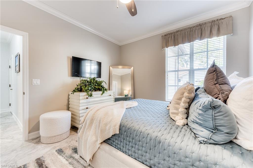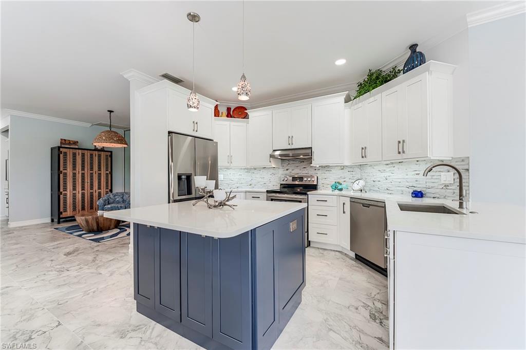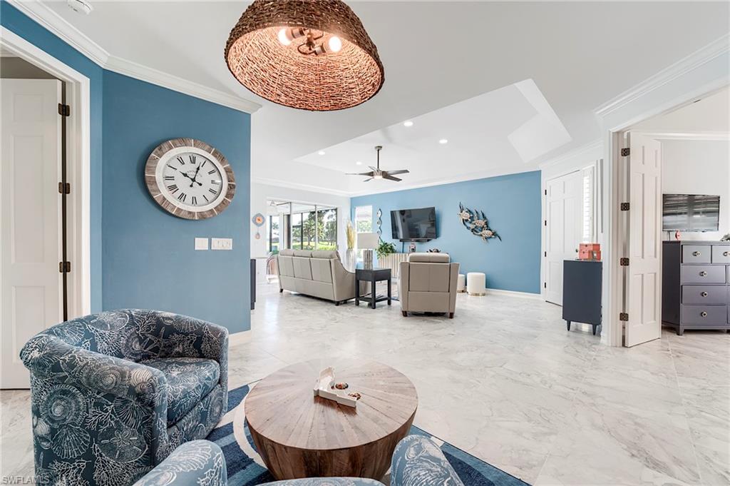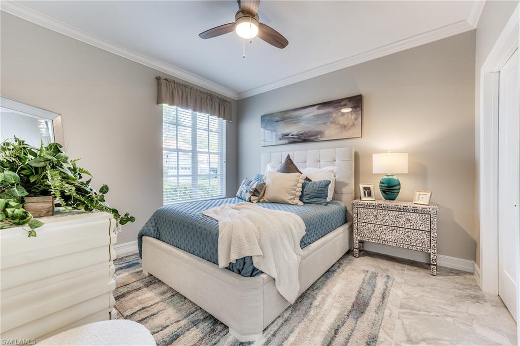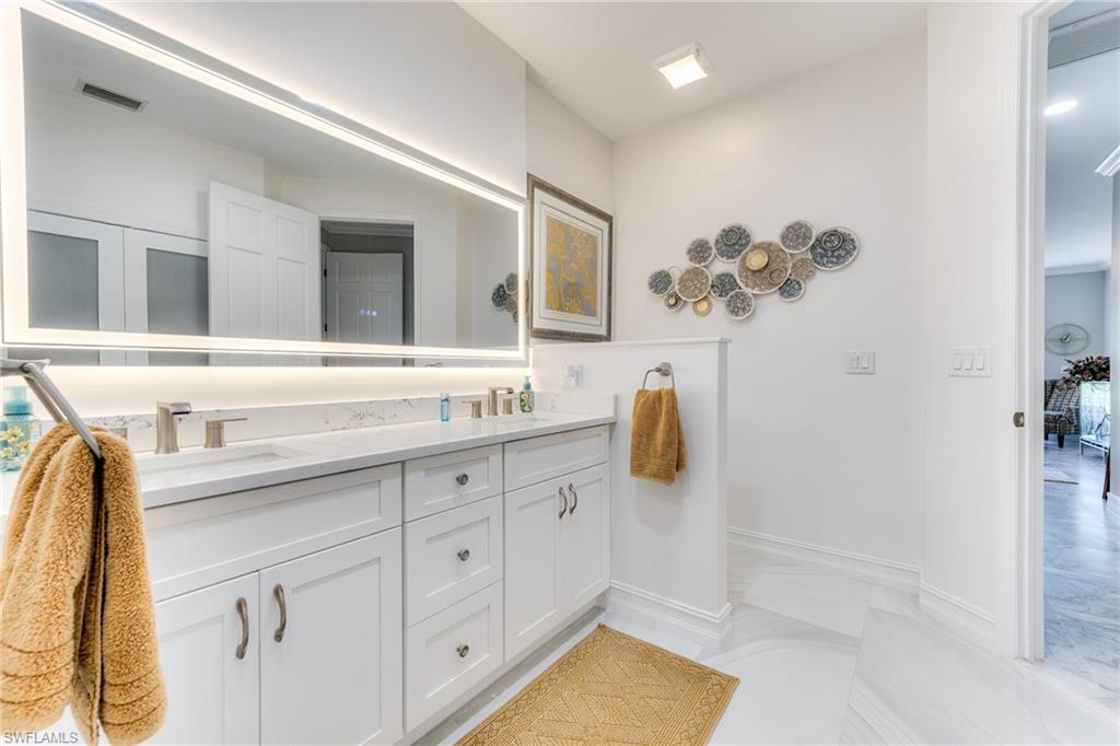 Amazingly gorgeous villa has been fully updated! It features an open floor plan with stunning 24 x 24 tile and elegant crown molding. The spacious kitchen boasts a large island, perfect for gatherings, while the cozy sitting area can serve as a formal dining space. Step out to the lanai, where you can enjoy breathtaking golf course and water views through a new panoramic screen. The primary bath is a luxurious retreat, complete with dual sinks featuring backlit mirrors and a roomy shower with an accent wall. Recent updates and extras include HVAC (2024), roof (2019), lanai screen (2021), interior doors, garage door & opener (2025), water softner, and replacement windows in the kitchen nook. All owners will need a social membership to the Estero Country Club, where you'll enjoy pickleball, tennis, bocce, multiple dining venues, fitness, and social activities. Golf memberships, including an executive membership for under 56, are also available for this fantastic 18 hole Gordon Lewis championship course that was just voted The BEST in Lee county. Don’t miss the opportunity to call this beautiful home your own!