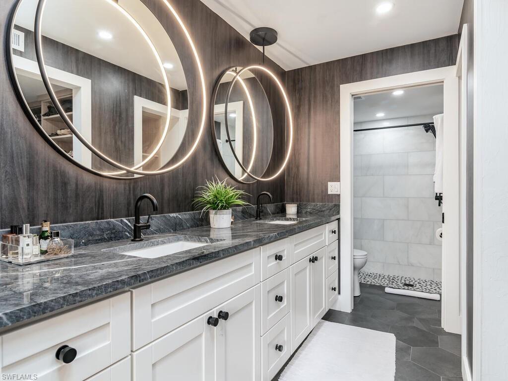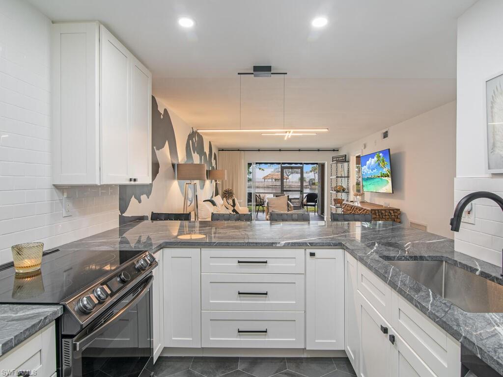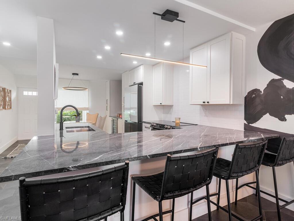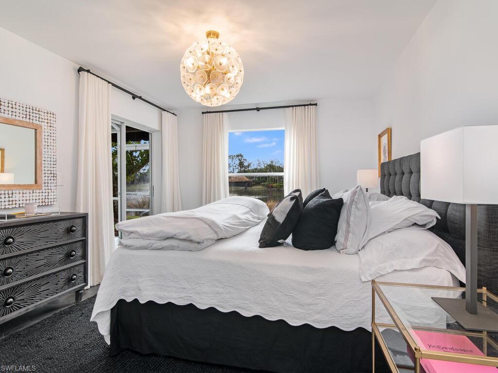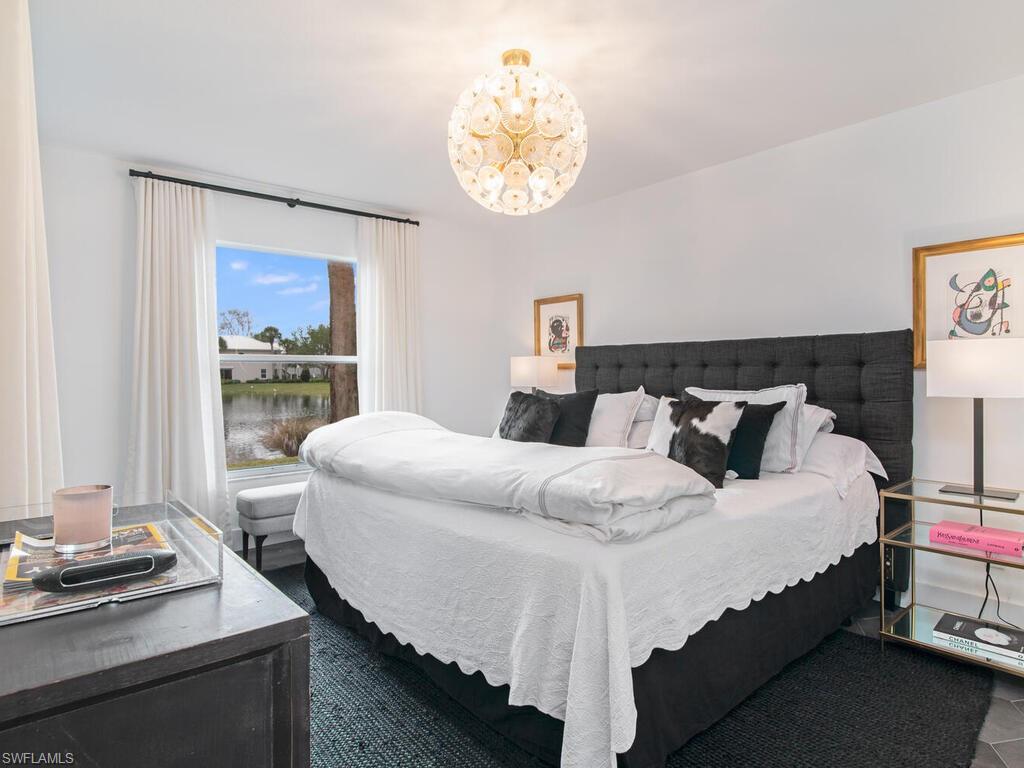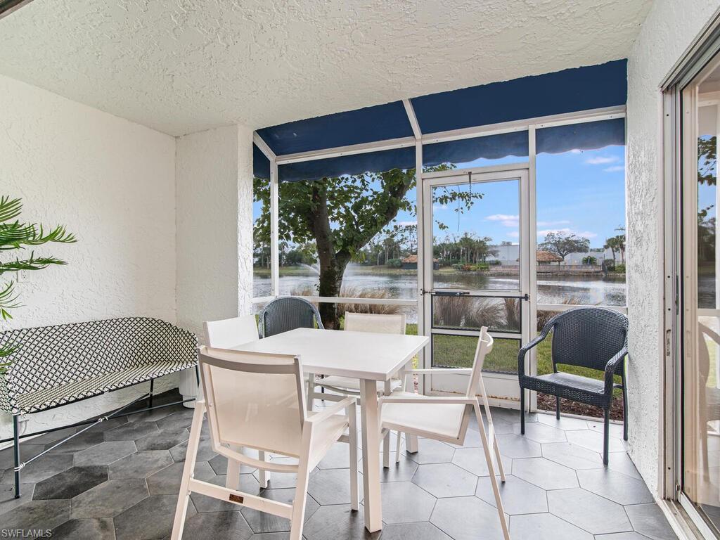MOTIVATED SELLER!! Newly renovated unit 2 bedrooms 2 bath WITH A SOUTHERN EXPOSURE AND VIEW OF THE LAKE!!! One of the best views in the community. The kitchen has been thoughtful redesigned to utilize the space as efficiently as possible while still be very open. Waterfall countertops fits 4 stools, built in pantry. All appliances are new. Tiled Lanai. Newer Hvac and water tank. New cabinetry, wine cooler, and much more! Outdoor storage unit. Unit comes fully furnished; all furnishings are new. Guest bedroom sleeps 4 with Restoration Hardware bunkbed full over Queen. Custom drapes and closets, Vinal wallpaper in both bathrooms. Clubhouse pool overlooks lake for nice social events. LOW HOA FEES. Incredible location walking distance to Mercato with its many shops, restaurants and movie theatre. Also enjoy private neighborhood access to the Pavilion shops with dining, Publix and movie theatre. This property can also be a lucrative investment with its five,30-day rental opportunities. COME SEE THIS UNIT IN THE VERY POPULAR PAVILION CLUB IN NORTH NAPLES