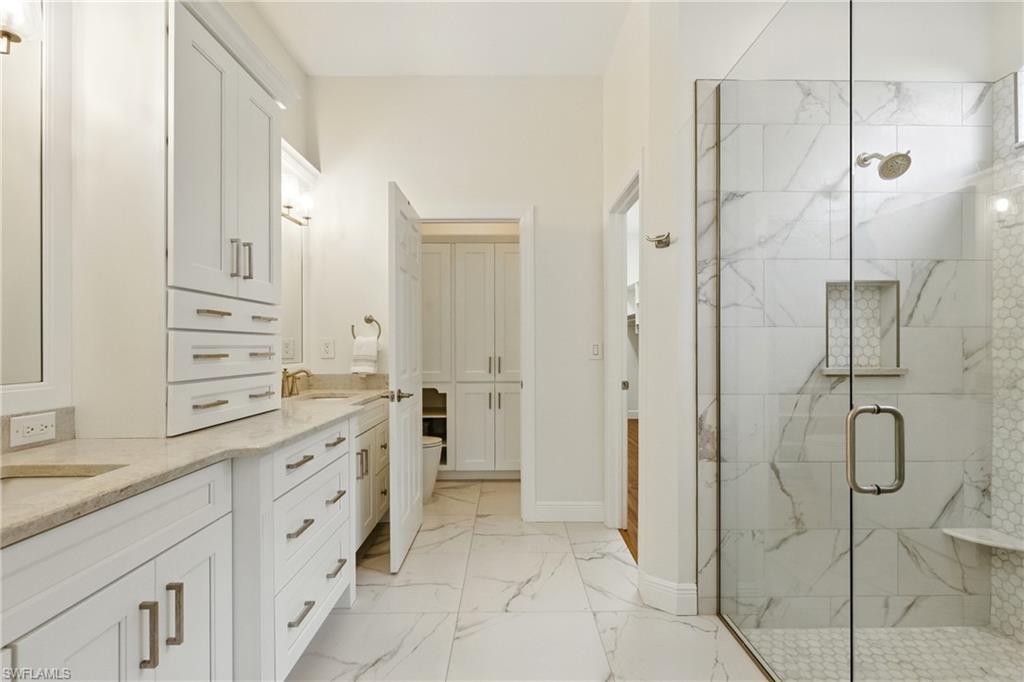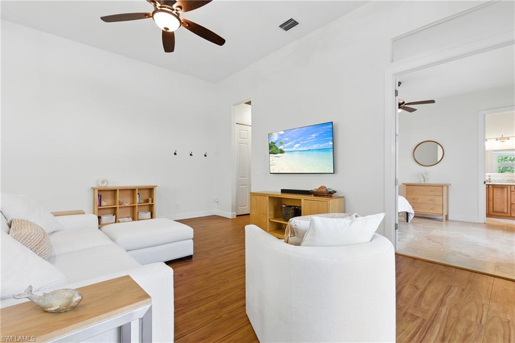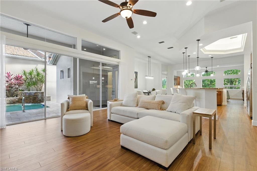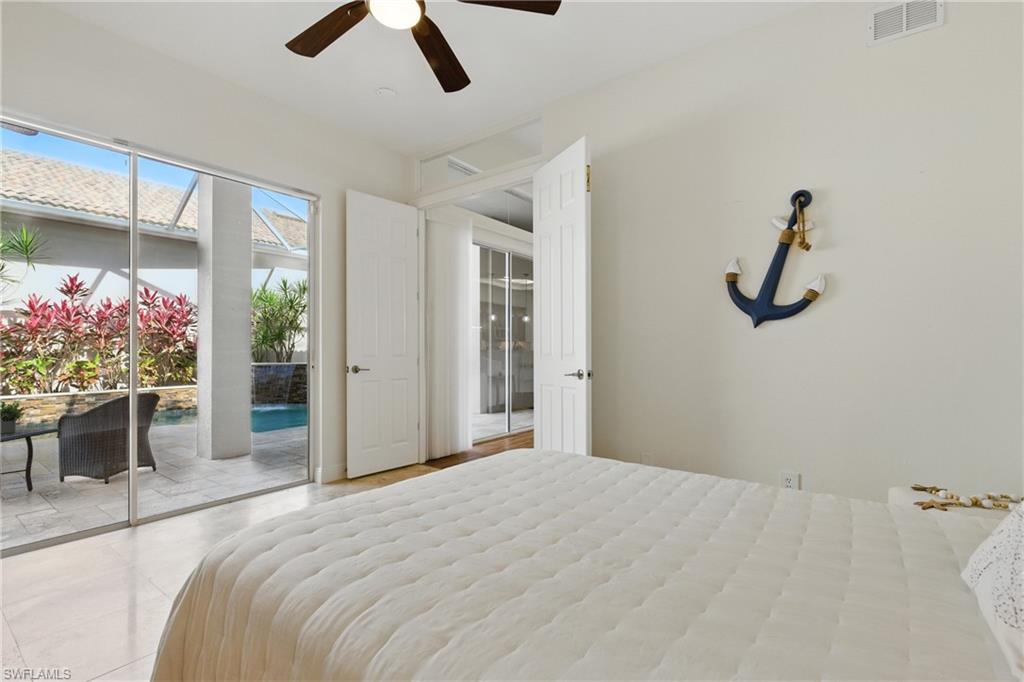 Looking for the unique In Law quarters, guest suite, or space for a caretaker with privacy, then this recently price improved courtyard home is your answer! Where can you find a 3-bedroom, 3.5-bath pool home in amenity rich Bonita Bay for under $1 Million? Step into your private courtyard and be greeted by a tranquil pool with a peaceful water feature, ideal for resort-style living. The open-concept layout includes a spacious kitchen with stainless steel appliances and a central island perfect for entertaining. The family room seamlessly connects with a wall of sliding glass doors, enhancing indoor-outdoor flow. The spacious primary suite offers serene views of a lush preserve, featuring a spa like retreat with walk in shower, double sinks, tons of storage, and a large walk-in closet. The second bedroom suite boasts a walk-in closet, private bath, and direct access to the courtyard pool. The third bedroom suite, known as the “cabana” provides additional privacy for guests, an in law, or a caretaker or nanny. Under roof, but not attached, this is the ideal arrangement for someone looking to have someone close but maintain privacy. Set on a cul-de-sac with a large private lot, this home is conveniently located near Bonita Bay’s exceptional amenities, including golf courses, tennis, a marina, and exclusive beach access. Impact windows and high ceilings complete this easy to care for, single story and easily accessible home. Don’t miss the chance to show this property—schedule your private showing today!