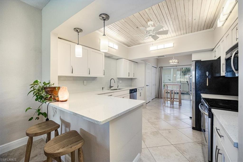 Chardonnay in the Vineyards is simply a great community to enjoy your full time or seasonal residency in SWFL! This fresh and breezy first floor condo offers front and rear screened lanai spaces for optimal living and the rear lanai, accessible from the great room and the primary bedroom, offers serene sunrises and golf course views. Step into this charming condo and be immediately drawn to the inviting view while appreciating the subtle detail throughout. The open, spacious great room/dining room combo flows to the updated kitchen complete with pretty ceiling detail and white cabinets. A second dining area can also function perfectly as a quiet workspace or a lively game night spot. The primary bedroom and bath are well-appointed with an updated shower, separate tub and dual sinks. Featuring a brand-new A/C system installed in August 2025, this impeccably maintained residence offers comfort and care at the highest standard. Located only 5 miles from sandy gulf beaches, and walking distance to Crossroads Market Shopping Center and Physicians Regional, a multitude of dining and shopping destinations, arts centers and nature trails, this is an ideal location for enjoying everything Naples. Vineyards Country Club offers several levels of optional membership which can include 36 holes of Championship Golf, Pickleball, Bocce, Har Tru Tennis courts, Wellness/Fitness Center, Spa, Saltwater Lap pool and a Halotherapy Salt Room!