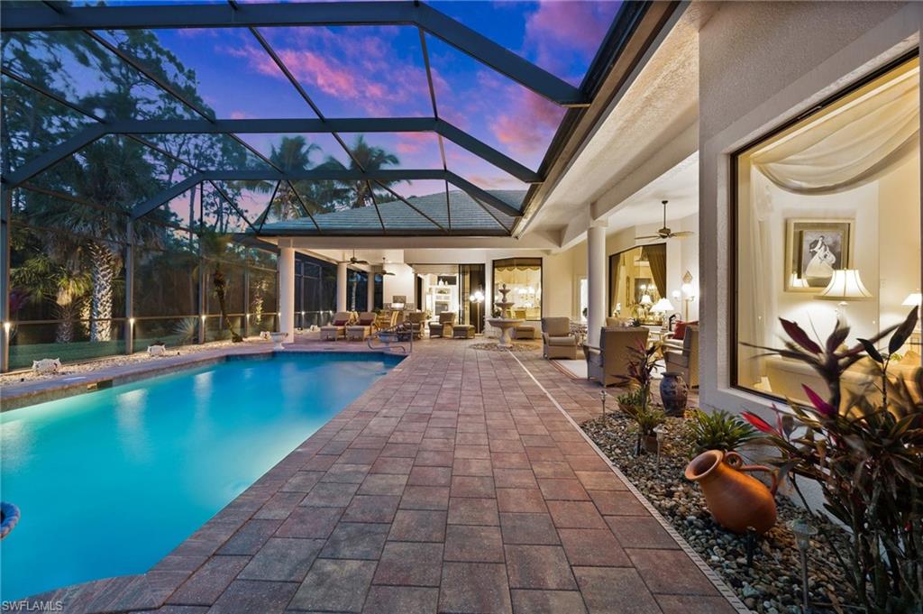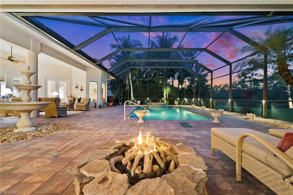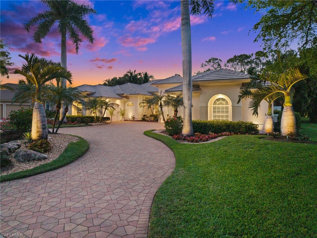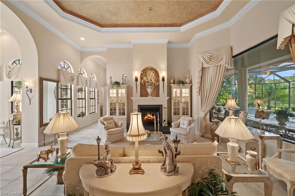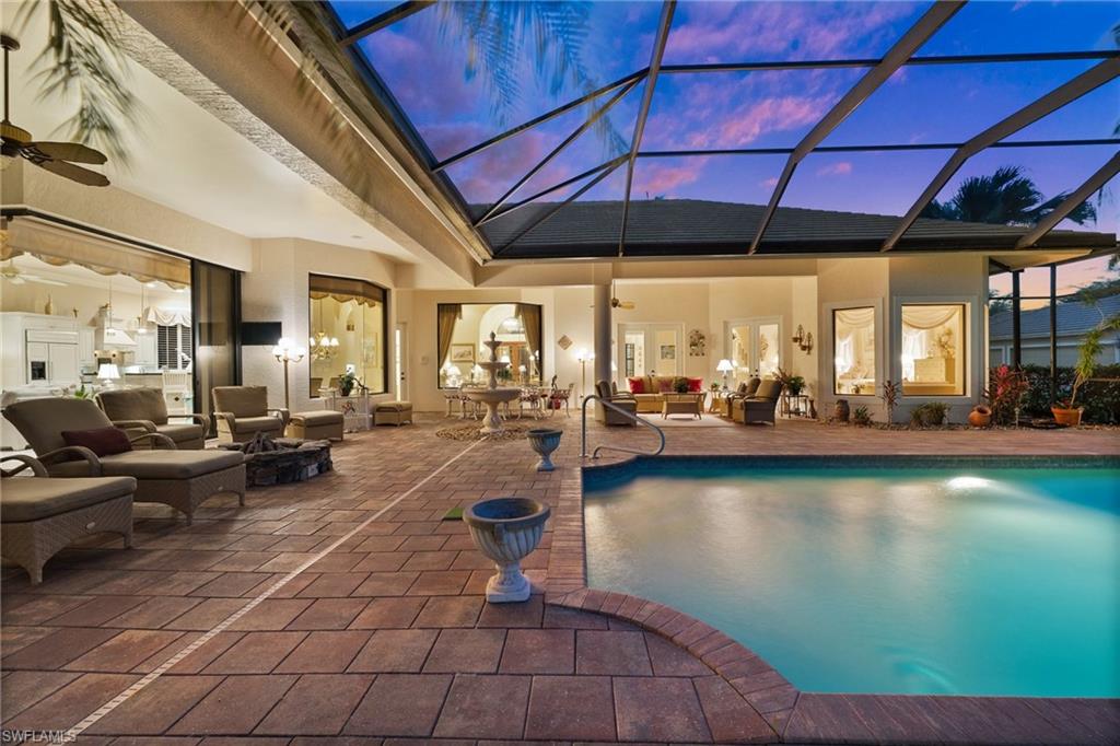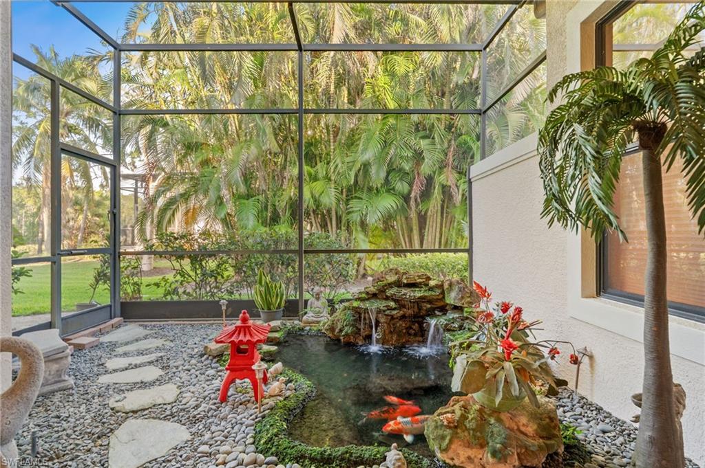 LOOK NO FURTHER – THIS IS A REAL SHOWSTOPPER! Welcome to unparalleled luxury in the prestigious, highly sought-after Lake Forest section. From the moment you enter, you're greeted by the warmth and grandeur of this palace-like 4-bedroom, 3.5-bath residence spanning 3,546 sq ft under air. Set on an oversized half-acre lot, the home offers exceptional privacy, lush landscaping, a koi pond, serene lake views, and a resort-style pool deck perfect for entertaining. Extensive front and back landscape lighting transforms the property into a glowing sanctuary after dark. Freshly painted just four months ago, the home features impact-tinted windows, premium porcelain flooring, and a brand-new roof (August 2024). A grand foyer leads to a formal dining room and private office with hardwood floors. The open-concept living area centers around a gas fireplace, with tray ceiling lighting adding a warm glow. The chef’s kitchen is a standout, with granite countertops, center island, walk-in pantry, and GE Profile/Bosch appliances. Enjoy natural light throughout the home, enhanced by tinted dual-pane windows and elegant custom treatments. The spacious primary suite offers dual walk-in closets and a spa-style bathroom with double vanities and serene natural light. The oversized screened lanai is an entertainer’s dream, featuring a heated pool/spa, outdoor kitchen, and multiple dining/lounging areas. Additional features include plantation shutters, surround sound, a 3-car garage (one bay converted into a game room), central A/C, private security gate, and extra storage. AMENITIES: Enjoy the Shadow Wood Country Club lifestyle with 54 holes of championship golf, tennis, bocce, fine dining, and a vibrant social calendar. The upcoming Lifestyle Amenity Center will offer two resort-style pools, a kids’ pool, six indoor pickleball courts, a racquet pro shop, full-service restaurant/bar, and café. LOCATION: Just minutes from RSW Airport, Coconut Point, top-tier healthcare, white-sand beaches, and fine dining – this home truly captures the essence of Southwest Florida luxury living.