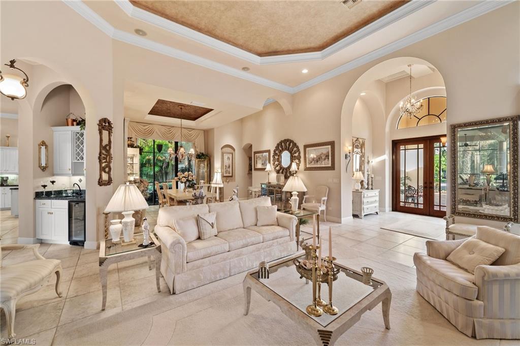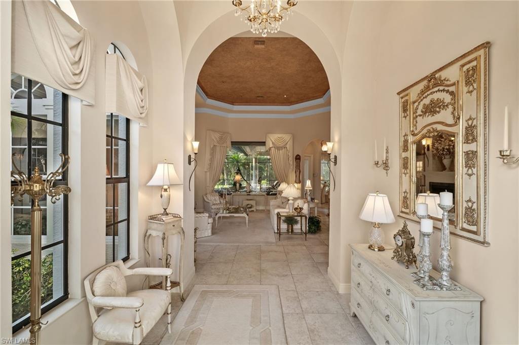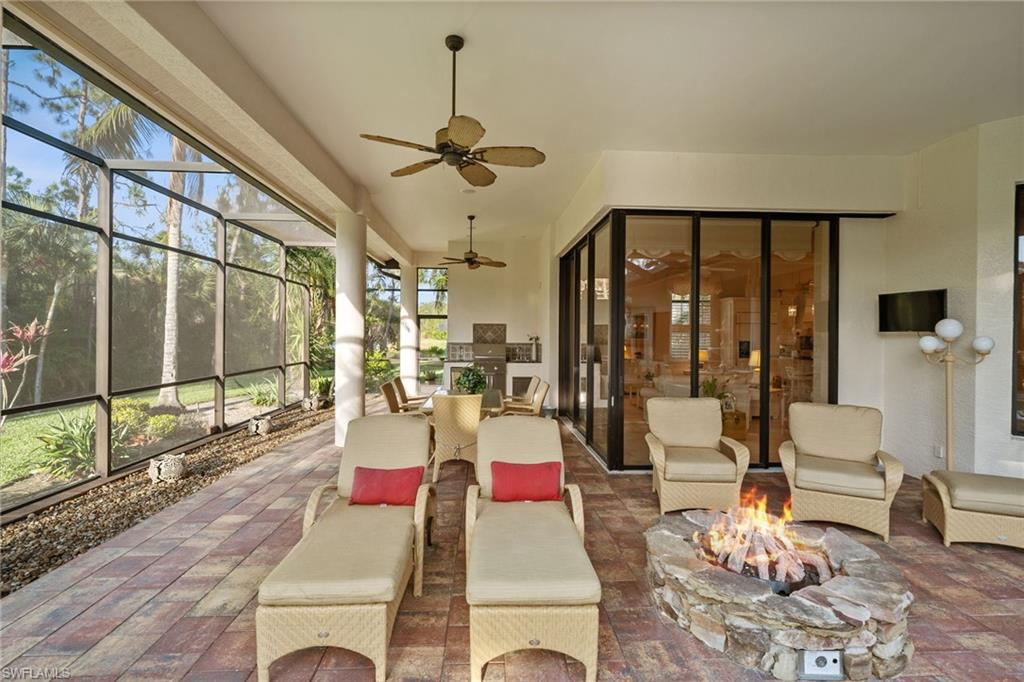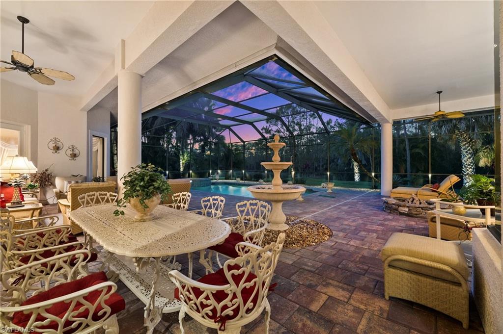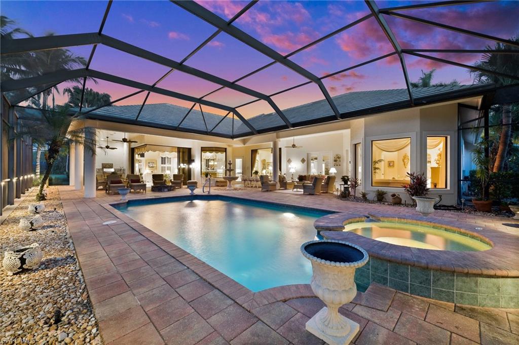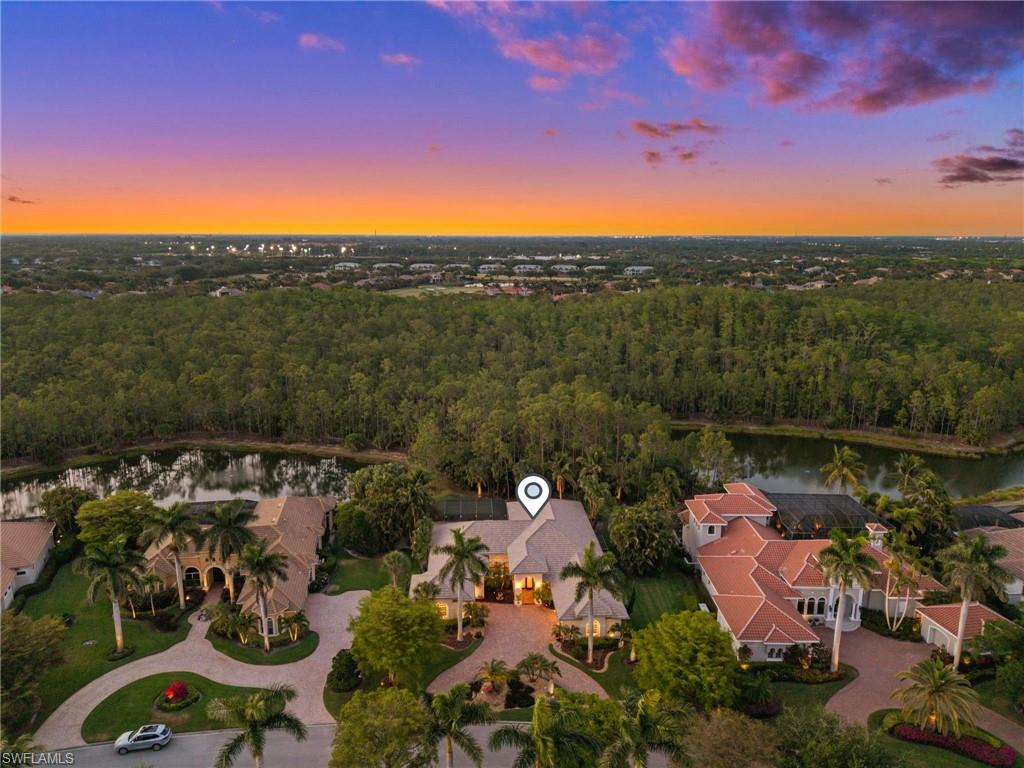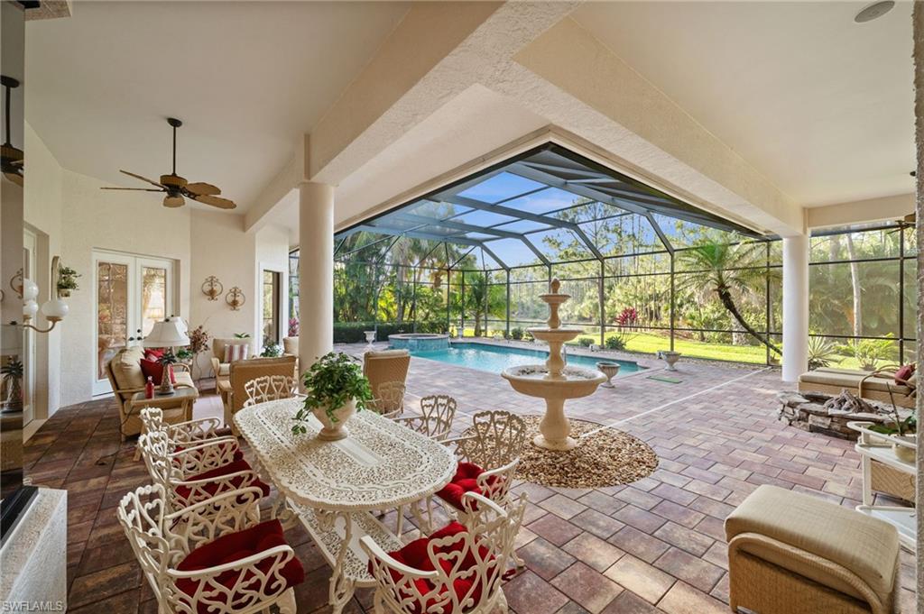 LOOK NO FURTHER – THIS IS A REAL SHOWSTOPPER! Welcome to unparalleled luxury in the prestigious, highly sought-after Lake Forest section. From the moment you enter, you're greeted by the warmth and grandeur of this palace-like 4-bedroom, 3.5-bath residence spanning 3,546 sq ft under air. Set on an oversized half-acre lot, the home offers exceptional privacy, lush landscaping, a koi pond, serene lake views, and a resort-style pool deck perfect for entertaining. Extensive front and back landscape lighting transforms the property into a glowing sanctuary after dark. Freshly painted just four months ago, the home features impact-tinted windows, premium porcelain flooring, and a brand-new roof (August 2024). A grand foyer leads to a formal dining room and private office with hardwood floors. The open-concept living area centers around a gas fireplace, with tray ceiling lighting adding a warm glow. The chef’s kitchen is a standout, with granite countertops, center island, walk-in pantry, and GE Profile/Bosch appliances. Enjoy natural light throughout the home, enhanced by tinted dual-pane windows and elegant custom treatments. The spacious primary suite offers dual walk-in closets and a spa-style bathroom with double vanities and serene natural light. The oversized screened lanai is an entertainer’s dream, featuring a heated pool/spa, outdoor kitchen, and multiple dining/lounging areas. Additional features include plantation shutters, surround sound, a 3-car garage (one bay converted into a game room), central A/C, private security gate, and extra storage. AMENITIES: Enjoy the Shadow Wood Country Club lifestyle with 54 holes of championship golf, tennis, bocce, fine dining, and a vibrant social calendar. The upcoming Lifestyle Amenity Center will offer two resort-style pools, a kids’ pool, six indoor pickleball courts, a racquet pro shop, full-service restaurant/bar, and café. LOCATION: Just minutes from RSW Airport, Coconut Point, top-tier healthcare, white-sand beaches, and fine dining – this home truly captures the essence of Southwest Florida luxury living.