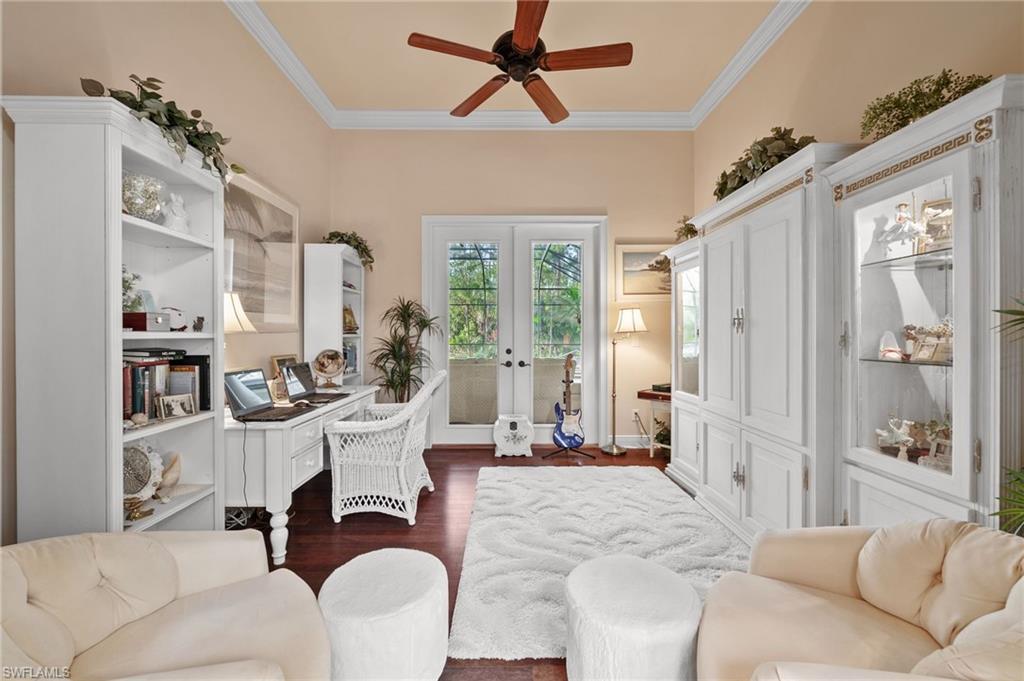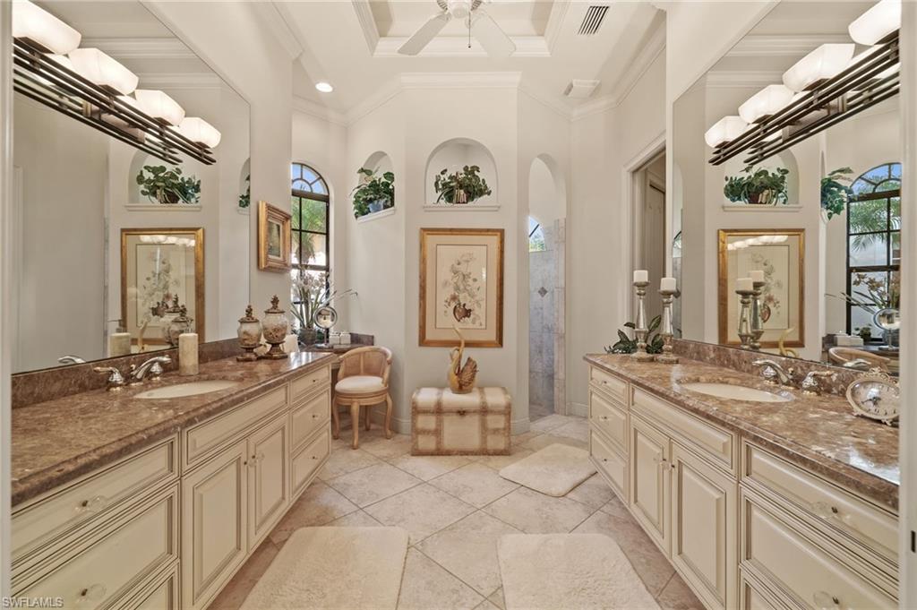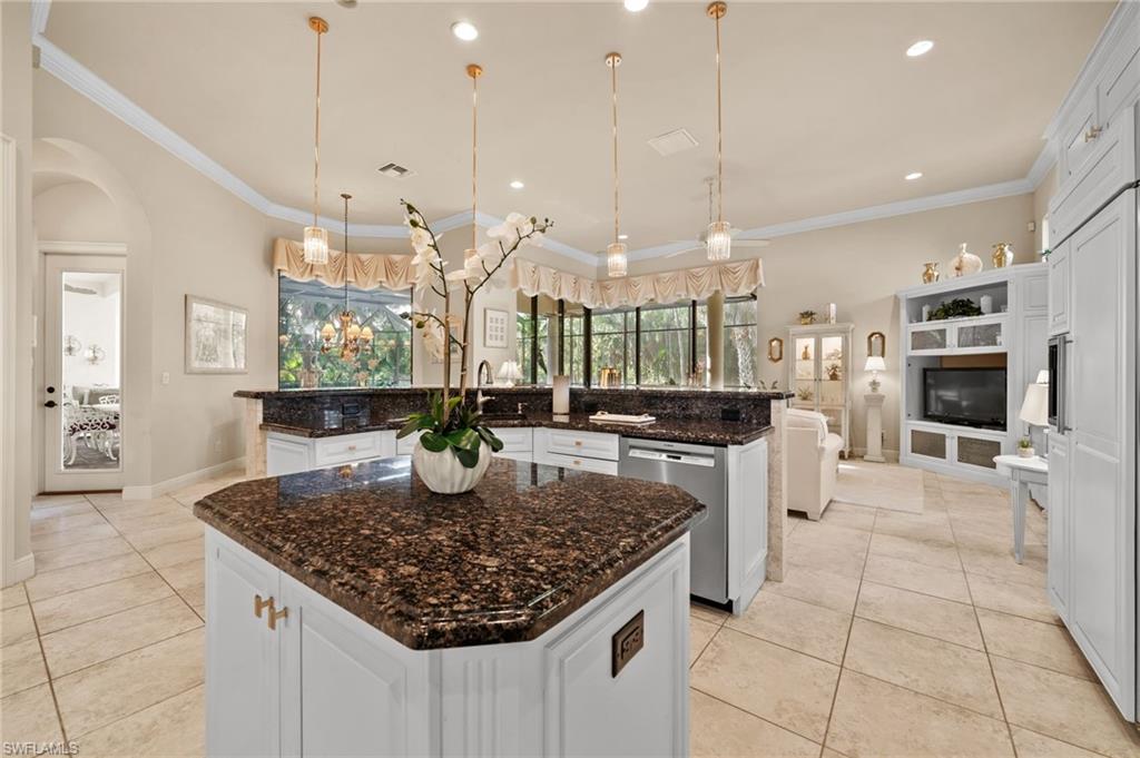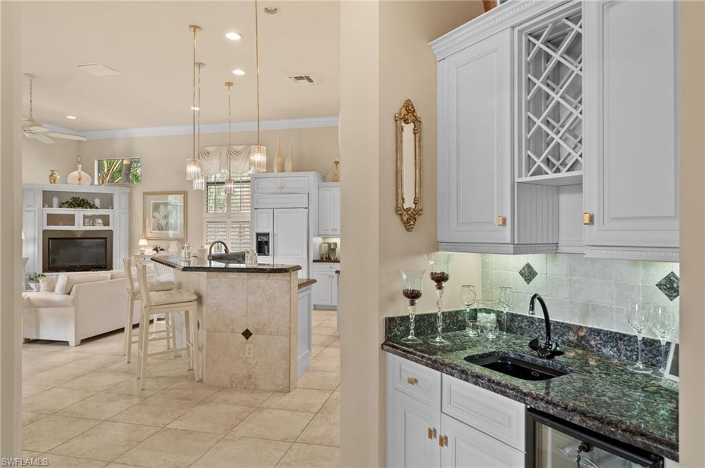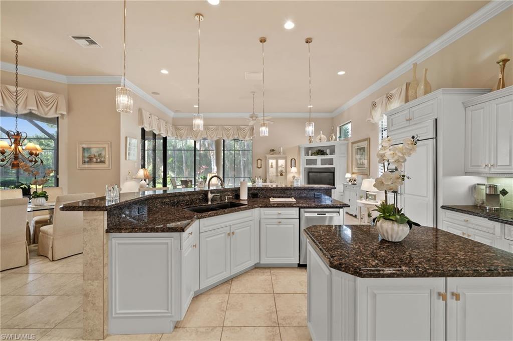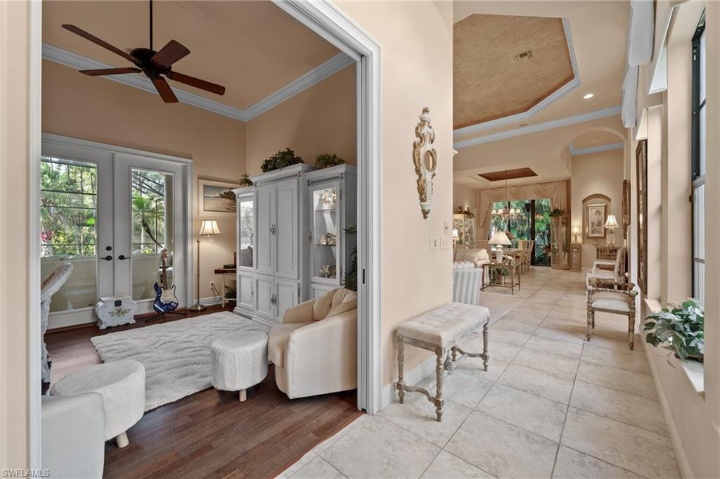 LOOK NO FURTHER – THIS IS A REAL SHOWSTOPPER! Welcome to unparalleled luxury in the prestigious, highly sought-after Lake Forest section. From the moment you enter, you're greeted by the warmth and grandeur of this palace-like 4-bedroom, 3.5-bath residence spanning 3,546 sq ft under air. Set on an oversized half-acre lot, the home offers exceptional privacy, lush landscaping, a koi pond, serene lake views, and a resort-style pool deck perfect for entertaining. Extensive front and back landscape lighting transforms the property into a glowing sanctuary after dark. Freshly painted just four months ago, the home features impact-tinted windows, premium porcelain flooring, and a brand-new roof (August 2024). A grand foyer leads to a formal dining room and private office with hardwood floors. The open-concept living area centers around a gas fireplace, with tray ceiling lighting adding a warm glow. The chef’s kitchen is a standout, with granite countertops, center island, walk-in pantry, and GE Profile/Bosch appliances. Enjoy natural light throughout the home, enhanced by tinted dual-pane windows and elegant custom treatments. The spacious primary suite offers dual walk-in closets and a spa-style bathroom with double vanities and serene natural light. The oversized screened lanai is an entertainer’s dream, featuring a heated pool/spa, outdoor kitchen, and multiple dining/lounging areas. Additional features include plantation shutters, surround sound, a 3-car garage (one bay converted into a game room), central A/C, private security gate, and extra storage. AMENITIES: Enjoy the Shadow Wood Country Club lifestyle with 54 holes of championship golf, tennis, bocce, fine dining, and a vibrant social calendar. The upcoming Lifestyle Amenity Center will offer two resort-style pools, a kids’ pool, six indoor pickleball courts, a racquet pro shop, full-service restaurant/bar, and café. LOCATION: Just minutes from RSW Airport, Coconut Point, top-tier healthcare, white-sand beaches, and fine dining – this home truly captures the essence of Southwest Florida luxury living.