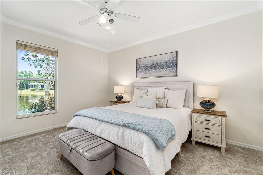 Priced below current appraisal! Nestled in the charming enclave of Longlake Village, this three-bedroom, two-bath lakefront home offers a rare opportunity to create your perfect retreat within the gates of coveted Pelican Landing. The thoughtful layout features an eat-in kitchen with a breakfast nook, a formal dining room, a spacious living area, and generously sized bedrooms. A glass-enclosed porch with impact-resistant sliders extends the living space, providing a serene, year-round sanctuary. This well-maintained home boasts new carpeting and fresh interior paint, a 2021 roof, a 2019 air-conditioning system, and a two-car garage, delivering both convenience and ample storage. Residents enjoy access to Pelican Landing’s exceptional amenities, including a private 34-acre Gulf island beach park, canoe and kayak launches, tennis and pickleball courts, bocce, sailing, a state-of-the-art fitness center, a butterfly garden, and scenic walking and biking trails. Longlake Village also offers its own community pool, spa, and clubhouse within a beautifully landscaped, low-maintenance neighborhood. Whether seeking a full-time residence or a seasonal escape, this home presents a unique chance to bring your vision to life in one of Southwest Florida’s most desirable, amenity-rich communities.