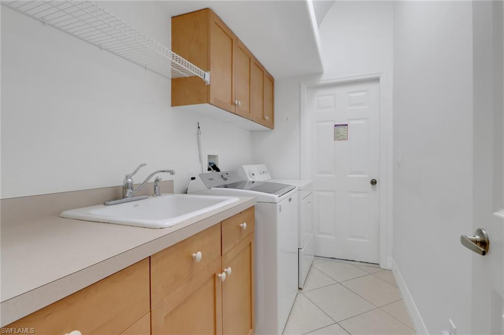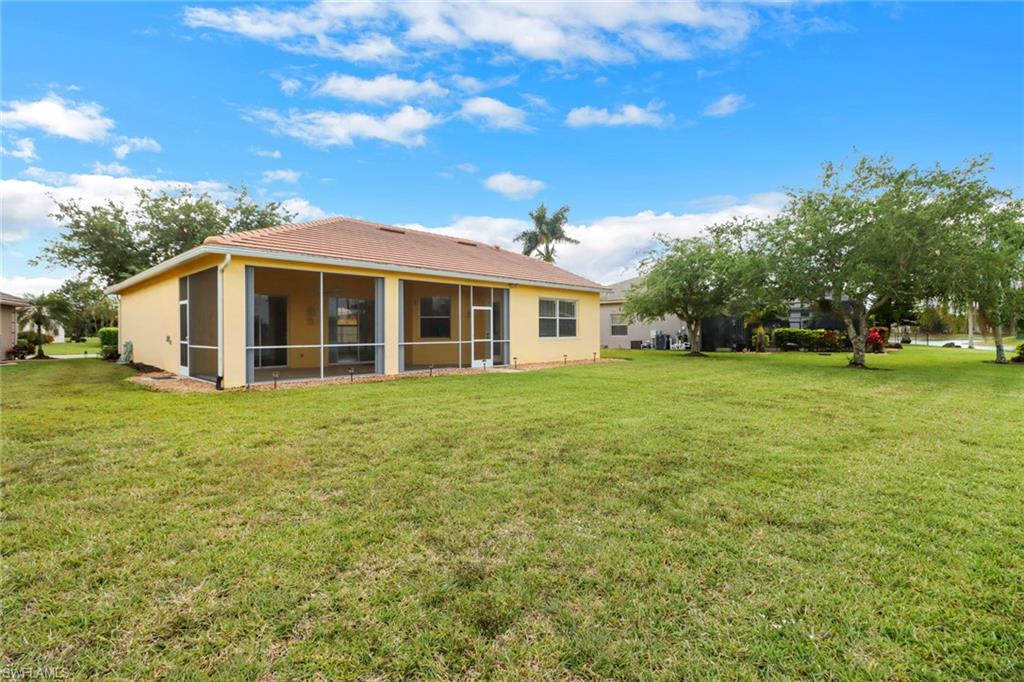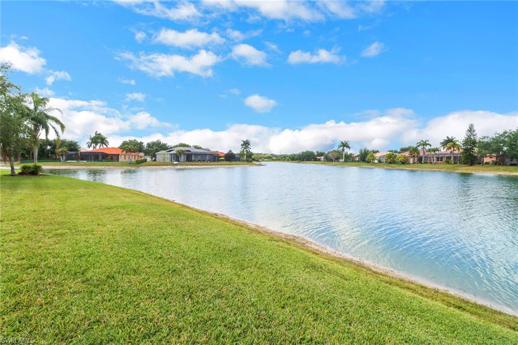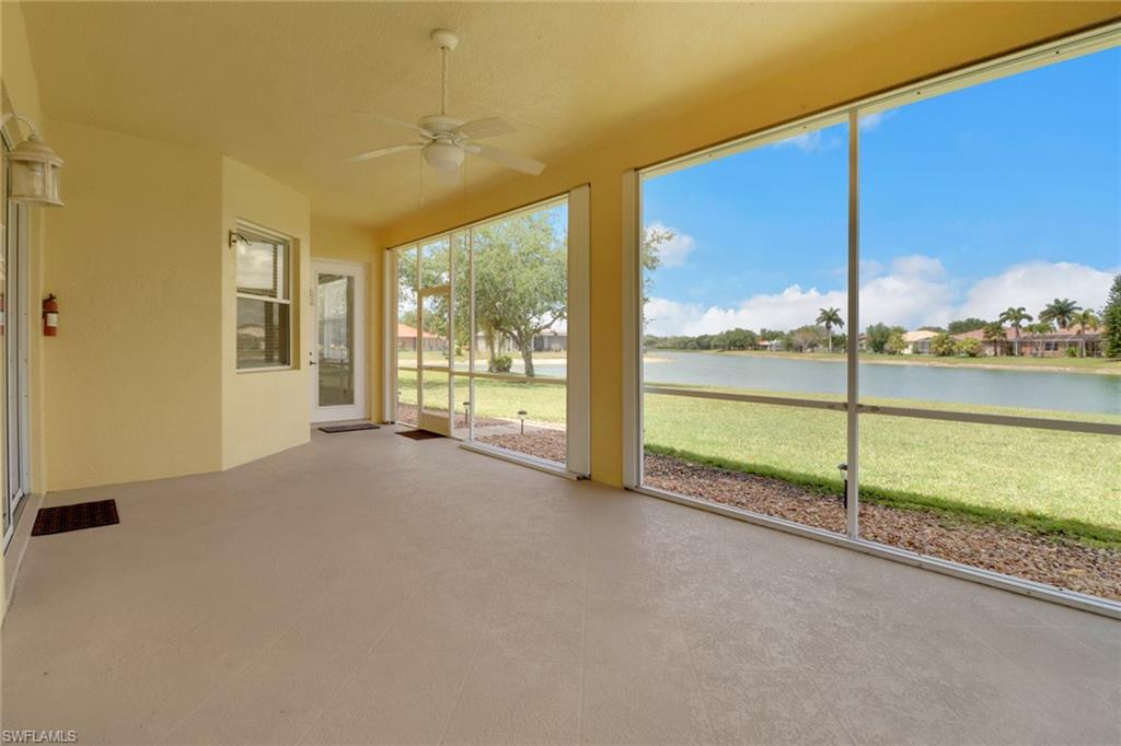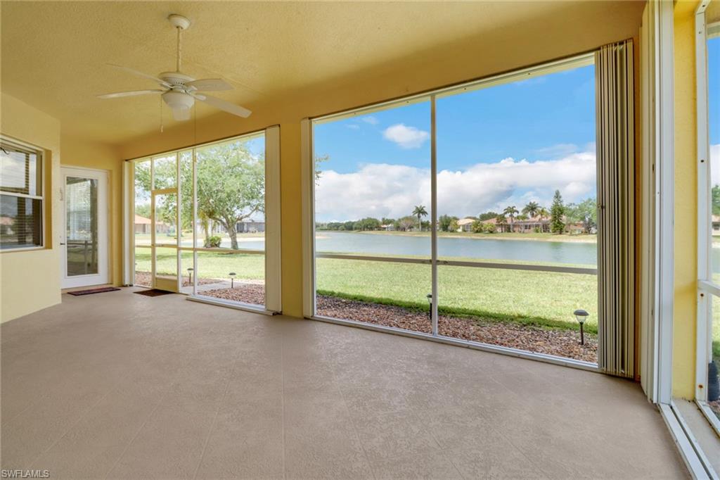Seller is motivated!! This beautiful lakefront home offers a serene and picturesque setting. Featuring tile flooring throughout the main living areas and laminate floors in the bedrooms, it blends style with low-maintenance living. The upgraded kitchen and master bath showcase premium finishes, while custom cabinets in the laundry room provide added functionality. Thoughtful touches like rounded corners, an intercom system, and pull-down attic stairs enhance comfort and convenience. The roof was redone in 2019, and the A/C unit was replaced in 2022, ensuring peace of mind and energy efficiency. Located on a quiet street, the home also features a spacious screened lanai—perfect for relaxing or entertaining. Immaculately maintained, with a lush green lawn that adds to its charm.