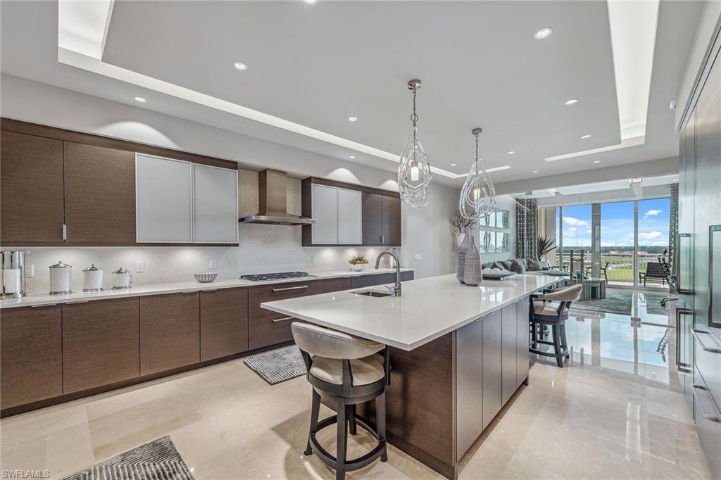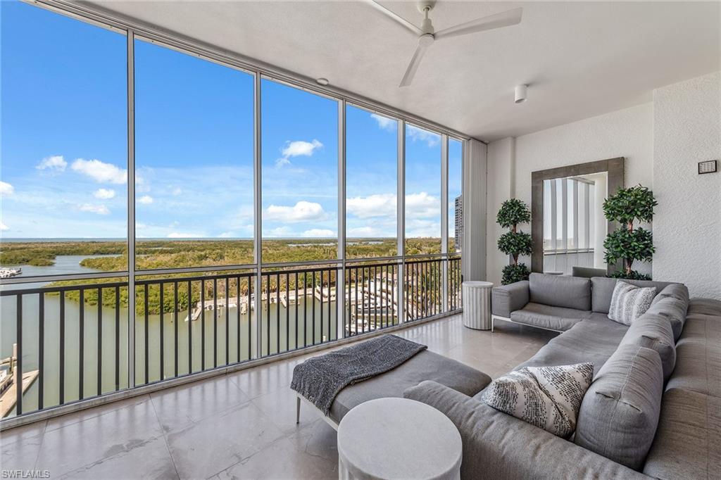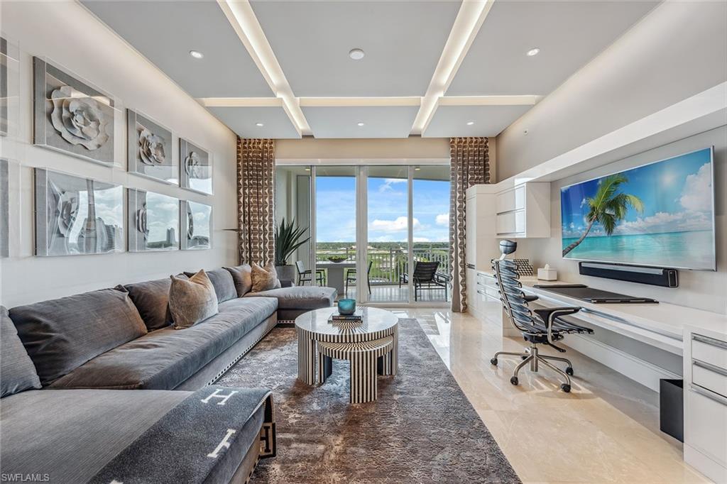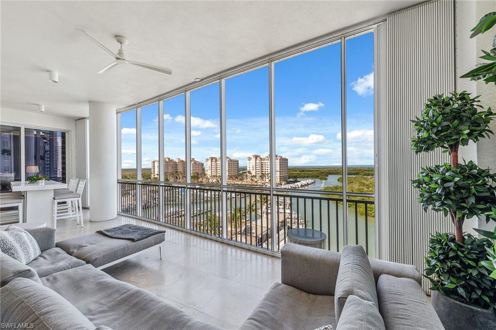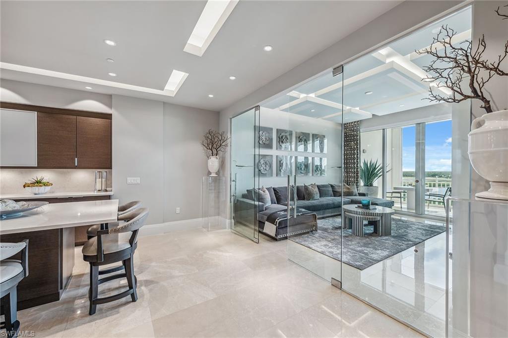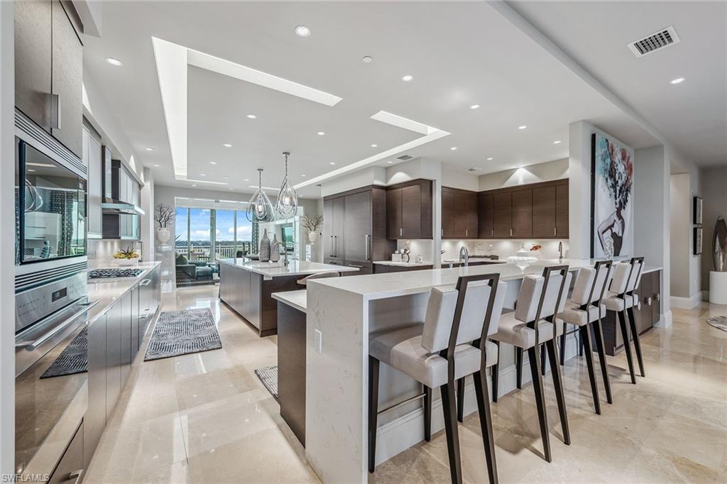 We are excited to introduce you to this exquisite residence in Aqua. This eighth-floor, three-bedroom plus den, 3 ½-half-bath, 3,940 square feet of luxurious living space has breathtaking views of the Gulf to the west and lush green views of the newly constructed Kinsale Golf Course to the east is unique in many ways. This Renee Gaddis meticulously designed residence offers an unparalleled level of luxury and elegance. No expense was spared in bringing in the finest design to afford comfort and sophistication. Enter from your private elevator and be ready to be impressed by the expanse and view of the Gulf and Wiggins Pass. The seamless flow of this residence reflects today's lifestyle. The designer spacious kitchen and wet bar has beautiful quartz countertops, top of the top-of-the-line appliances and can rightfully be called a chef’s delight. The thoughtfully designed primary suite has spectacular views of the Gulf and includes dual custom-designed closets, a spacious luxurious bath and access to the lanai. You will enjoy the privacy yet natural light of the glass-enclosed office/den offering ample space for relaxation or work. Two spacious guest bedrooms with en suites provide privacy and comfort for your family or friends. The terrace is an outdoor paradise where you can savor breathtaking sunsets, dine alfresco, or simply unwind while listening to the ocean. This home is dripping with style and finesse. Crafted with uncompromising attention to detail, this residence was designed for the most discerning tastes. Aqua is amenity-rich including on-site concierge service, library, two spacious social rooms for casual or elegant entertaining, fitness center, spa treatment rooms, steam and dry saunas, ninth-floor level sky lounge, dog runs, large pool and a private marina. You will not be disappointed!