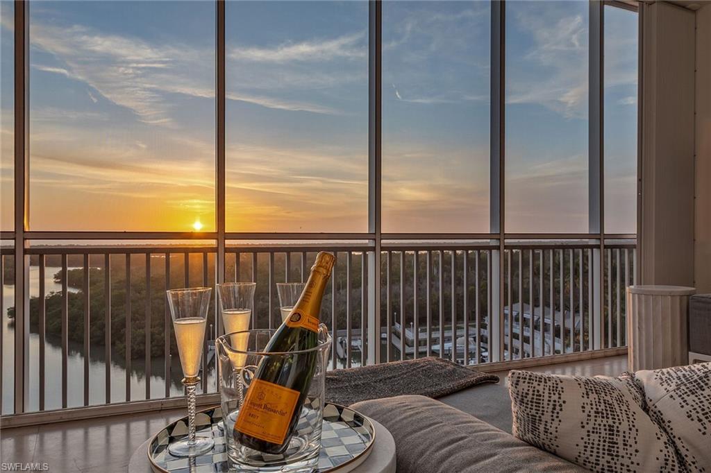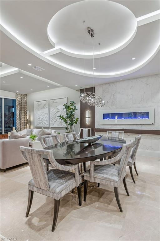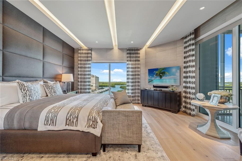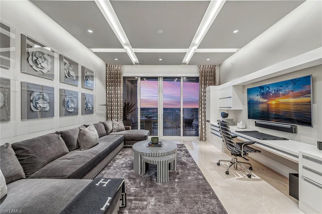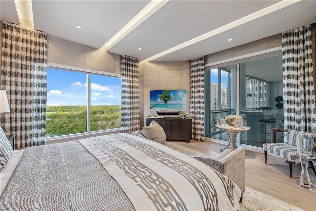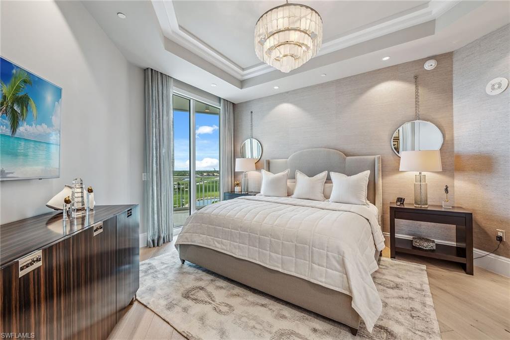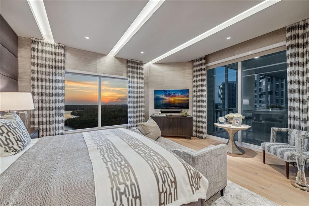 We are excited to introduce you to this exquisite residence in Aqua. This eighth-floor, three-bedroom plus den, 3 ½-half-bath, 3,940 square feet of luxurious living space has breathtaking views of the Gulf to the west and lush green views of the newly constructed Kinsale Golf Course to the east is unique in many ways. This Renee Gaddis meticulously designed residence offers an unparalleled level of luxury and elegance. No expense was spared in bringing in the finest design to afford comfort and sophistication. Enter from your private elevator and be ready to be impressed by the expanse and view of the Gulf and Wiggins Pass. The seamless flow of this residence reflects today's lifestyle. The designer spacious kitchen and wet bar has beautiful quartz countertops, top of the top-of-the-line appliances and can rightfully be called a chef’s delight. The thoughtfully designed primary suite has spectacular views of the Gulf and includes dual custom-designed closets, a spacious luxurious bath and access to the lanai. You will enjoy the privacy yet natural light of the glass-enclosed office/den offering ample space for relaxation or work. Two spacious guest bedrooms with en suites provide privacy and comfort for your family or friends. The terrace is an outdoor paradise where you can savor breathtaking sunsets, dine alfresco, or simply unwind while listening to the ocean. This home is dripping with style and finesse. Crafted with uncompromising attention to detail, this residence was designed for the most discerning tastes. Aqua is amenity-rich including on-site concierge service, library, two spacious social rooms for casual or elegant entertaining, fitness center, spa treatment rooms, steam and dry saunas, ninth-floor level sky lounge, dog runs, large pool and a private marina. You will not be disappointed!
