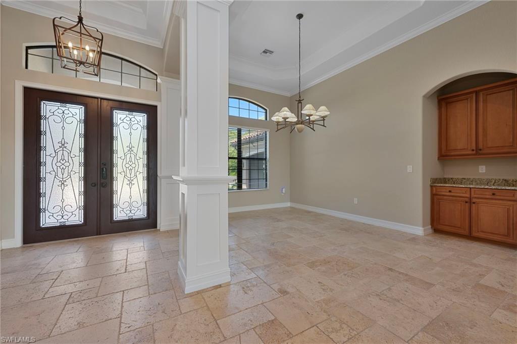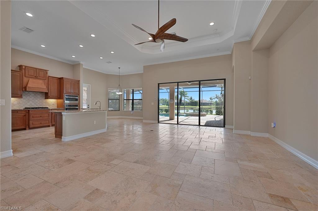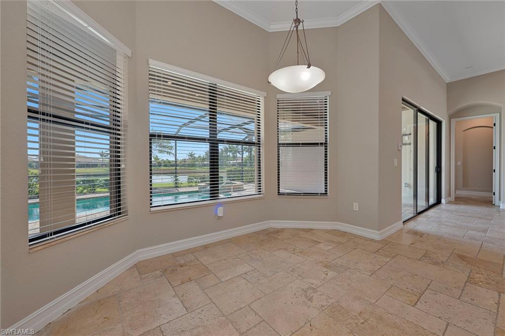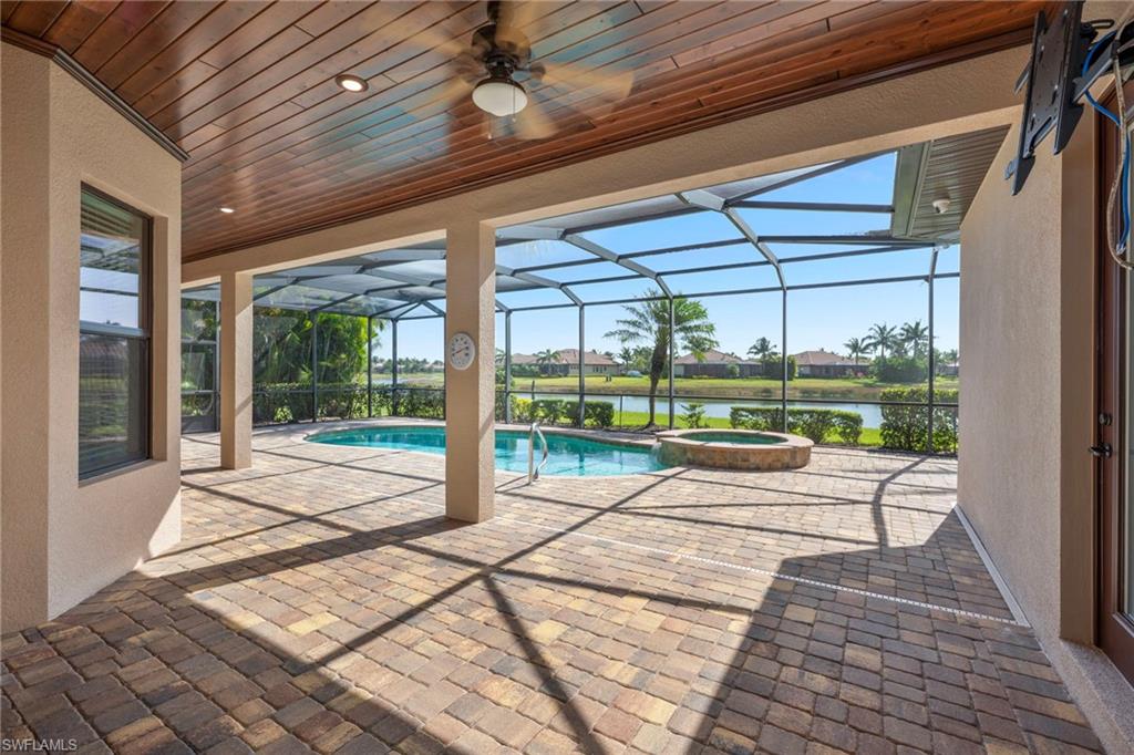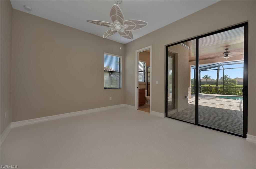 Motivated Seller, just made a HUGE $100,000.00 PRICE IMPROVEMENT! Presenting The Bougainvillea II located in prestigious Lagomar at Fiddler's Creek. Solid bones and an excellent foundation make it the perfect blank canvas to create the home of your dreams. Whether you envision modern updates or timeless charm, this property is brimming with possibilities. With an airy open-concept design, this spacious, freshly painted interior, 3 bedroom plus den, 3 bath home offers high coffered ceilings, crown molding, with an abundance of natural light. Neutral travertine flooring throughout, complemented by brand-new neutral carpets in the guest bedrooms. High-end stainless steel appliances, including a five-burner gas cooktop with a hood, wall oven, microwave, french door refrigerator and dishwasher, make meal prep effortless. A charming breakfast nook overlooks the pool and spa. The outdoor lakefront space boosts an extended lanai, oversized pool, and spa, pool bath, and built-in barbeque, ideal for hosting and relaxation. The owner's suite is a private retreat, offering hardwood flooring, lanai access, custom walk-in his and hers closets. The en-suite bath boasts a dual-sink vanity, bathtub and a walk-in shower. Two spacious guest bedrooms, each with an en-suite bath, provides privacy and comfort. A versatile den with a double-door entry is ideal as a private office or study. Fiddler's Creek offers resort-style amenities, including immediate golf membership to purchase at the Fiddler's Creek Golf and Country Club with 100% equity, fully refundable, pools, dining, a spa, fitness center and sports courts, with optional beach and marina memberships. Come experience timeless luxury just minutes from Marco Island and Naples 5th Avenue. Dream where you live at Fiddler's Creek!
