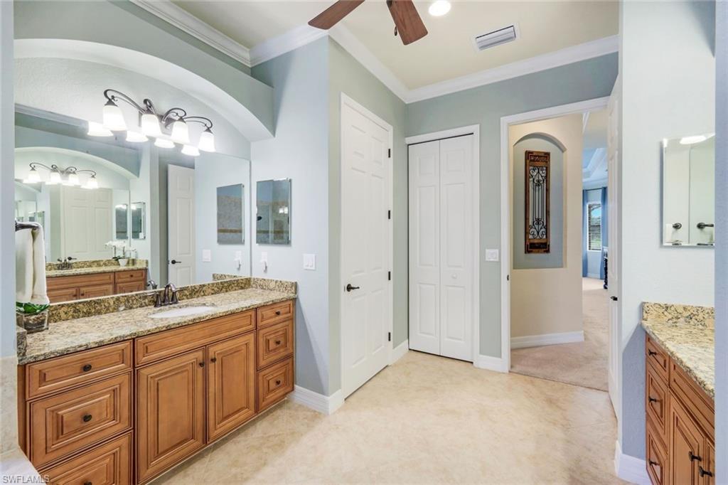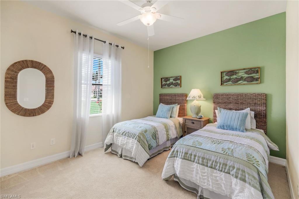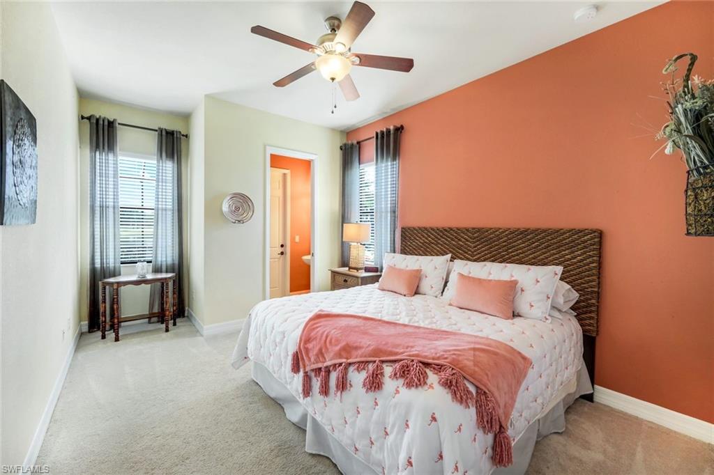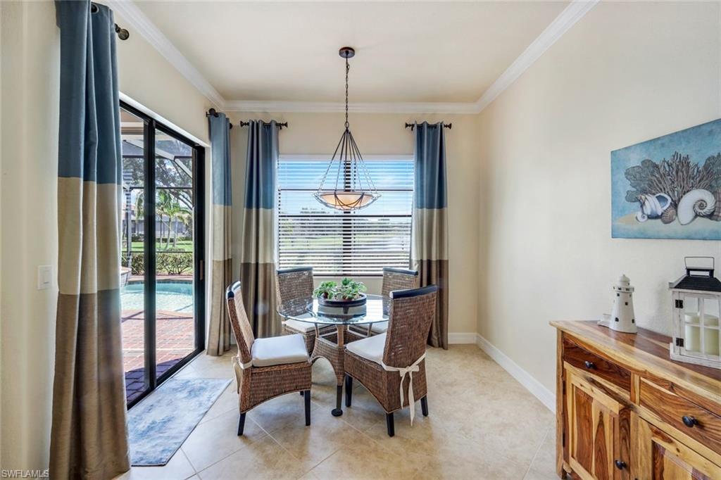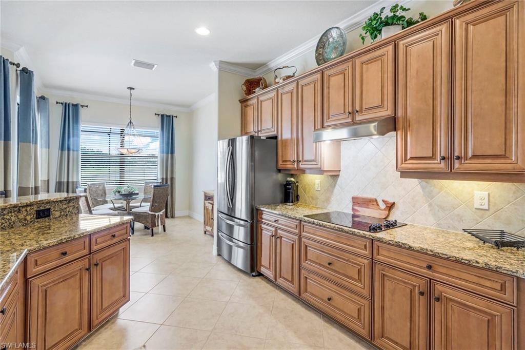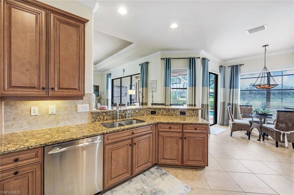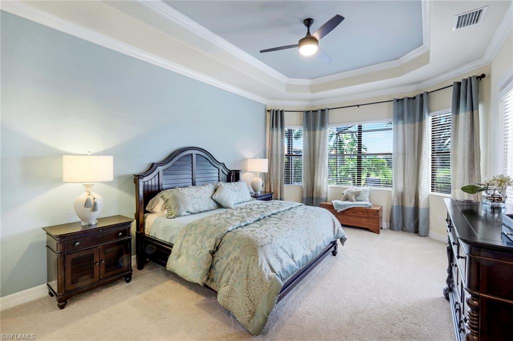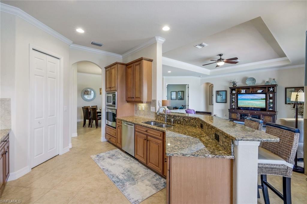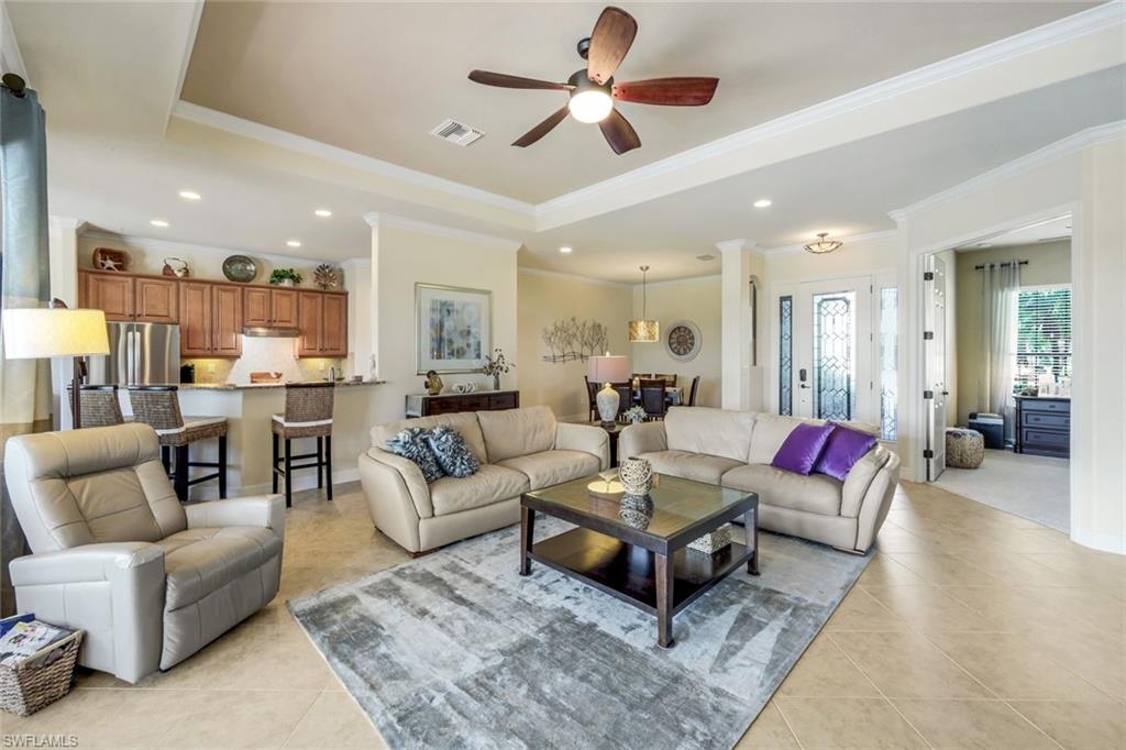 The Oakmont floor plan is one of the most desirable layouts in Copper Cove, featuring 4 bedrooms, 2.5 baths, and an expanded lanai with pool and spa overlooking serene lake views with ideal eastern exposure. Inside, the gourmet kitchen is equipped with upgraded stainless steel appliances, a wall oven, and a spacious pantry, while the laundry room offers convenience with an upgraded LG washer and dryer, utility sink, and upper cabinets for extra storage. Elegant details include tray ceilings in both the great room and primary suite. The 3-car garage is finished with epoxy floors and a second refrigerator, adding functionality and style. For peace of mind, the home is fitted with electric storm shutters on the lanai and front door, with manual shutters on all windows. Meticulously maintained inside and out, this furnished residence is move-in ready. Perfectly situated just a short drive to Marco Island and Downtown Naples, you’ll enjoy world-class beaches, boating, golf, dining, and entertainment right at your fingertips. This home is truly a must-see!