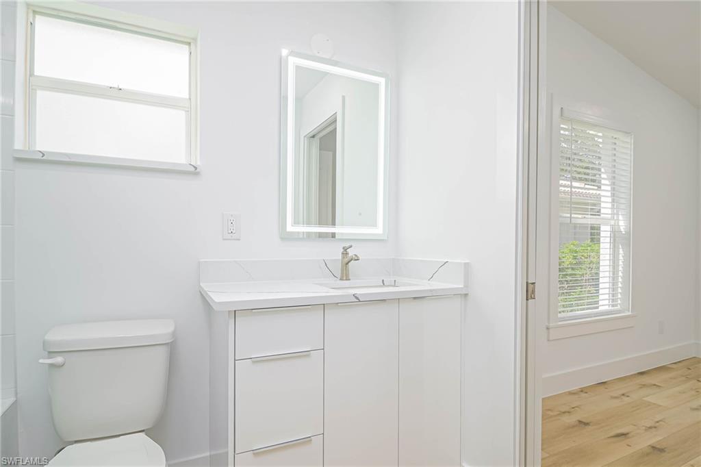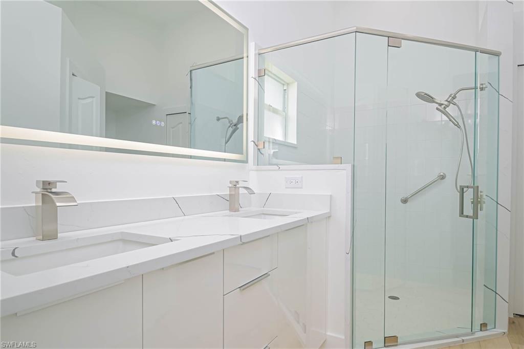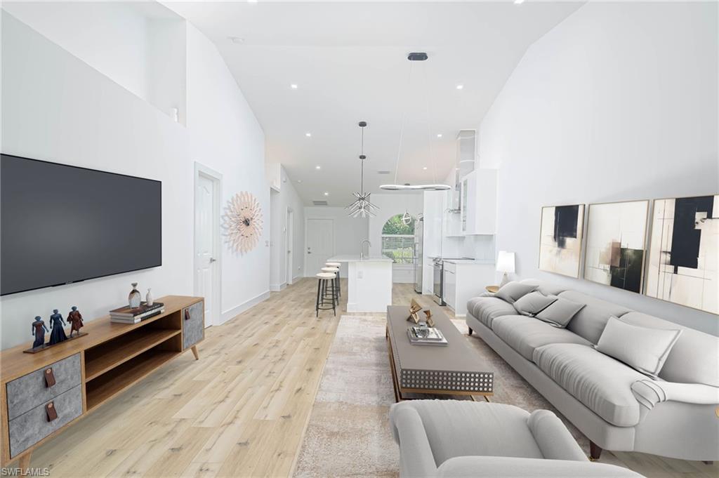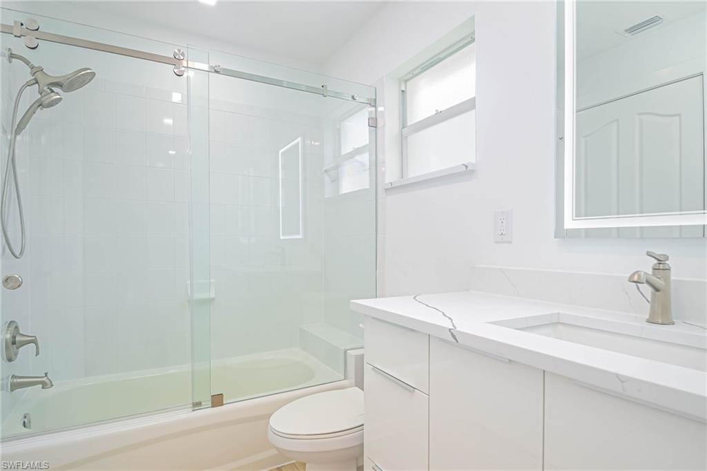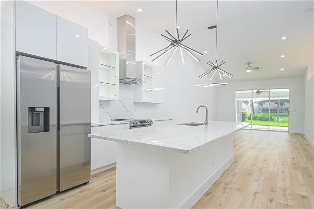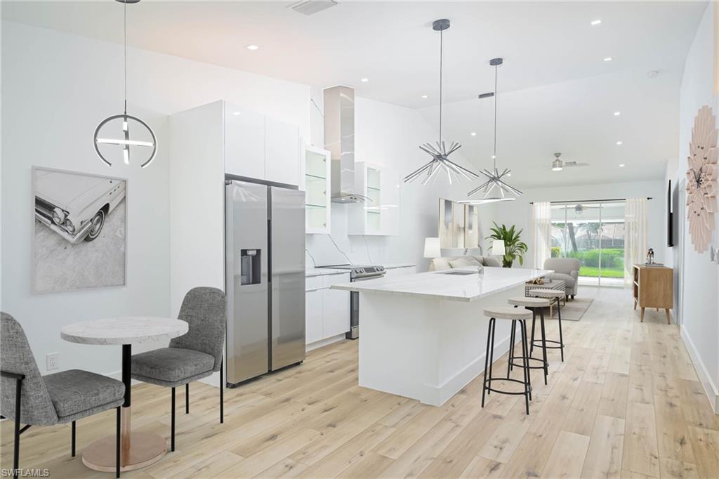 Welcome to this stunning 3-bedroom, 2-bathroom home in the sought-after Marker Lake Villas community. This remodeled villa boasts modern vinyl flooring, freshly painted walls, and a finished epoxy garage floor. The kitchen shines with beautiful quartz countertops and sleek stainless-steel appliances, perfect for cooking and entertaining. The main bedroom features an ensuite bathroom and a spacious walk-in closet for ultimate convenience. Step outside and enjoy the peaceful surroundings of this community. The scenic sidewalks are ideal for morning walks or evening bike rides. A short stroll or drive will take you to the community pool, a perfect spot to relax and unwind. Conveniently located just a 5-minute drive to Mercato, 1.5 miles from the Galleria Shoppes at Vanderbilt, and only a 7-minute drive to Naples' stunning beaches, this home offers both tranquility and easy access to some of the area's best attractions.