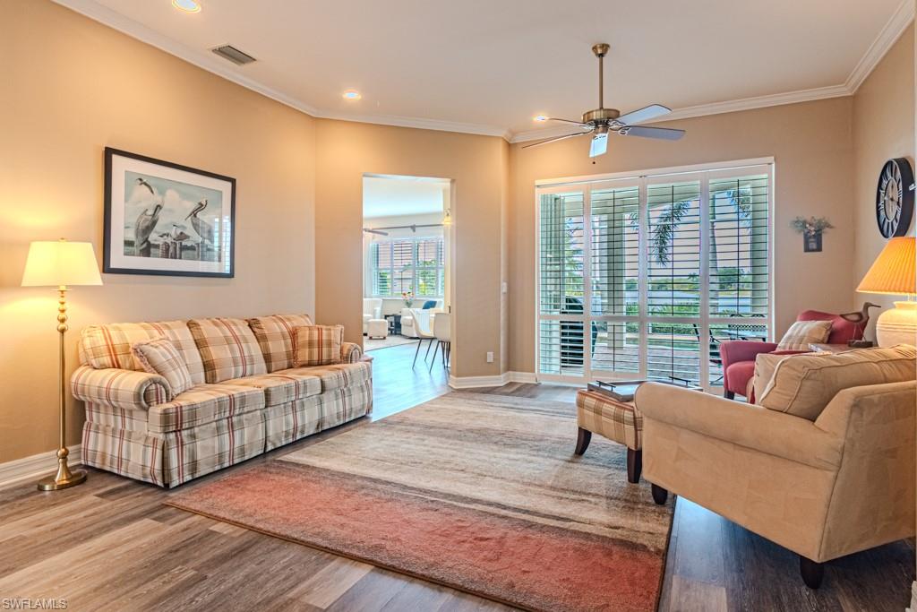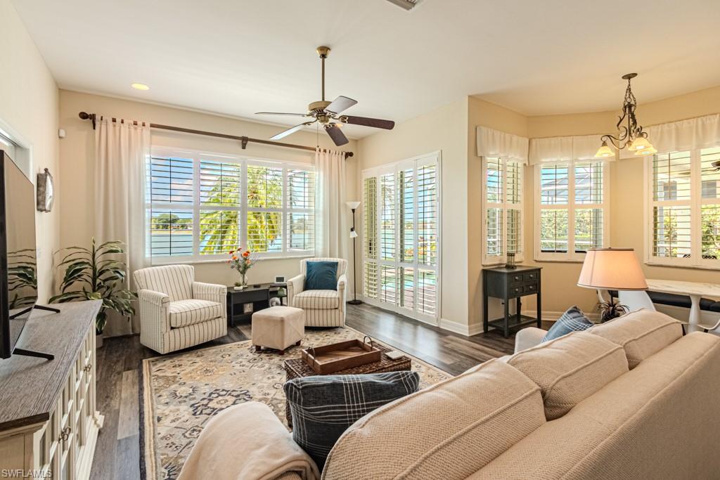 MOTIVATED SELLER! BRING AN OFFER! LAKE VIEWS AND SUNSETS like no other! Welcome to Waterways, a gated single family home community with low HOA fees and a large lake that allows for kayaking, canoeing, fishing, and small boats with electric motors. Boasting 4 bedrooms + den and 3 full baths, this home would be wonderful for retirees and young families alike. The primary bedroom and bathroom with tub and shower and separate den/office are located on one side of the house. There are 2 bedrooms that share a bath just off the dining room and kitchen. There is also a private suite, including a bedroom and bathroom with a pocket door just off the family room allowing complete privacy for guests or live-in in-laws. The large kitchen comes with an island and a very large pantry. There's also lots of covered space on the lanai out by the swimming pool. The beautiful landscaping, swimming pool and lakeview allow for many hours to be spent outside relaxing.