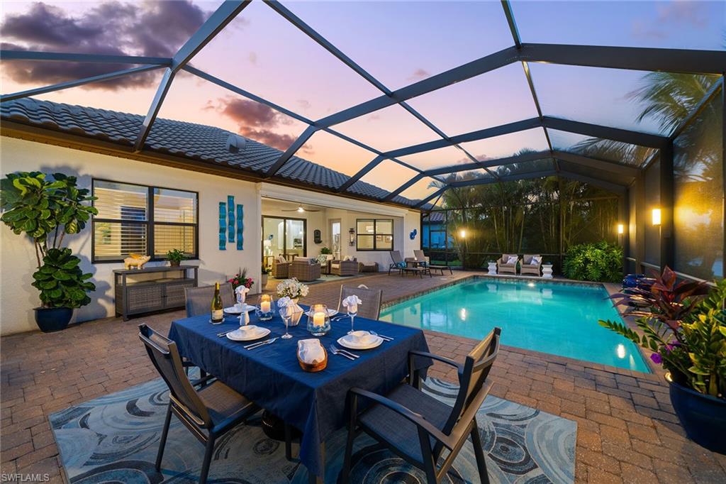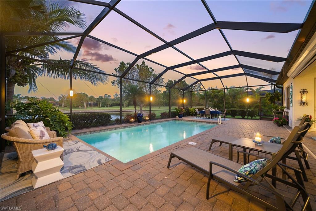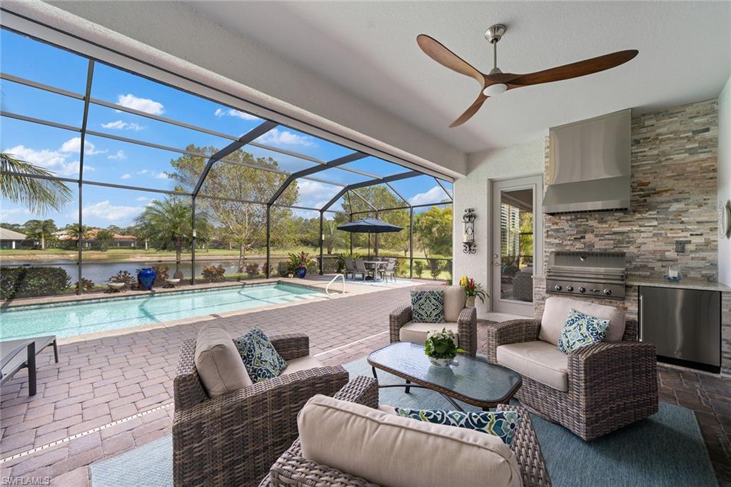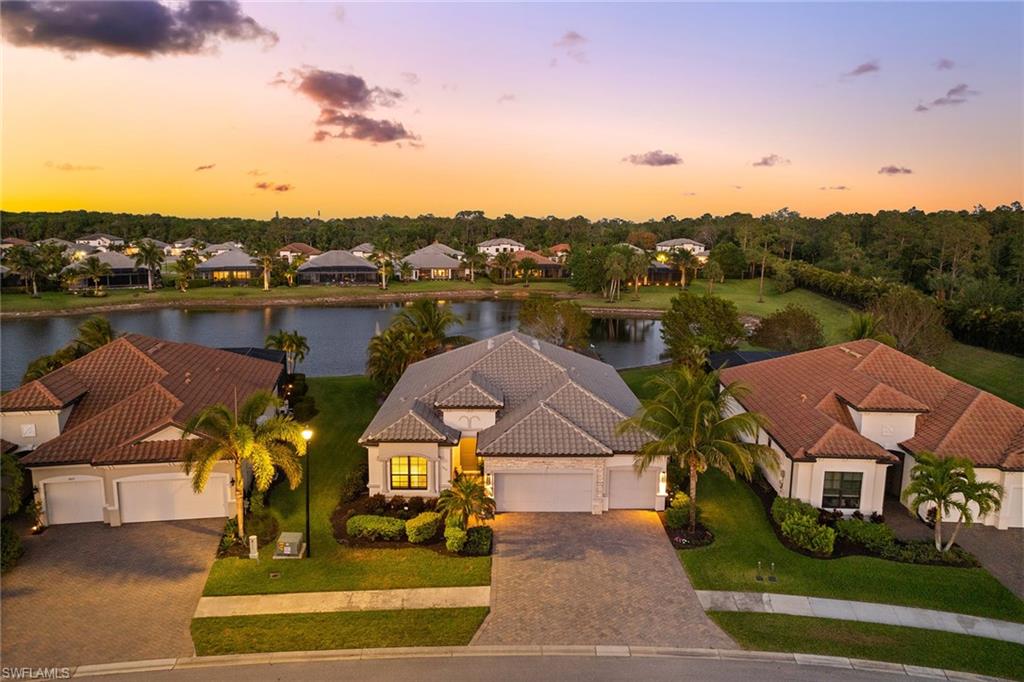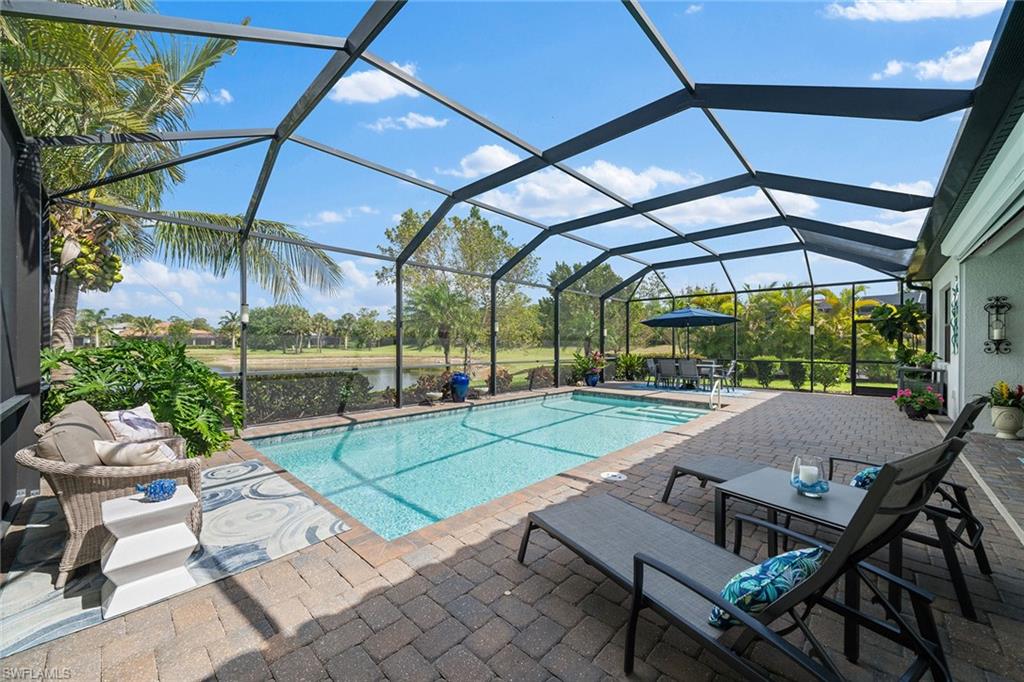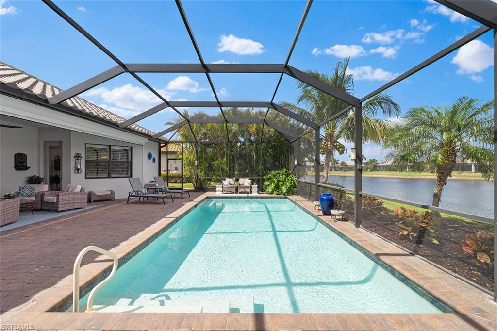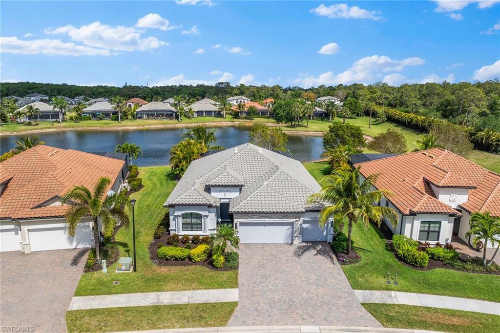 Located in the sought-after community of LaMorada, this four-bedroom, two-bath residence offers 2,229 square feet of refined living space. Positioned on a quiet cul-de-sac with peaceful lake views, the home features a highly desirable three-car garage. Designed in a Florida-inspired architectural style, the home showcases light, bright interiors and custom plantation shutters throughout. The open-concept layout flows seamlessly into the outdoor living area, complete with a sparkling pool and outdoor kitchen—perfect for entertaining or enjoying the Naples sunshine. LaMorada residents enjoy access to a suite of elevated amenities, including a resort-style pool, tennis and pickleball courts, fitness center, movie theater, and an on-site restaurant. Conveniently located near Logan Landings, Founders Square, Mercato, and area beaches such as Vanderbilt Beach and Wiggins Pass State Park, this home offers a blend of gated privacy and vibrant, resort-style living.