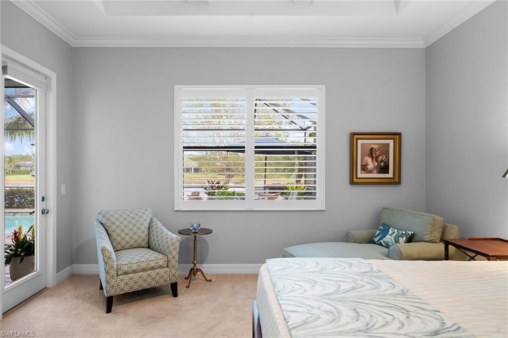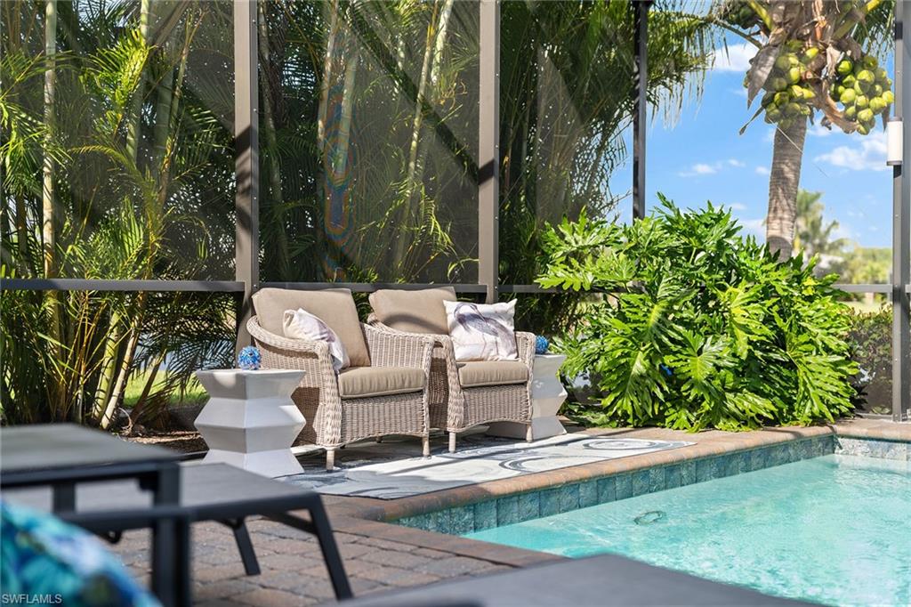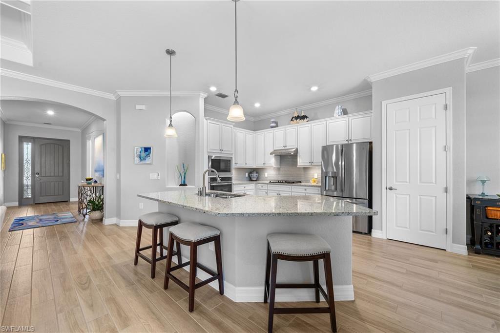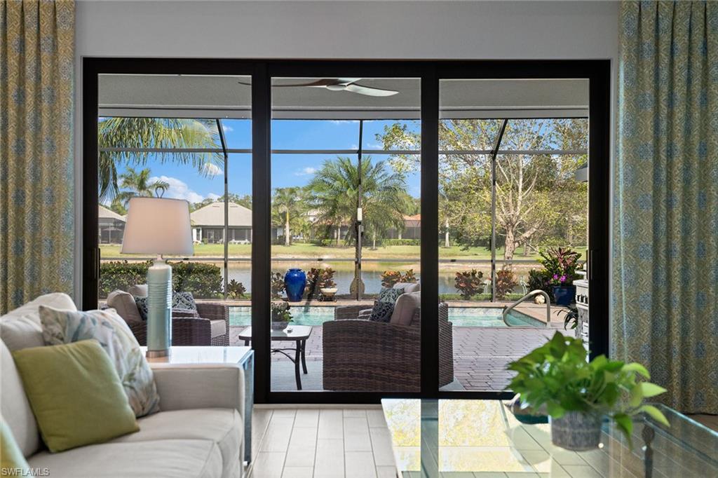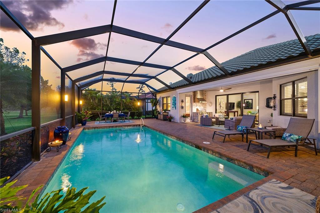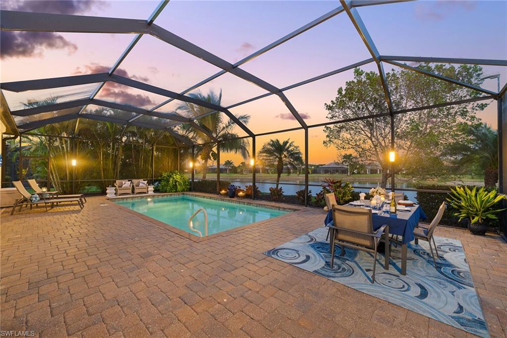 Located in the sought-after community of LaMorada, this four-bedroom, two-bath residence offers 2,229 square feet of refined living space. Positioned on a quiet cul-de-sac with peaceful lake views, the home features a highly desirable three-car garage. Designed in a Florida-inspired architectural style, the home showcases light, bright interiors and custom plantation shutters throughout. The open-concept layout flows seamlessly into the outdoor living area, complete with a sparkling pool and outdoor kitchen—perfect for entertaining or enjoying the Naples sunshine. LaMorada residents enjoy access to a suite of elevated amenities, including a resort-style pool, tennis and pickleball courts, fitness center, movie theater, and an on-site restaurant. Conveniently located near Logan Landings, Founders Square, Mercato, and area beaches such as Vanderbilt Beach and Wiggins Pass State Park, this home offers a blend of gated privacy and vibrant, resort-style living.
