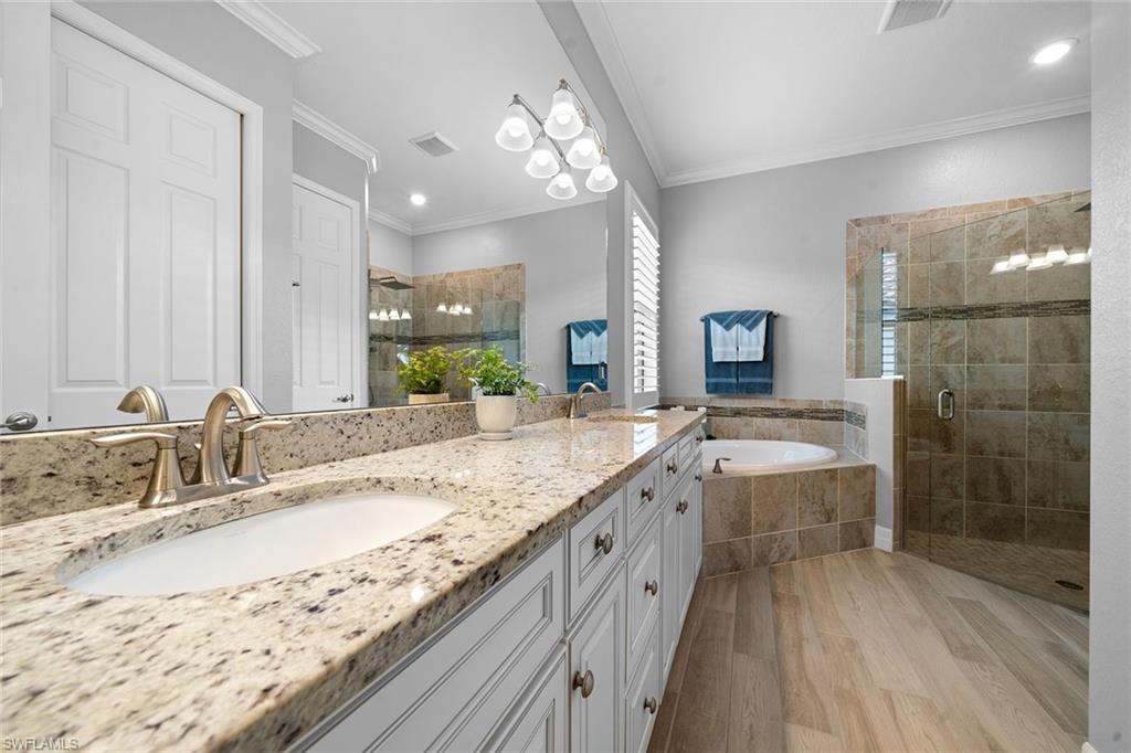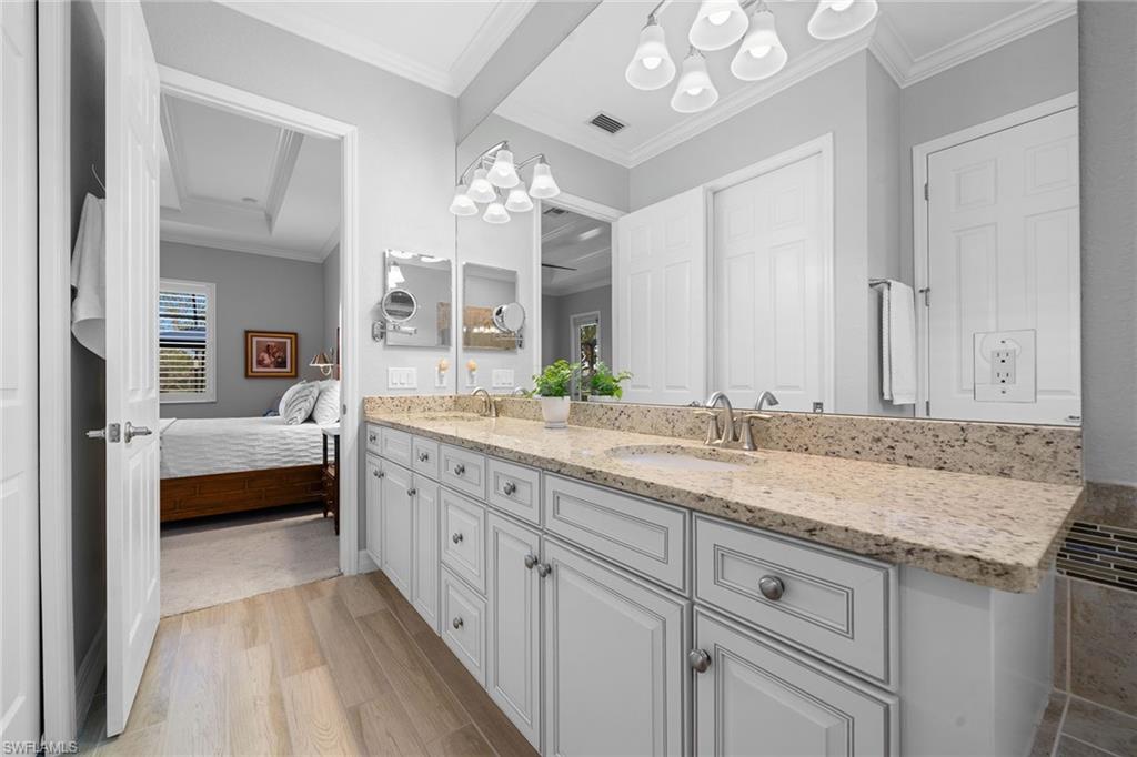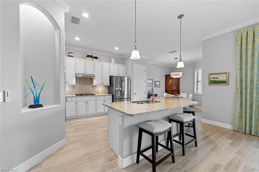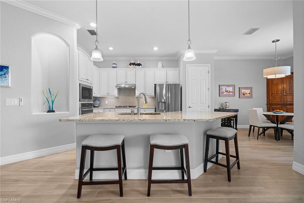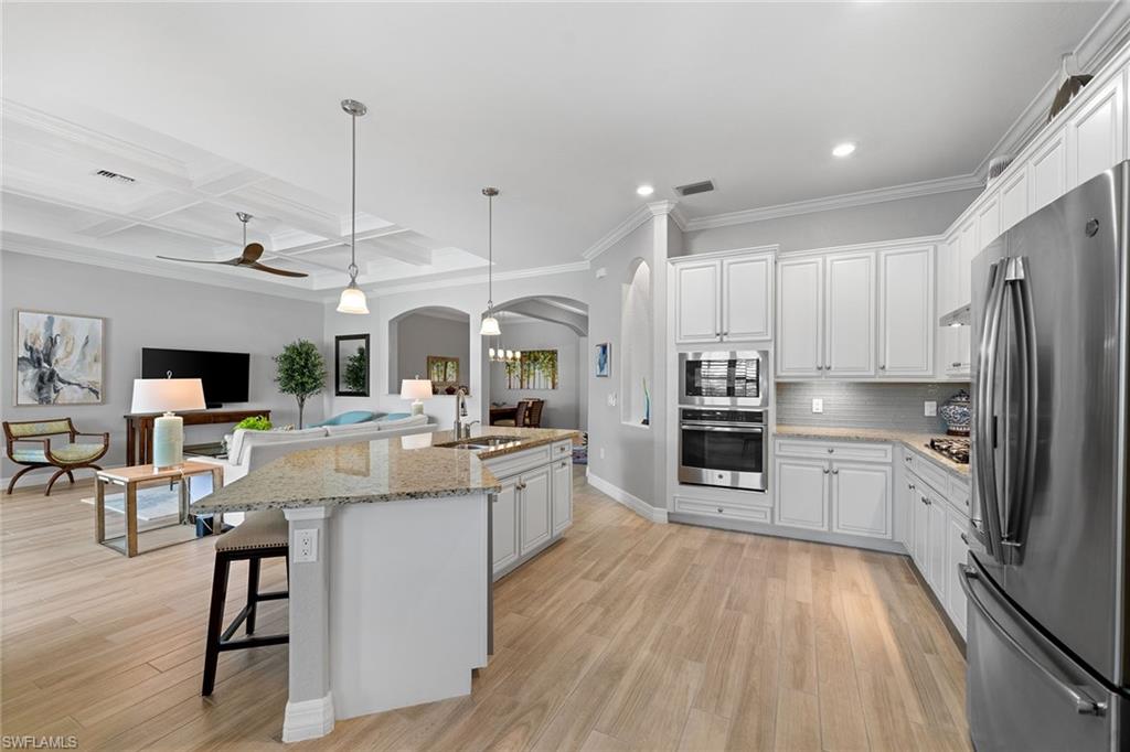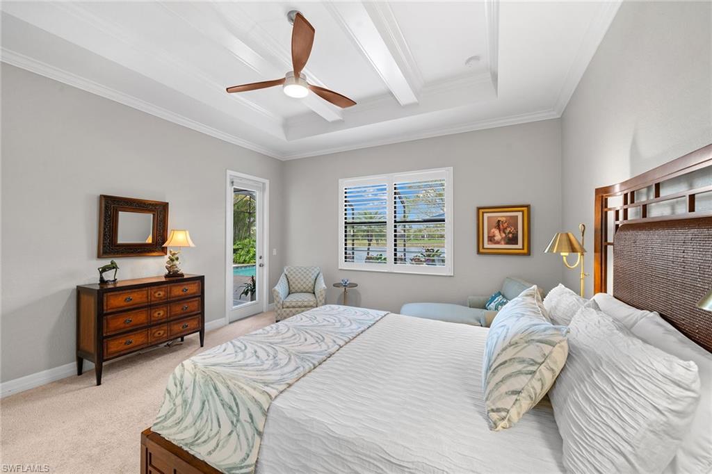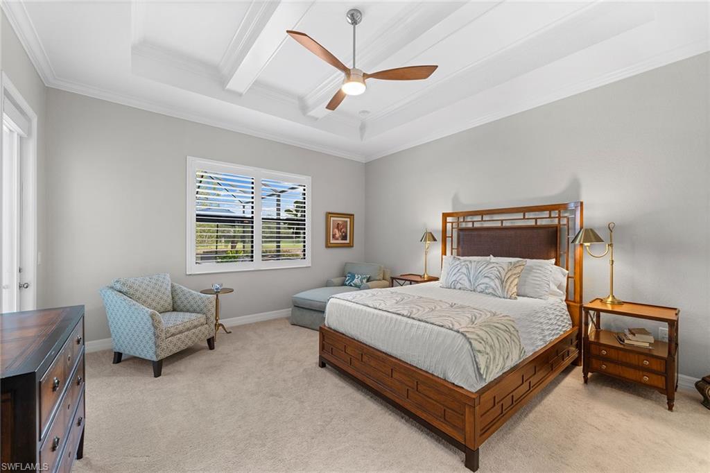 Located in the sought-after community of LaMorada, this four-bedroom, two-bath residence offers 2,229 square feet of refined living space. Positioned on a quiet cul-de-sac with peaceful lake views, the home features a highly desirable three-car garage. Designed in a Florida-inspired architectural style, the home showcases light, bright interiors and custom plantation shutters throughout. The open-concept layout flows seamlessly into the outdoor living area, complete with a sparkling pool and outdoor kitchen—perfect for entertaining or enjoying the Naples sunshine. LaMorada residents enjoy access to a suite of elevated amenities, including a resort-style pool, tennis and pickleball courts, fitness center, movie theater, and an on-site restaurant. Conveniently located near Logan Landings, Founders Square, Mercato, and area beaches such as Vanderbilt Beach and Wiggins Pass State Park, this home offers a blend of gated privacy and vibrant, resort-style living.