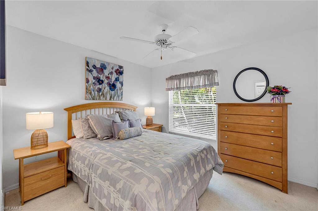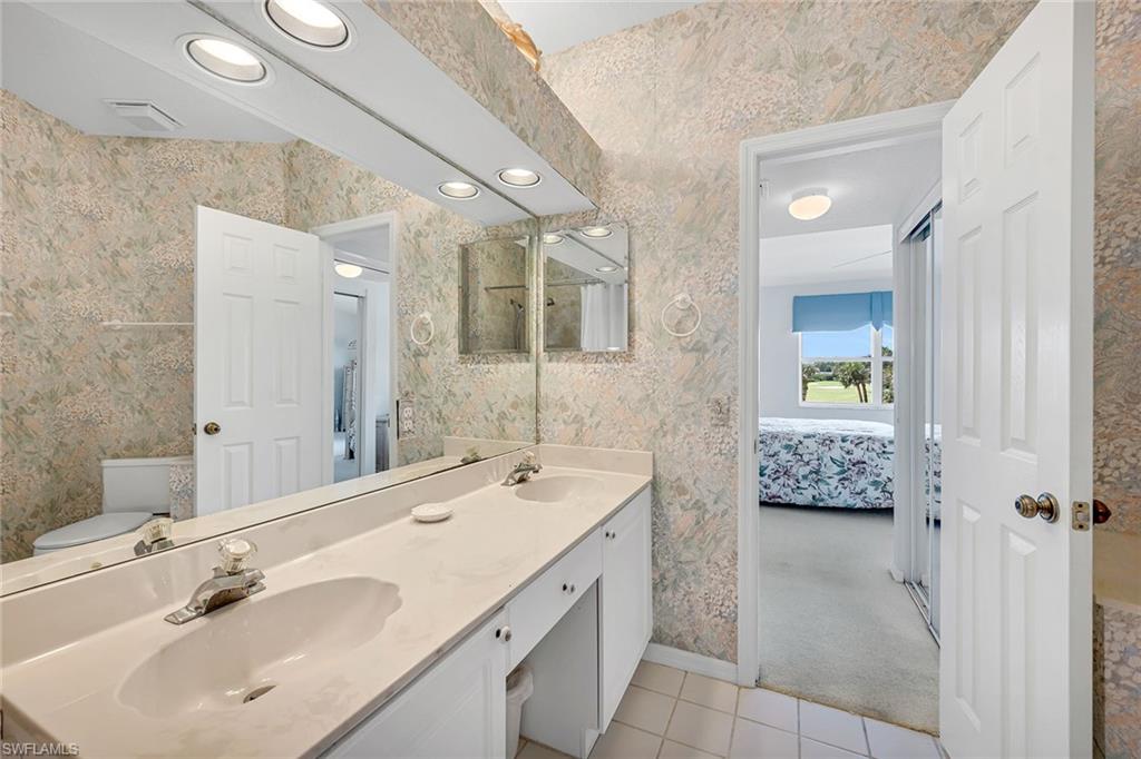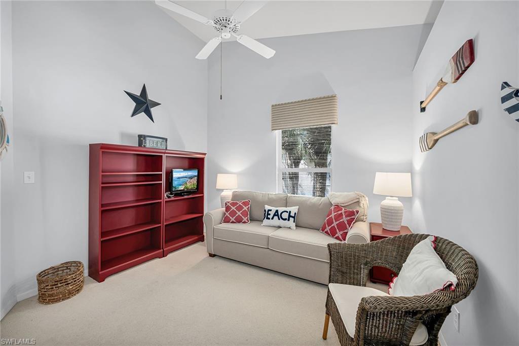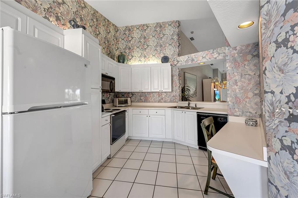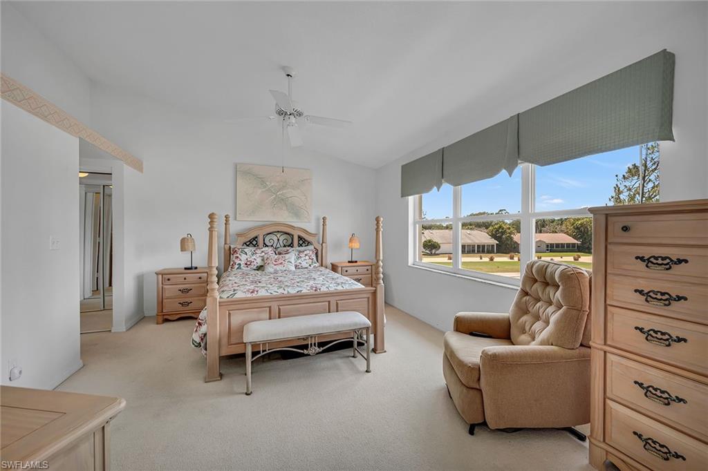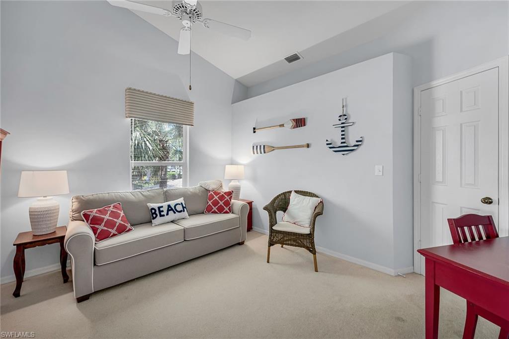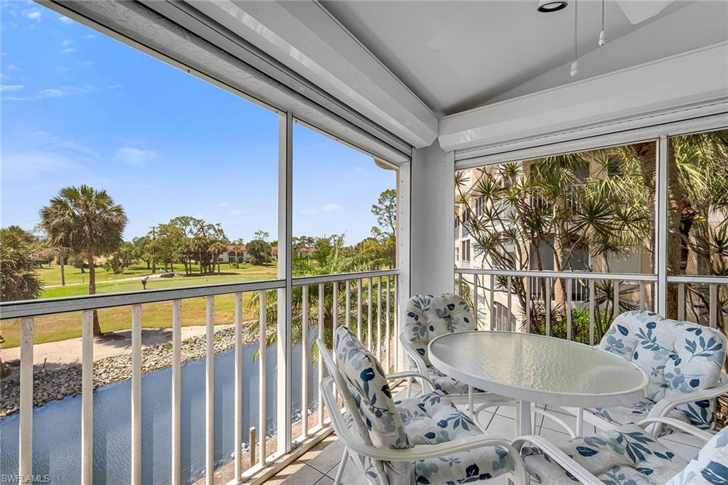 Motivated seller! Have you been dreaming of a tranquil condominium with wide lake and golf course views, western exposure and a location that keeps you close to everything Naples has to offer? This light-filled, second-floor corner residence in Fairways at Emerald Greens offers stunning sunset vistas and peaceful privacy in a beautifully maintained setting, just minutes from the beach, dining and shopping. Offering two bedrooms plus a den and two baths, the residence features vaulted ceilings and a flowing layout. The kitchen is charming and functional, with tile flooring, white shaker-style cabinetry, a built-in desk, above-cabinet lighting, and a pass-through window to the formal dining and living area. Appliances include a refrigerator/freezer, range, microwave and dishwasher. The primary suite is bright and airy, with a large window framing golf course views, mirrored closets, a ceiling fan and direct access to the screened lanai. The en-suite bath includes a dual-sink vanity with makeup counter, a full-width mirror and a shower-tub combination. A well-appointed guest bedroom sits next to a bath with a walk-in shower and glass enclosure. The den with pocket sliders provides flexibility as an office, study or optional third bedroom. The laundry room includes white cabinetry, a washer and dryer. The tiled lanai offers ceiling fans, electric hurricane shutters, and breathtaking lake and golf course views, ideal for relaxing or entertaining. Residents enjoy access to tennis and pickleball courts, a resort-style pool, spa and clubhouse. Golf membership is not required, residents can pay to play. Set in a quiet, tucked away neighborhood, yet just three miles to the beach and close to Old Naples, Waterside Shops, Venetian Village, Mercato, Lowdermilk Park and Naples Bay. Essential conveniences like Costco, Target, Aldi and more are just around the corner. Whether you're seeking a seasonal escape, full-time residence or investment opportunity, this move-in-ready home checks every box. Schedule your private showing today.