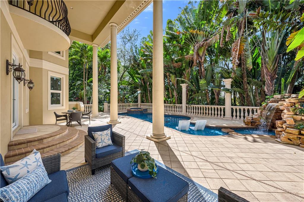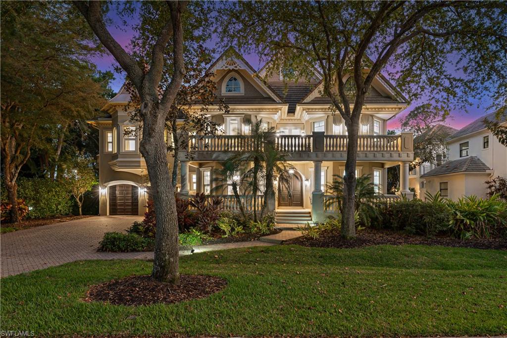 Nestled within the pristine gated enclave, Hemingway Place, in Naples, this stunning 4-bedroom with a den, 5-bathroom gem is more than a home—it’s a lifestyle. From the moment you step through the door, you’re greeted by travertine floors, a wrap around staircase, turrets, multiple balconies, a private elevator, and a large welcoming front porch, setting the tone for the elegance that awaits. The Victorian architecture blends modern comfort with timeless charm, perfect for cozy nights in or hosting unforgettable gatherings. The chef-inspired kitchen boasts KitchenAid stainless steel appliances and a sprawling island, ready to ignite your culinary creativity. Retreat to the primary suite, a serene haven featuring a spacious private upper deck, where relaxation becomes an art form. Outside, the highly desired southern exposure features a paver stone deck, pool, spa, and rock waterfall, beckoning for morning coffees or sunset soirées. Located just minutes from famous white sugar sand Naples Beaches, Waterside Shops, Venetian Village dining and shopping, Mercato, and stunning downtown Naples. This home offers the perfect balance of convenience and escape.