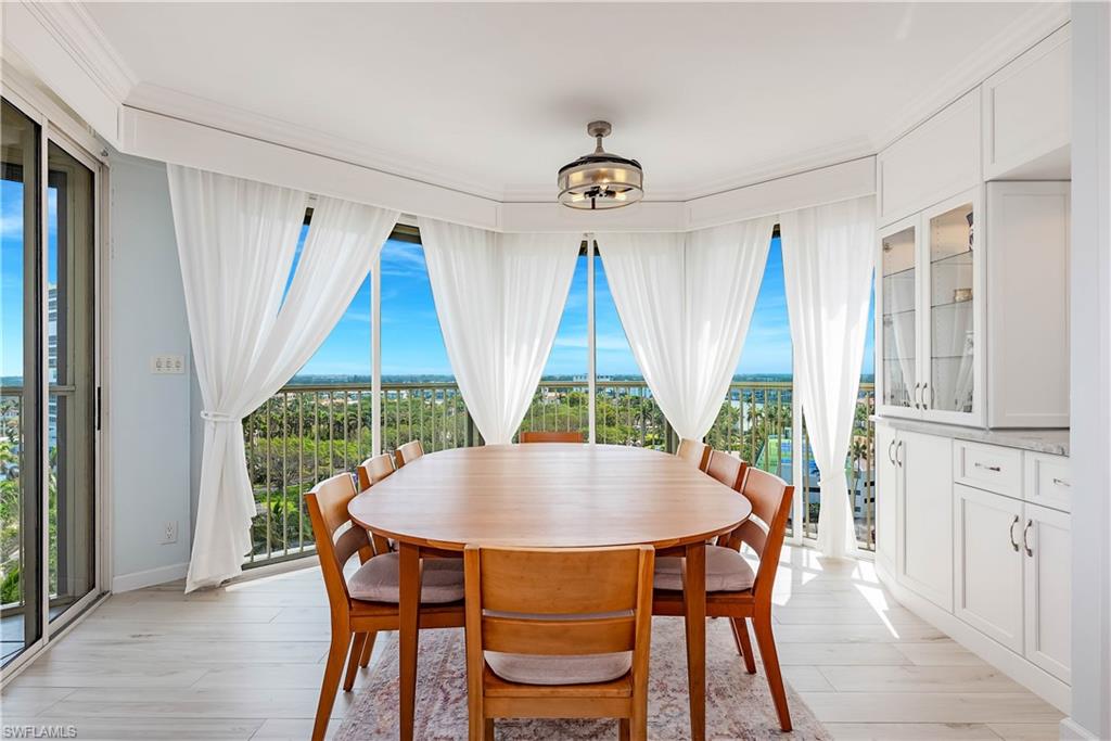 Reduced for a limited time to accommodate Seller's 1031 Exchange. Immerse yourself in the prestigious beachfront lifestyle of Park Shore at the upscale La Mer tower. This beautifully maintained and tastefully updated 10th-floor residence offers 2,226 square feet of living space, featuring two bedrooms and two bathrooms with expansive views of the Gulf reaching all the way to Sanibel Island, and pristine white sand beaches. Floor-to-ceiling windows on three sides and a large, screened lanai flood the interior with natural light, offering breathtaking panoramas from sunrise to sunset. The well-designed floor plan includes a spacious primary suite with abundant closet space, a separate breakfast nook off the kitchen, and a wet bar ideal for entertaining. Additional features include electric hurricane shutters and partial impact glass for peace of mind and a deeded parking space. La Mer is one of Park Shore’s premier buildings, offering a guard-gated entry, on-site management, 24-hour security, a resort-style pool and spa, a fitness room, and available guest suites. Residents enjoy access to the private Park Shore Beach promenade and the option to lease or purchase a boat slip at the Venetian Bay Yacht Club. Ideally located just across from the renowned shopping and dining of Venetian Village and a short drive to the vibrant cultural experiences of Fifth Avenue South, Third Street South, Waterside Shops, and Mercato, La Mer offers effortless access to the very best of Naples' world-class lifestyle.