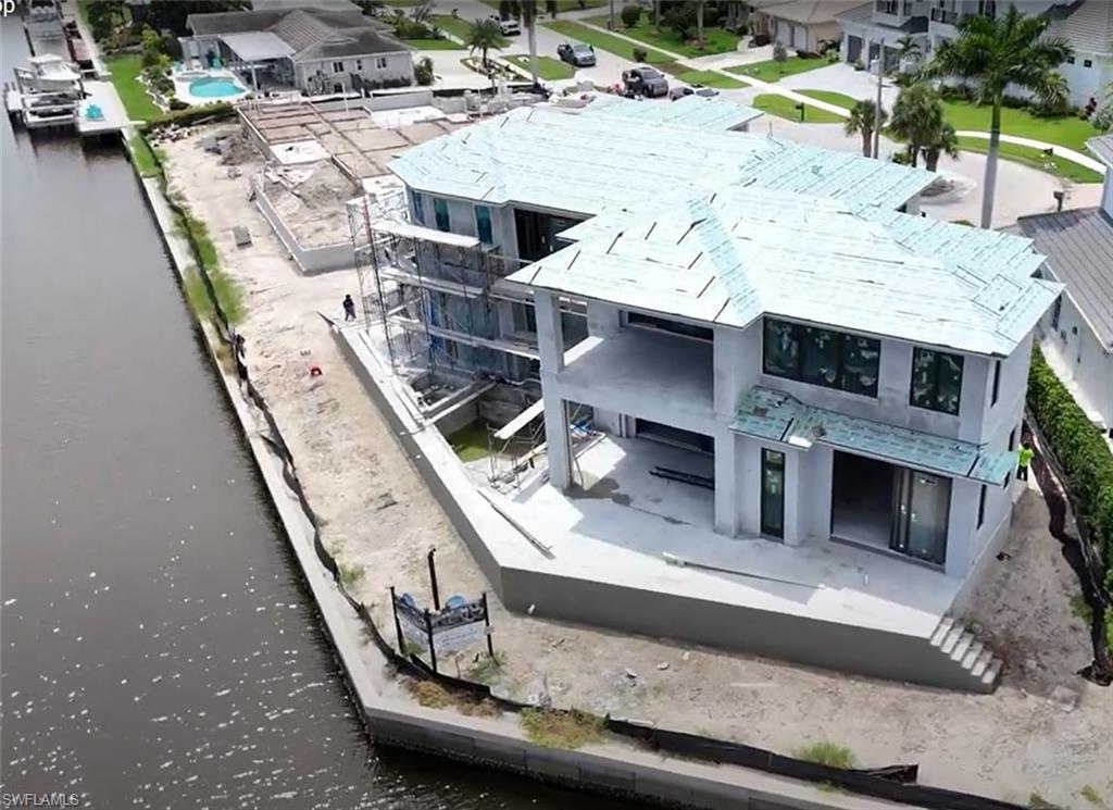 Impressive, custom-built home by The Lykos Group, Inc. situated on the very few key lots left in Marco Island with stunning views and direct access (no bridges) just minutes by boat to the Gulf of America, Isle of Capri, Marco Island Yacht Club, World Famous Snook Inn. Over 170 feet of river frontage, serene paradise with an abundance of bird watching, wildlife, dolphins, manatees and crystal clear water views An amazing 6,230-square-foot estate home featuring five bedrooms, club room, loft, home office/exercise room, three car garage with an option of adding two car lifts, private elevator, whole home generator, 500 gallon propane tank, featuring a second floor balcony rain-curtain waterfall into the resort style pool, exquisite materials and ceiling details are just some of the features to be found in this beautiful custom home. Ready for you to begin your dream of waterfront living Spring of 2026. Renderings are labeled.