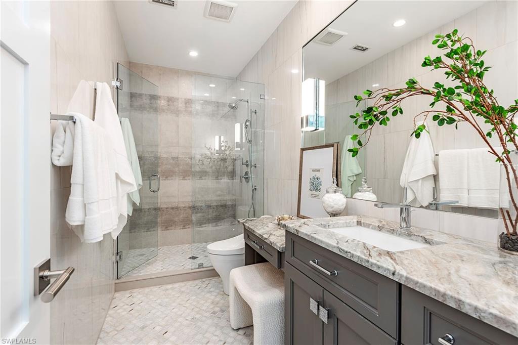 Tropical ambiance is abundant in this one-of-a-kind, completely renovated home in the heart of the prestigious beachfront community of Pelican Bay. Design selections curated by Collins DuPont effortlessly blend timeless Floridian charm with modern luxury. Step outside to your private oasis, where an expansive pool area, surrounded by lush landscaping, creates a backdrop for relaxation and entertaining - Complete with an outdoor kitchen and a spacious covered living area, inclusive of remote-controlled retractable screens. Light-filled and breezy, the home features all new high-impact glass, a chef's kitchen with Thermador appliances and a Sonos sound system throughout. The generously sized lot, private fenced yard and mature landscaping, along with secluded outdoor sitting areas, all enhance the feeling of privacy. Pelican Bay offers resort-style amenities with private access to three miles of white-sand beaches, sailing, kayaking, beachfront dining, a robust tennis program, a state-of-the-art fitness center, as well as recreational trails and parks across 88 acres of nature preserve.