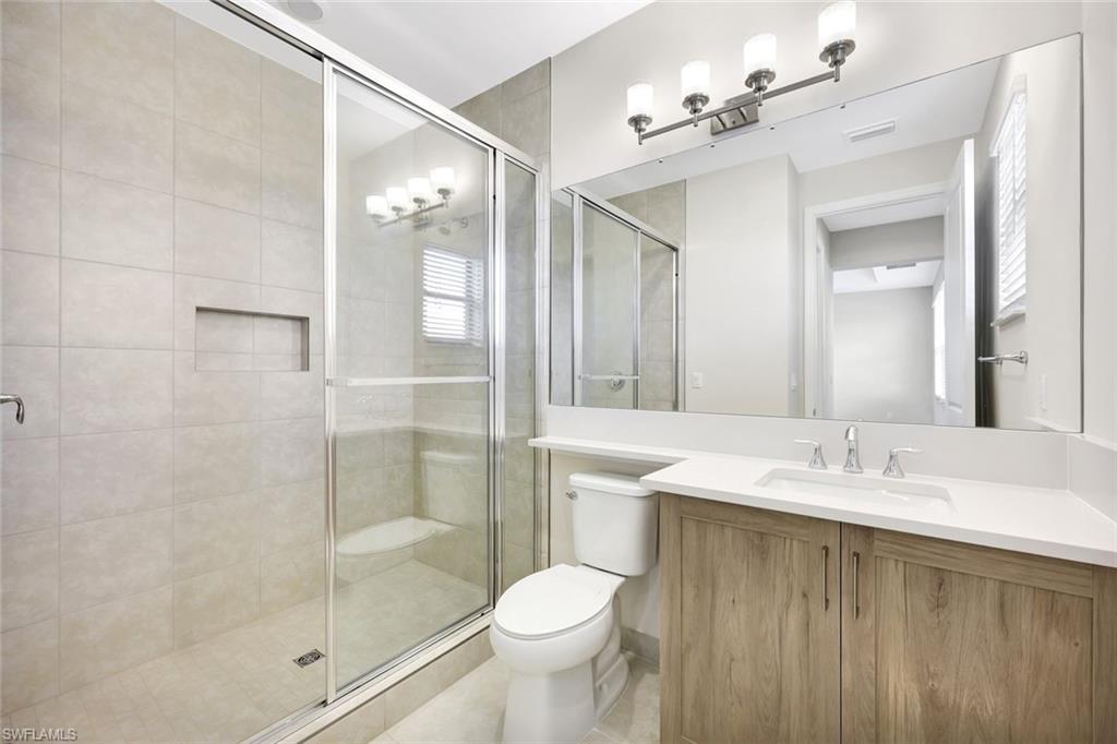 New construction ready for immediate delivery! This "Cascade" home with Lake View offers Impact Resistant Windows throughout and has 5 Bedrooms plus a Loft, 7 Baths, and a 2-Car Garage, an open kitchen with stainless steel GE Appliances including Gas Cooktop and Quartz Countertops. The master bedroom offers a coffered ceiling, spacious closets and a master bath with separate shower and tub. Other features include: Glass Entry Door, 24 x 24 Tile in Main areas, Wood flooring in Loft, extended width of driveway and more! RiverCreek is Estero’s hottest new gated community and features numerous amenities for everyone including a 12,000 square foot Clubhouse with Resort–style pool, event room, fitness center, indoor sports court, tennis, pickleball, basketball and more!