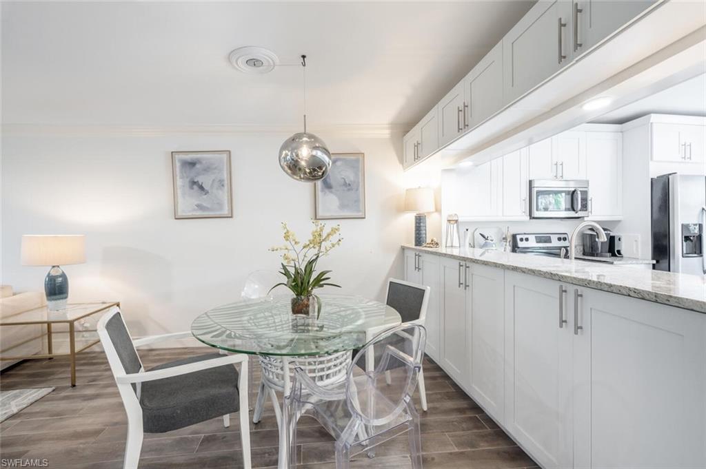 Dreaming of a life close to the iconic and vibrant DOWNTOWN NAPLES and its stunning BEACHES? Imagine stepping onto your boat at any time at your very own DEEDED BOAT DOCK, just steps from your beautifully RENOVATED, waterfront home in a building untouched by flooding. Your dream awaits at Naples Sandpiper Bay Club, Unit #K103! This turnkey, fully renovated first-floor condo features 2 spacious bedrooms and 2 modern bathrooms. Enjoy peaceful, scenic views of a lush natural preserve right from your living space and your screened covered lanai, while being mere steps away from the inviting community pool and clubhouse. Inside, the elegantly updated kitchen boasts stylish cabinetry, stainless steel appliances, and an open layout perfect for entertaining. Durable and sophisticated wood-tile flooring flows seamlessly throughout the entire home, complemented by fresh paint and newly installed ceiling fans and toilets. The primary bedroom offers an exceptionally spacious closet, while additional storage in the laundry room ensures practicality meets luxury. The home is offered turnkey furnished, you only need to bring your personal items. Nestled within 13 acres of lush landscape along Haldeman Creek, this charming waterfront community provides direct Gulf access with no bridges . Delight in picturesque views as you navigate through Royal Harbor neighborhoods from Naples Bay directly to your PERSONAL BOAT DOCK SPACE which this unit has! Rest easy knowing your home is situated in a community that had residences untouched by stormwater and flooding. With proactive onsite management, residents enjoy a vibrant social calendar filled with engaging activities. There are 2 heated community pools to relax at, outdoor grills and picnic areas and walking trails! Embrace the Naples lifestyle to the fullest, situated minutes from Naples Pickleball Center, the enchanting Naples Botanical Garden, charming Old Naples, and a wealth of renowned restaurants and boutique shops. Best of all, pristine Gulf beaches are only 1.5 miles away by land, while the captivating shores of Keewaydin Island lie just 3.6 nautical miles from your private dock. Welcome home to effortless coastal luxury at Naples Sandpiper Bay Club!