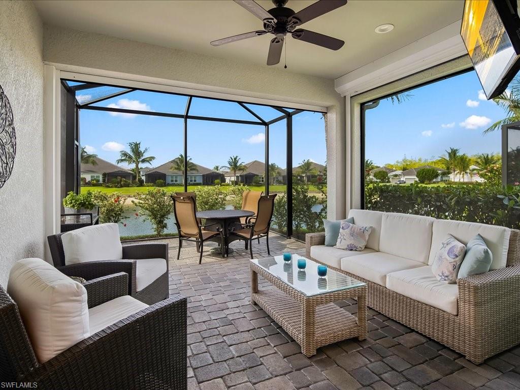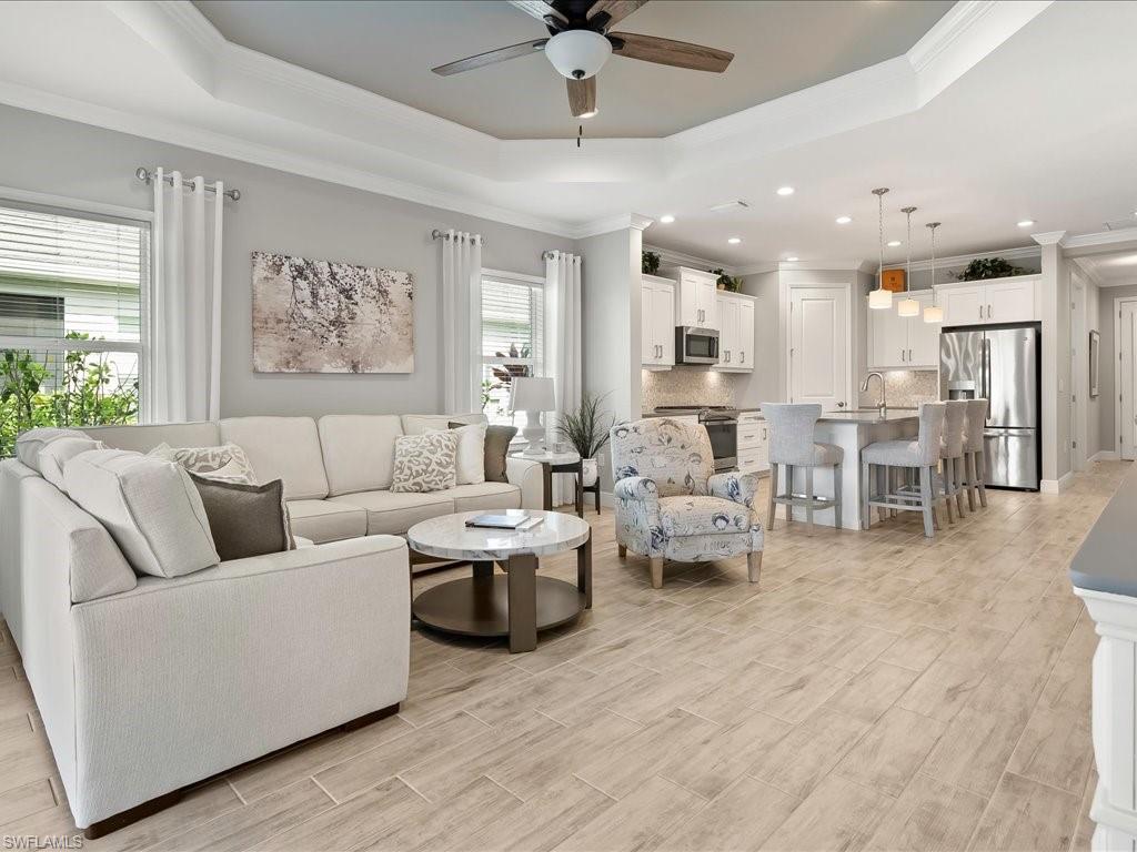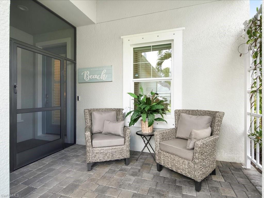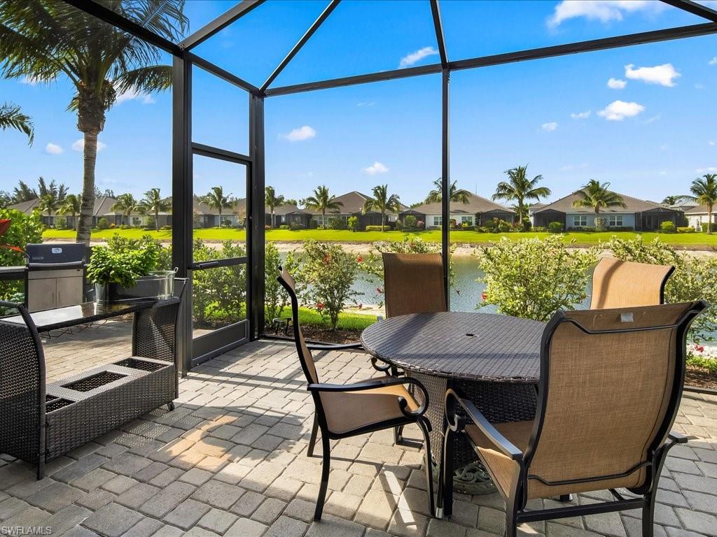 Marquesa Isles of Naples is a desirable sought after, well maintained, gated community located 5 miles from downtown Naples with LOW HOMEOWNER'S INSURANCE, LOW HOA FEES, NO CDD and LOCATED IN THE X FLOOD ZONE. This charming, 2 bedroom with den Villa home offers a perfect blend of comfort and convenience with an inviting open floor plan, high ceilings with crown molding, and an abundance of natural light with an extended lanai plus a separate patio overlooking the lake with southern exposure. The well-appointed kitchen features modern appliances, ample cabinetry, that seamlessly flows into the spacious living and dining areas—ideal for both entertaining and everyday living. The primary bedroom suite is a private retreat, complete with a walk-in closet and bath featuring dual vanities and a walk-in shower. This split-bedroom layout ensures privacy for guests, while this versatile den provides the flexibility for a home office, or tv room. This home also includes two full bathrooms, tile flooring throughout, including hurricane screen on the lanai with a screened front porch, and a spacious two-car garage, all add to the visual appeal of this lovely home. Easy access to I-75 and a short drive to Naples' beautiful beaches and downtown make this home an exceptional choice for full-time residents or seasonal living. You will enjoy this home!
