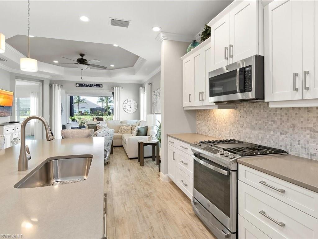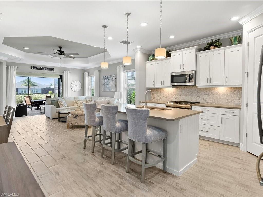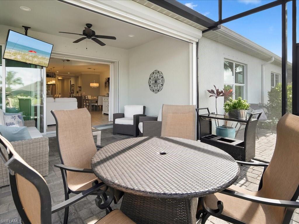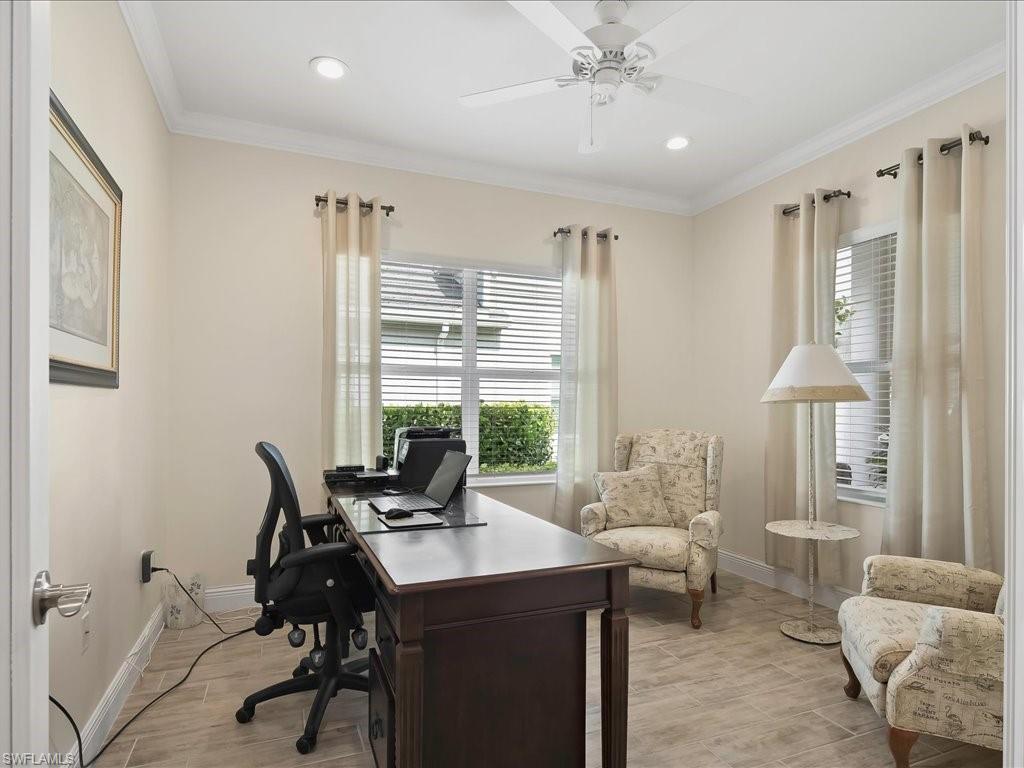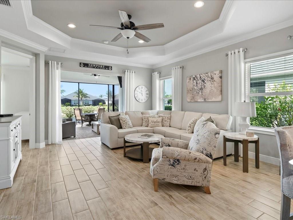 Marquesa Isles of Naples is a desirable sought after, well maintained, gated community located 5 miles from downtown Naples with LOW HOMEOWNER'S INSURANCE, LOW HOA FEES, NO CDD and LOCATED IN THE X FLOOD ZONE. This charming, 2 bedroom with den Villa home offers a perfect blend of comfort and convenience with an inviting open floor plan, high ceilings with crown molding, and an abundance of natural light with an extended lanai plus a separate patio overlooking the lake with southern exposure. The well-appointed kitchen features modern appliances, ample cabinetry, that seamlessly flows into the spacious living and dining areas—ideal for both entertaining and everyday living. The primary bedroom suite is a private retreat, complete with a walk-in closet and bath featuring dual vanities and a walk-in shower. This split-bedroom layout ensures privacy for guests, while this versatile den provides the flexibility for a home office, or tv room. This home also includes two full bathrooms, tile flooring throughout, including hurricane screen on the lanai with a screened front porch, and a spacious two-car garage, all add to the visual appeal of this lovely home. Easy access to I-75 and a short drive to Naples' beautiful beaches and downtown make this home an exceptional choice for full-time residents or seasonal living. You will enjoy this home!