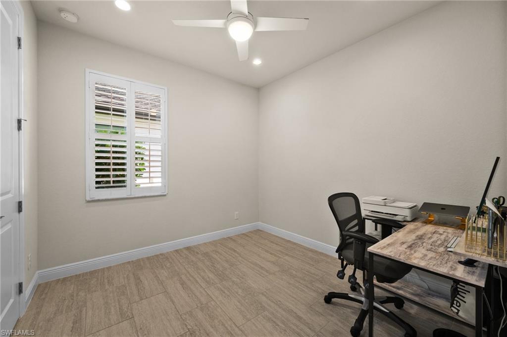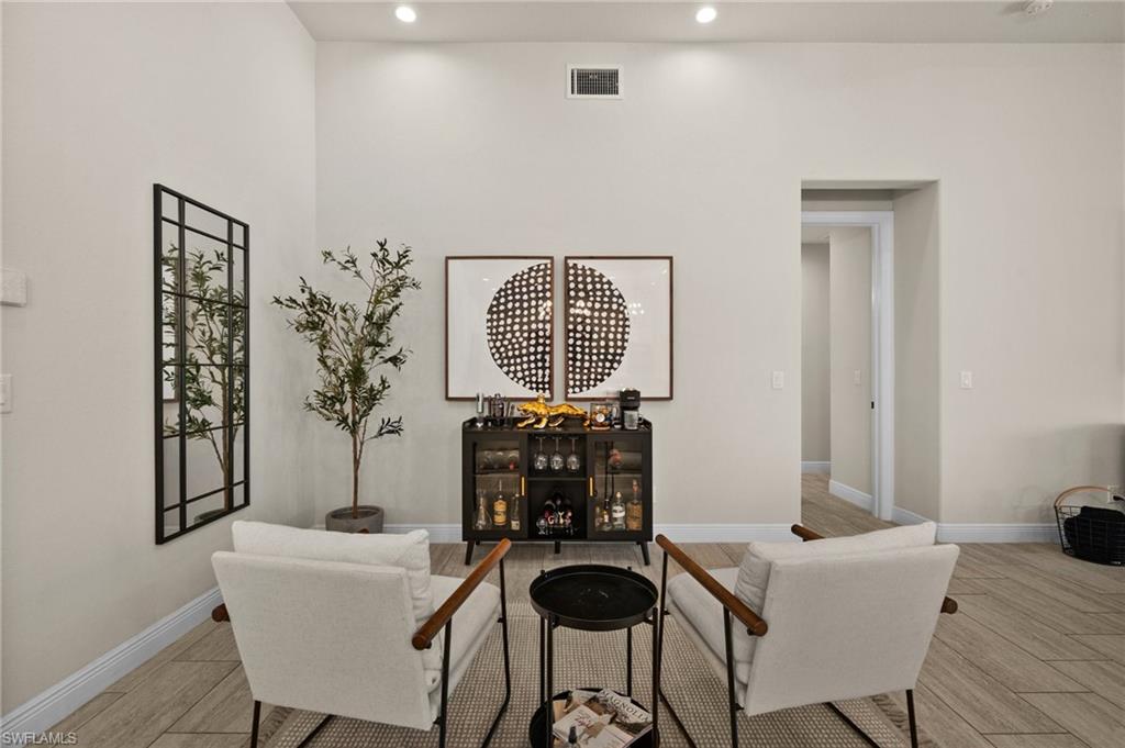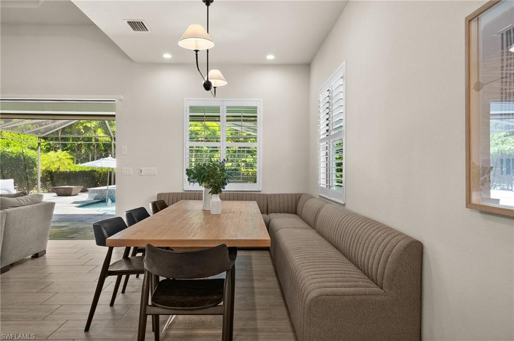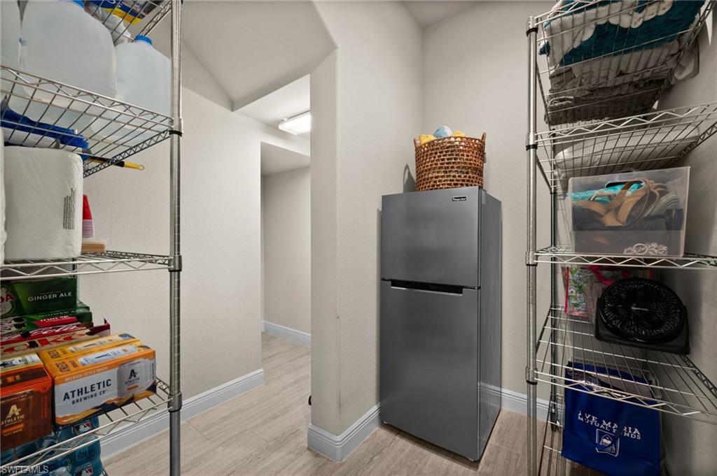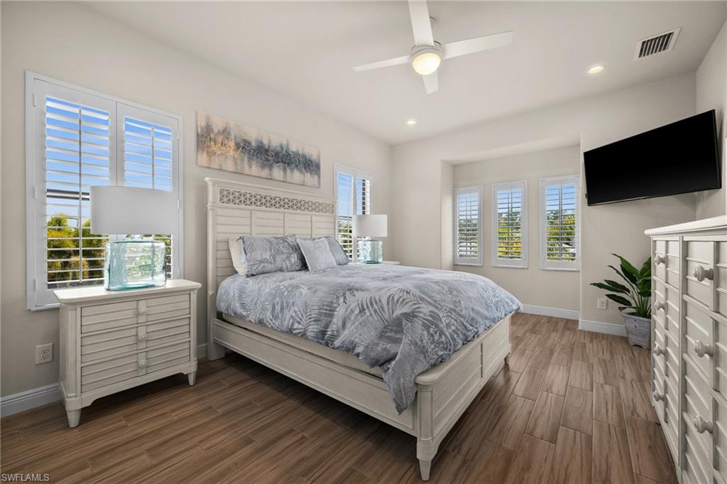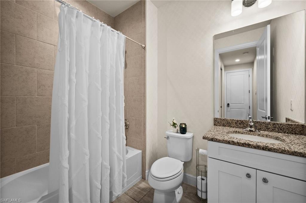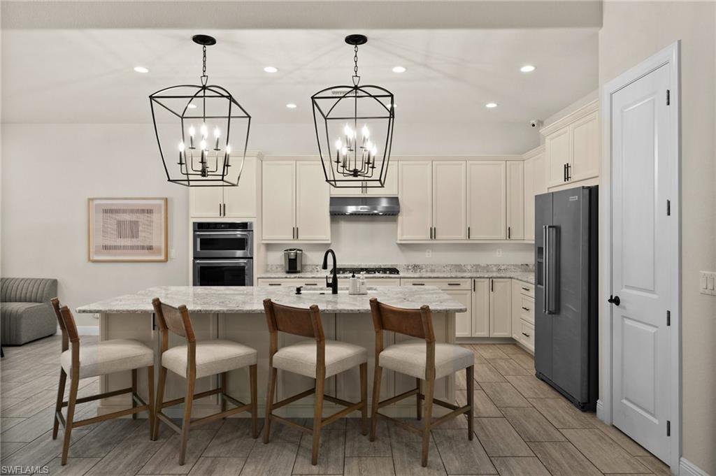 Tucked behind privacy hedges on a desirable corner lot, this residence in Palazzo at Naples boasts the largest lot with a rare rear yard. This beautifully appointed furnished 4 bed 4 bath plus loft home provides an exceptional blend of elegance, comfort, and indoor-outdoor living. Be sure to click on the lifestyle video! The extended screened lanai is a private paradise, showcasing a sparkling pool with a waterfall feature, spa, built-in gas fire pit, and multiple covered and open-air lounging and dining areas—ideal for sunset cocktails or starlit dinners. Inside, Sonos sound system surrounds you, the timeless tile floors flow throughout the open-concept layout. The soaring two-story design includes a great room that seamlessly connects to the gourmet kitchen, complete with a gas range, sprawling island, chic pendant lighting, and a walk-in pantry. Upstairs, a versatile loft/family room convertible to 5th bedroom accompanies a 4th guest bedroom and 4th full bath, while two additional guest bedrooms are downstairs, each of which enjoys its own bath. The spacious primary suite offers serenity and seclusion, featuring two walk-in closets and an ensuite bath with dual vanities, a soaking tub, and a separate glass-enclosed shower for a spa-like retreat. Designed with versatility in mind, this home provides ample space for work, relaxation, and entertainment and a home generator. Located in the gated enclave of Palazzo at Naples, residents enjoy proximity to white sand Gulf beaches, upscale shopping and dining at Mercato, world-class golf, and Southwest Florida International Airport. With only 85 architecturally distinctive homes, Palazzo is a tranquil, low-maintenance community that defines upscale Naples living. Memberships to nearby country clubs are available & not mandatory, making Palazzo a great choice.