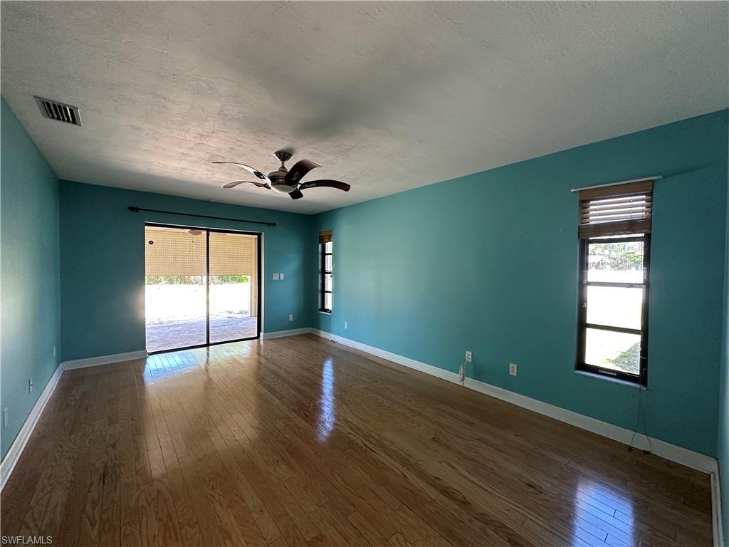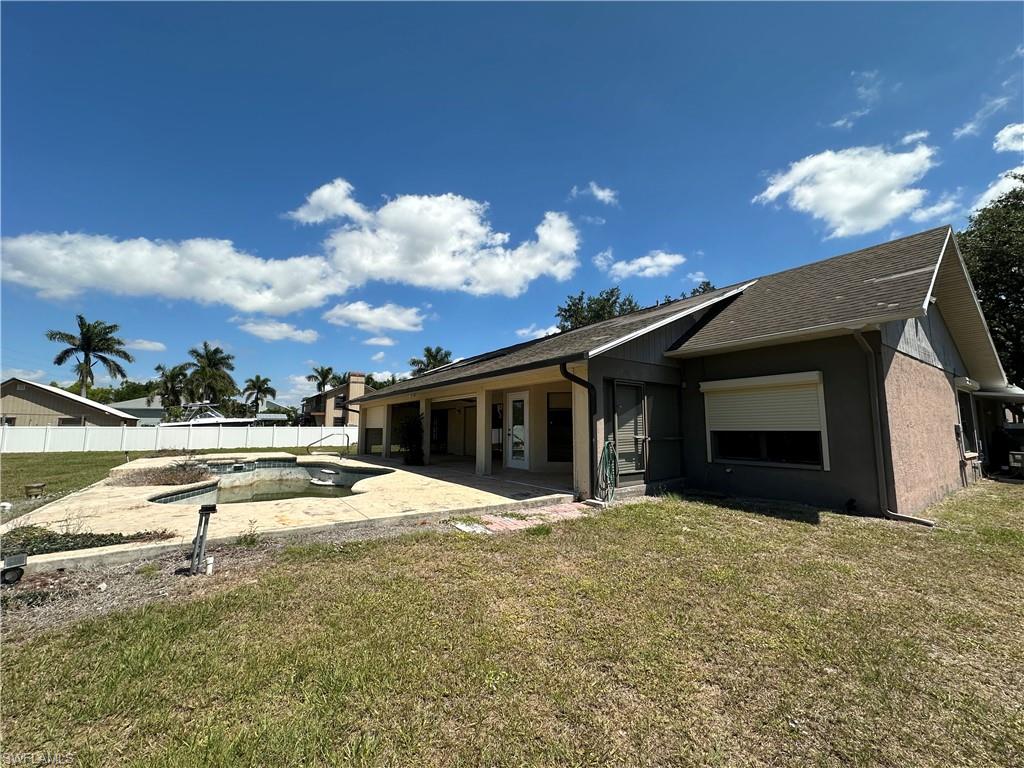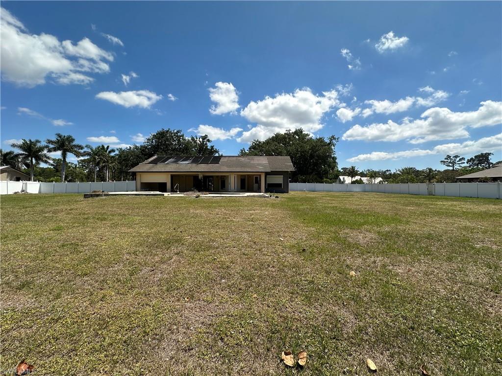OVER 1 ACRE OF LAND WITH A FENCED POOL & SPA HOME NESTLED IN ESTERO!! Spacious 3 Bedroom, 2 Full Bathrooms (Pool Bath) & 2 Car Garage ~ 1722 Square Feet of Living Area ~ Large Great Room ~ Living Room Offers Pocket Sliders to Open the Living Area to the Large & Extensive Pool & Spa Deck ~ Front Foyer ~ Entry Features Solid Double Front Doors ~ Vaulted Ceilings ~ Eat In Kitchen Area & Breakfast Bar ~ Living Room and Master Bedroom has Hardwood Floors ~ Master Bedroom has Pocket Sliders to Pool Area ~ Master Offers Large Walk In Closet ~ Master Bathroom has Dual Sinks ~ Split Bedroom Floor Plan ~ Guest Bedrooms offer Walk In Closets ~ Large Inside Laundry Room with Cabinets ~ Vinyl Fence has Double Gates on One Side and Single Gate on Other Side ~ ALL OPENINGS HAVE ELECTRIC SHUTTERS ~ No HOA ~ Cranbrook Harbor Neighbors all have 1 acre parcels, and has the Perfect Location For All Your Needs, but Offers the Country Feel with Privacy, Peace & Quiet BUT Minutes to US 41, Shopping, Restaurants, Malls, Parks, Boat Docking, Dog Park, Beaches, Schools, FGCU, and Everything Estero has to OFFER !!