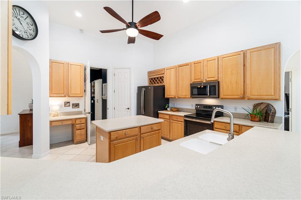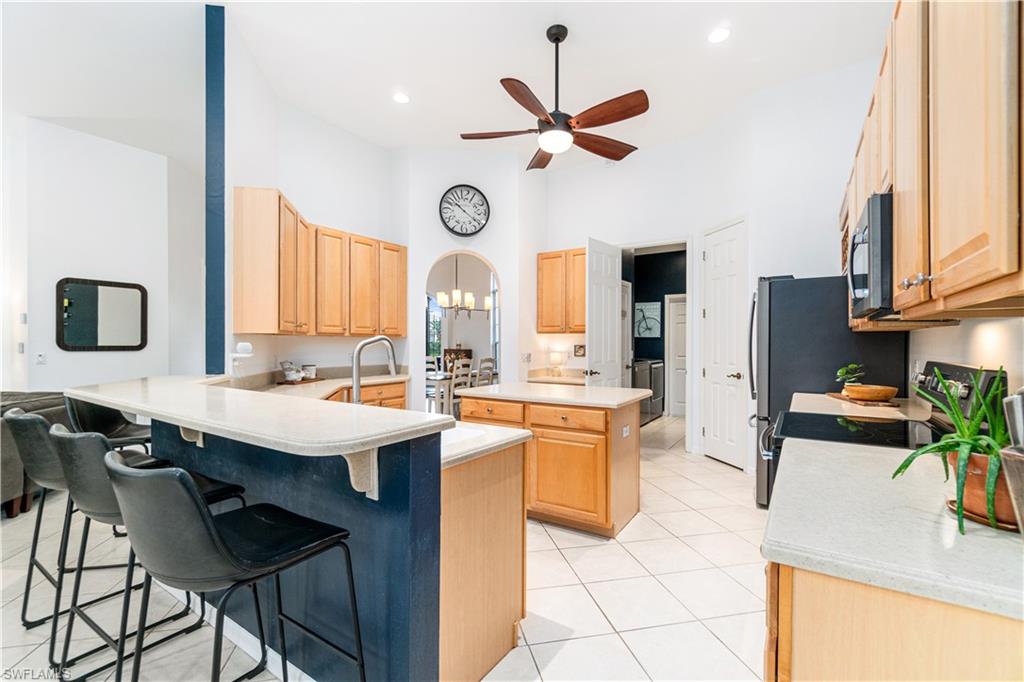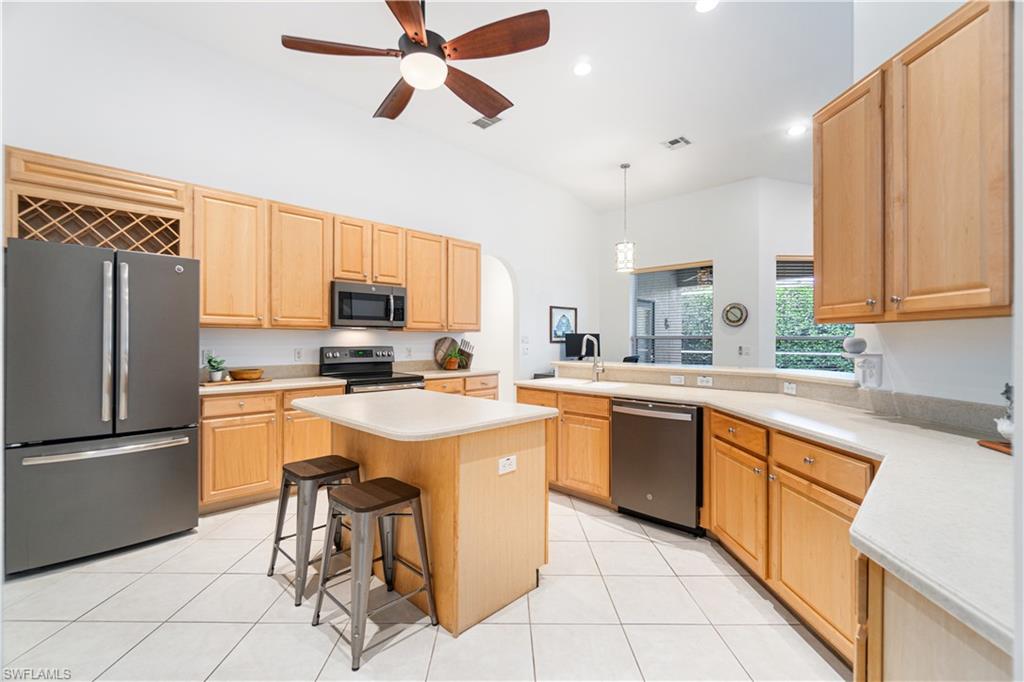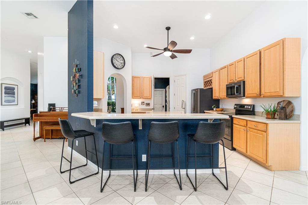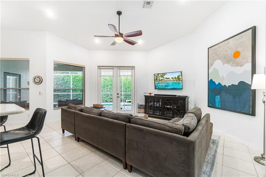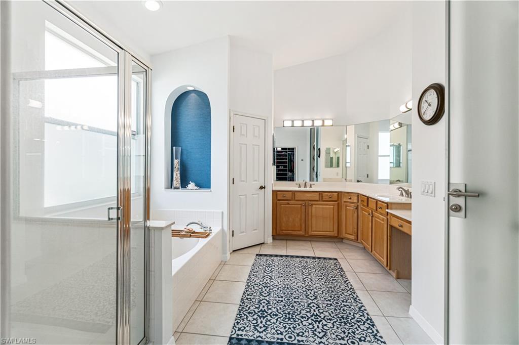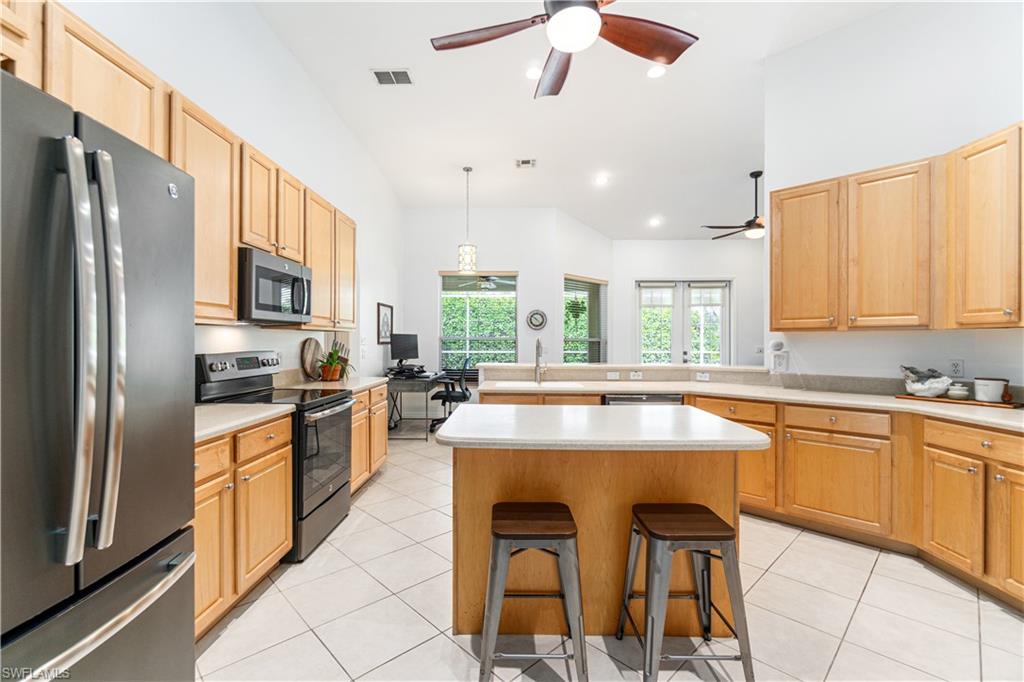 RARELY AVAILABLE 4 BED + DEN POOL HOME WITH 3-CAR GARAGE IN THE SOUGHT-AFTER NORTH NAPLES COMMUNITY OF PEBBLEBROOKE LAKES! OFFERS A NEW ROOF (2023), NEW A/C (2025), NEWLY REFINISHED POOL DECK (2025) & ALL NEW NEUTRAL & BRIGHT INTERIOR PAINT THROUGHOUT (2025). Perfect location walking distance to top-rated schools! With incredible soaring ceilings, this immaculately maintained & move-in-ready home has a lofty open & split bedroom floor plan with ample living & storage space-- all on one floor! Also includes dual dining spaces & the formal dining room could be converted to another den/office. Boasting coveted Western exposure for gorgeous natural light, breathtaking sunsets & prime sun over the spacious pool deck, pool & spa* with tropical landscaped view beyond. The spacious kitchen has new stainless-steel appliances, solid surface counters, tons of storage/cabinetry & a large walk-in pantry. The unbelievable primary suite offers a sitting area or workspace, HUGE walk-in closet with custom cabinetry, oversized tub, shower, separate water closet & huge double vanity. Offers manual storm shutters on all windows except for the back door and the windows under the roof of the back lanai. Pebblebrooke Lakes is a low HOA fee community with fantastic amenities including a clubhouse with resort-style pool overlooking a lake, state-of-the-art fitness center, playground, basketball courts, tennis, pickleball & walking/biking trails meandering through scenic preserve. Perfect location within walking distance to top-rated schools, restaurants & entertainment amenities, with private entrance to Pebblebrooke Plaza & minutes to Founder’s Square & Logan Landings.