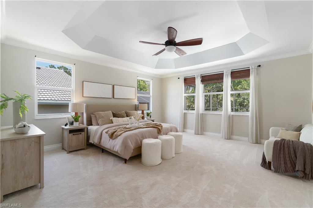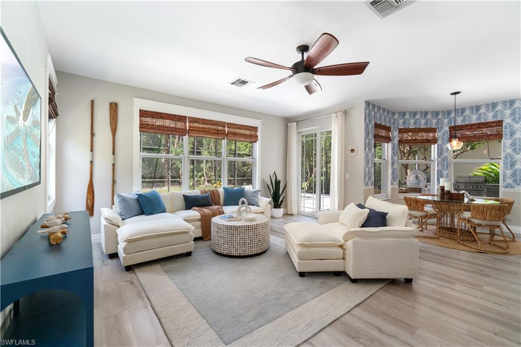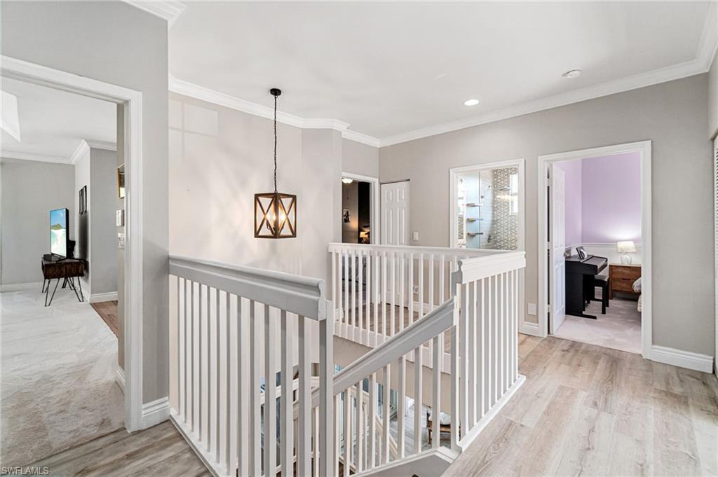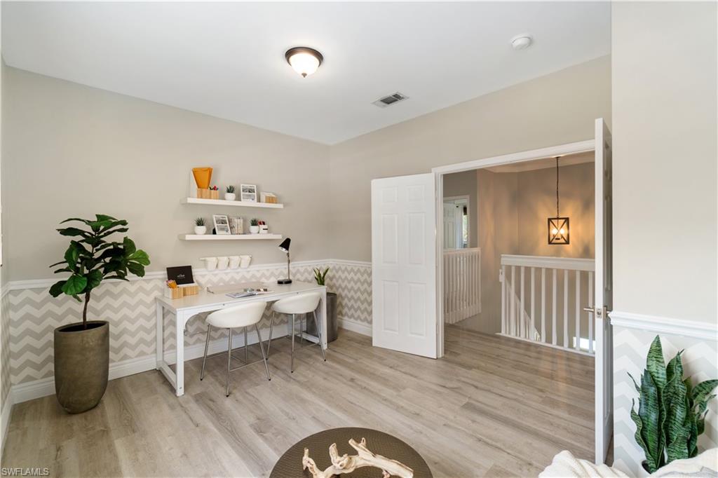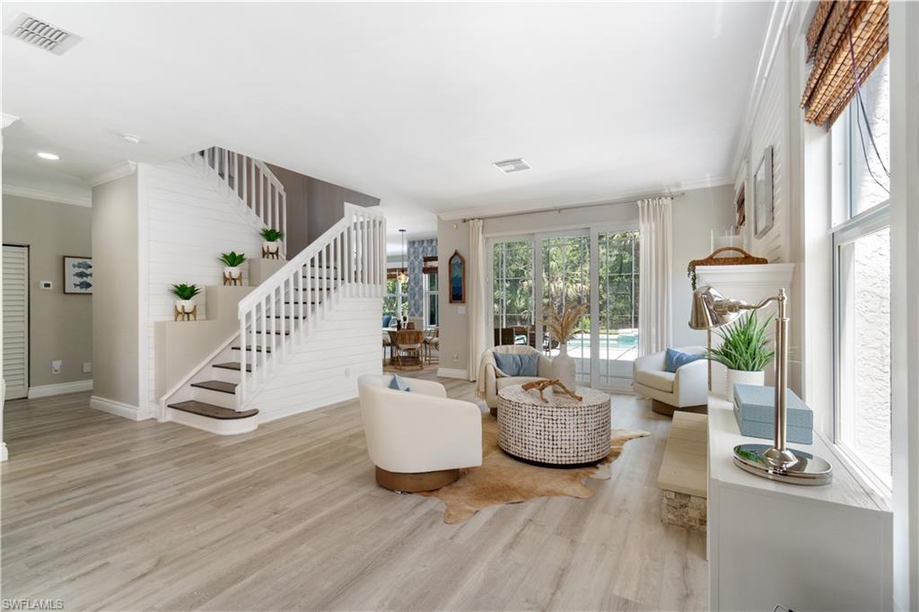 INCREDIBLE NEW PRICE IMPROVEMENT ::: you will be hard pressed to find a better OPPORTUNITY for a resort style, family home in NORTH NAPLES! Motivated Seller. A RARE chance to purchase a large, meticulously updated & well maintained N. Naples home w/nearly 3000 ft.² of interior air conditioned living space, 4 bedrooms + upstairs den/loft, 3 car garage and a 2 story caged “Miami Chic” pool/spa area w/almost 1,000 sq.ft. All in an exclusive N. naples gated community! Sought after Flamingo model. Can you hear the birds? The buttonwood tree lined street and protected tropical PRESERVE backyard delivers quiet, private solitude w/close proximity to the main gate AND steps to the sports center & resort amenities. Extensive designer improvements & favorable features include a RARE 1st AND 2nd floor concrete construction. The expansive rear entertainers dream is enveloped in a STUNNING 30’ high pool cage w/elegant shell stone white pavers and NEW Modern pool tile. NEW Impact windows & doors, NEW impact garage doors and motors (‘25), NEW roof & gutters (‘24), fresh exterior paint (‘25) provide value & peace of mind. HVAC systems replaced in ‘22 & ‘23. Additional luxury features include a smart water filtration & softener system (‘24), smart water softener, reverse osmosis system, central vacuum, instant hot water heater (‘23), NEW upstairs carpeting (‘25), & NEW washer/dryer. Designer remodeling finishes are throughout: NEW light toned LVP, CUSTOM pantry closet system & NEW designer bath remodels highlighted by the reimagined spa primary (‘25) w/freestanding soaking tub. Other custom details: NEW shiplap, coastal wallpaper, NEW baseboards, & interior trim (‘25), along w/a cozy custom electric fireplace adding warmth & character. *** SATURNIA LAKES is hidden behind cascading waterfalls & sparkling fountains on 6 acres. Have the “vacation” feel all year long w/extensive amenities: 12,000 square-foot clubhouse, resort style Olympic, lap & kiddie pool, hot tub, sandy beach, saunas, massage & card rooms, ballroom, billiards room, dance studio, Internet café & arts/crafts room. For WELLNESS enthusiasts: state of the art fitness center, Clay & Har-Tru tennis courts, playground, basketball court, lakeside putting green,& miles of walking/jogging paths. Walk to Gulf Coast HS thru ‘Passive Park.” Included in the $616 monthly HOA fee: high speed fiber optic Internet, HD/DVR cable service w/2 boxes, monitored alarm security, gate guard w/private side gate on Logan Blvd for residence only, irrigation, lawn, landscape, trimming & pest. Just minutes to highway 75, shopping & restaurants galore @ the NEW Founders Square & Logan Landing. A short 15 min to the Gulf of Mexico & 20 min to the airport. We challenge you to find a home with the square footage, in this condition, with these amenities and upgrades – for this price – in a gated A+ rated school district. We invite you to see in person what a REAL OPPORTUNITY this is for your family’s next DREAM COME TRUE!