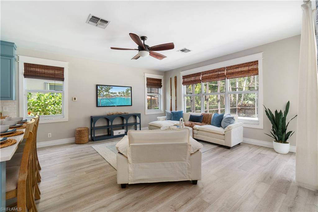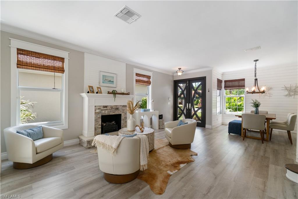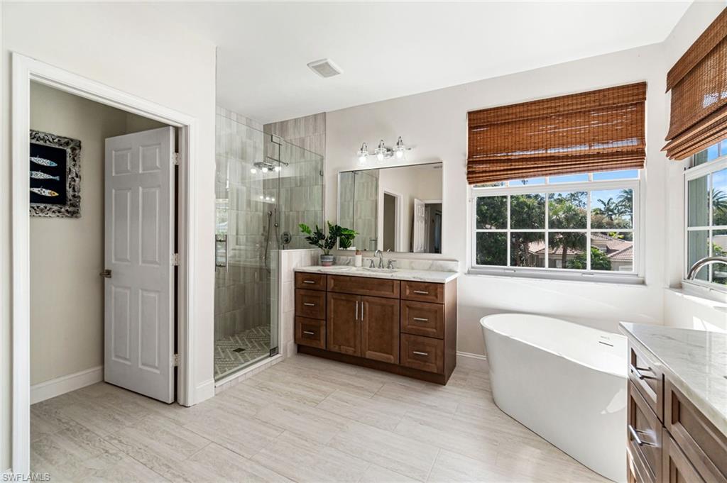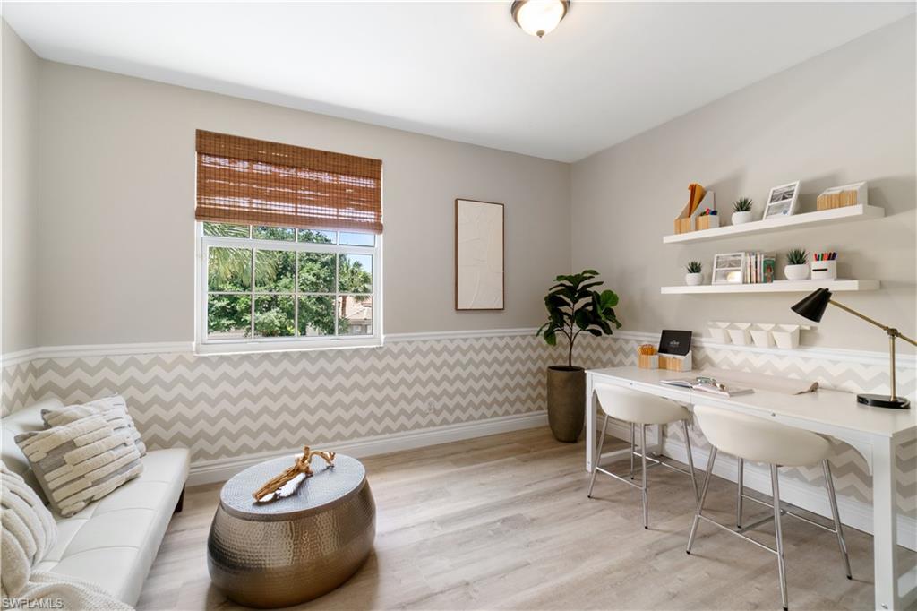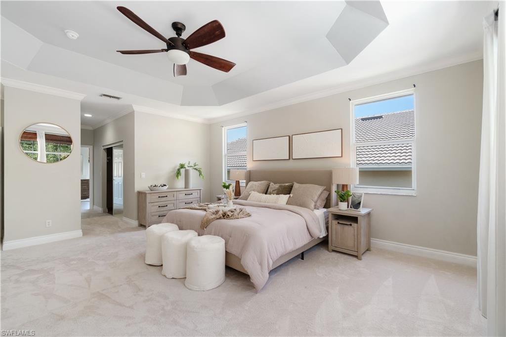 INCREDIBLE NEW PRICE IMPROVEMENT ::: you will be hard pressed to find a better OPPORTUNITY for a resort style, family home in NORTH NAPLES! Motivated Seller. A RARE chance to purchase a large, meticulously updated & well maintained N. Naples home w/nearly 3000 ft.² of interior air conditioned living space, 4 bedrooms + upstairs den/loft, 3 car garage and a 2 story caged “Miami Chic” pool/spa area w/almost 1,000 sq.ft. All in an exclusive N. naples gated community! Sought after Flamingo model. Can you hear the birds? The buttonwood tree lined street and protected tropical PRESERVE backyard delivers quiet, private solitude w/close proximity to the main gate AND steps to the sports center & resort amenities. Extensive designer improvements & favorable features include a RARE 1st AND 2nd floor concrete construction. The expansive rear entertainers dream is enveloped in a STUNNING 30’ high pool cage w/elegant shell stone white pavers and NEW Modern pool tile. NEW Impact windows & doors, NEW impact garage doors and motors (‘25), NEW roof & gutters (‘24), fresh exterior paint (‘25) provide value & peace of mind. HVAC systems replaced in ‘22 & ‘23. Additional luxury features include a smart water filtration & softener system (‘24), smart water softener, reverse osmosis system, central vacuum, instant hot water heater (‘23), NEW upstairs carpeting (‘25), & NEW washer/dryer. Designer remodeling finishes are throughout: NEW light toned LVP, CUSTOM pantry closet system & NEW designer bath remodels highlighted by the reimagined spa primary (‘25) w/freestanding soaking tub. Other custom details: NEW shiplap, coastal wallpaper, NEW baseboards, & interior trim (‘25), along w/a cozy custom electric fireplace adding warmth & character. *** SATURNIA LAKES is hidden behind cascading waterfalls & sparkling fountains on 6 acres. Have the “vacation” feel all year long w/extensive amenities: 12,000 square-foot clubhouse, resort style Olympic, lap & kiddie pool, hot tub, sandy beach, saunas, massage & card rooms, ballroom, billiards room, dance studio, Internet café & arts/crafts room. For WELLNESS enthusiasts: state of the art fitness center, Clay & Har-Tru tennis courts, playground, basketball court, lakeside putting green,& miles of walking/jogging paths. Walk to Gulf Coast HS thru ‘Passive Park.” Included in the $616 monthly HOA fee: high speed fiber optic Internet, HD/DVR cable service w/2 boxes, monitored alarm security, gate guard w/private side gate on Logan Blvd for residence only, irrigation, lawn, landscape, trimming & pest. Just minutes to highway 75, shopping & restaurants galore @ the NEW Founders Square & Logan Landing. A short 15 min to the Gulf of Mexico & 20 min to the airport. We challenge you to find a home with the square footage, in this condition, with these amenities and upgrades – for this price – in a gated A+ rated school district. We invite you to see in person what a REAL OPPORTUNITY this is for your family’s next DREAM COME TRUE!
