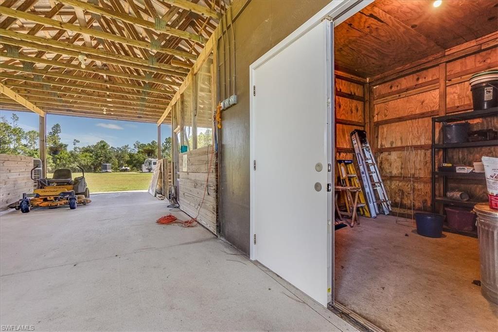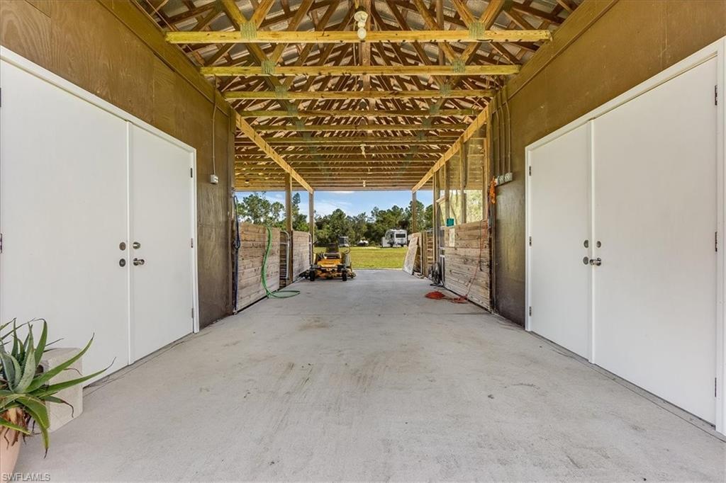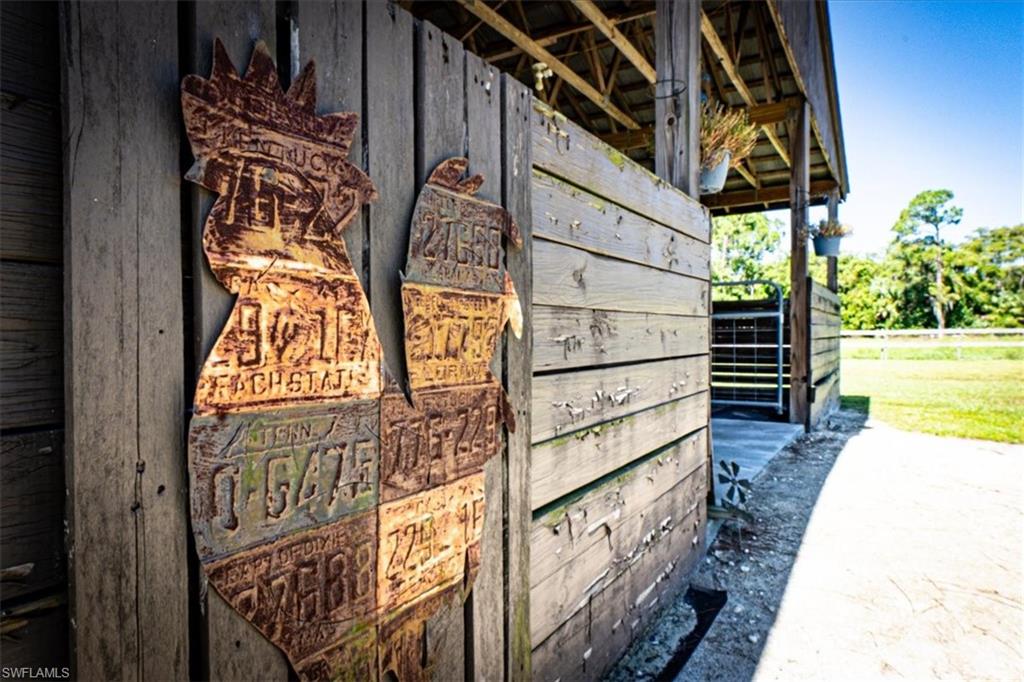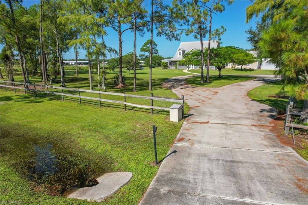 Welcome to Your Dream Retreat! Nestled at the end of a tranquil street, this expansive property includes OVER 6 CLEARED ACRES featuring a sturdy concrete block home topped with a durable metal roof. This spacious residence offers 4 generously sized bedrooms and 3.5 bathrooms. FULLY FENCED and CROSS FENCED and includes a barn with FOUR 12x12 STABLES plus a tack room, feed room, and an attached chicken coop. The expansive outdoor space offers endless possibilities: envision adding more outbuildings or a guest home, cultivating a stunning garden, setting up a riding arena for equestrian activities, or simply having enough space for all your recreational toys or business equipment. Storage is plentiful throughout the home, and your vehicles will be well taken care of with a 2-car attached garage (26’ x 26’) and an additional 20’ x 20’ metal garage complete with a 20’ x 15’ carport, all conveniently located on sturdy concrete pads. Culinary enthusiasts will appreciate the gourmet kitchen, featuring a gas range, stainless steel appliances, elegant granite countertops, and solid wood cabinets adorned with crown molding. After a long day, unwind with a refreshing iced tea on your screened front porch, soaking in the serene views of your park-like yard—or take a dip in the gas HEATED POOL while enjoying breathtaking sunsets. Convenience is within reach with shopping, dining, and various amenities just a short drive away. Plus, you’re less than 20 miles from stunning sugar-sand beaches! Whether you’re an animal lover, outdoor adventurer, or simply seeking a peaceful sanctuary, this property is the perfect haven for all your dreams.