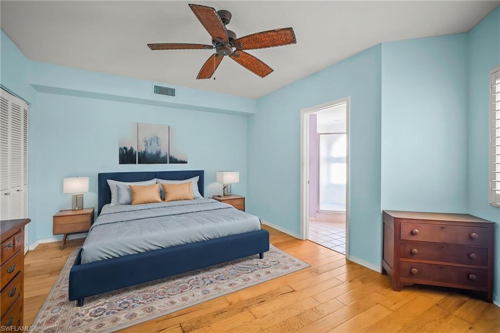 Enjoy serene lake views from this 2-bedroom, 2-bath, condo in sought-after Lakeside of Naples. This 2nd floor unit with 1,249 square feet of living space is bright and spacious with large sets of sliders and windows that allow lake views from nearly every room. Neutral tile and beautiful wood floors can be found throughout. A spacious kitchen features ample cabinetry and stainless steel appliances. The spacious primary suite offers an en-suite bath with dual vanities and a walk-in shower. Additional highlights include plantation shutters in both bedrooms, in-residence laundry, and a dedicated carport. Residents enjoy access to an array of amenities including billiard, bocce, a clubhouse with sauna, weight room, library and game rooms, two pools, a spa, tennis courts, shuffleboard, and basketball. Situated in the heart of Naples off Airport Road, quick access to top-tier dining, shopping, beaches and water access can be yours!